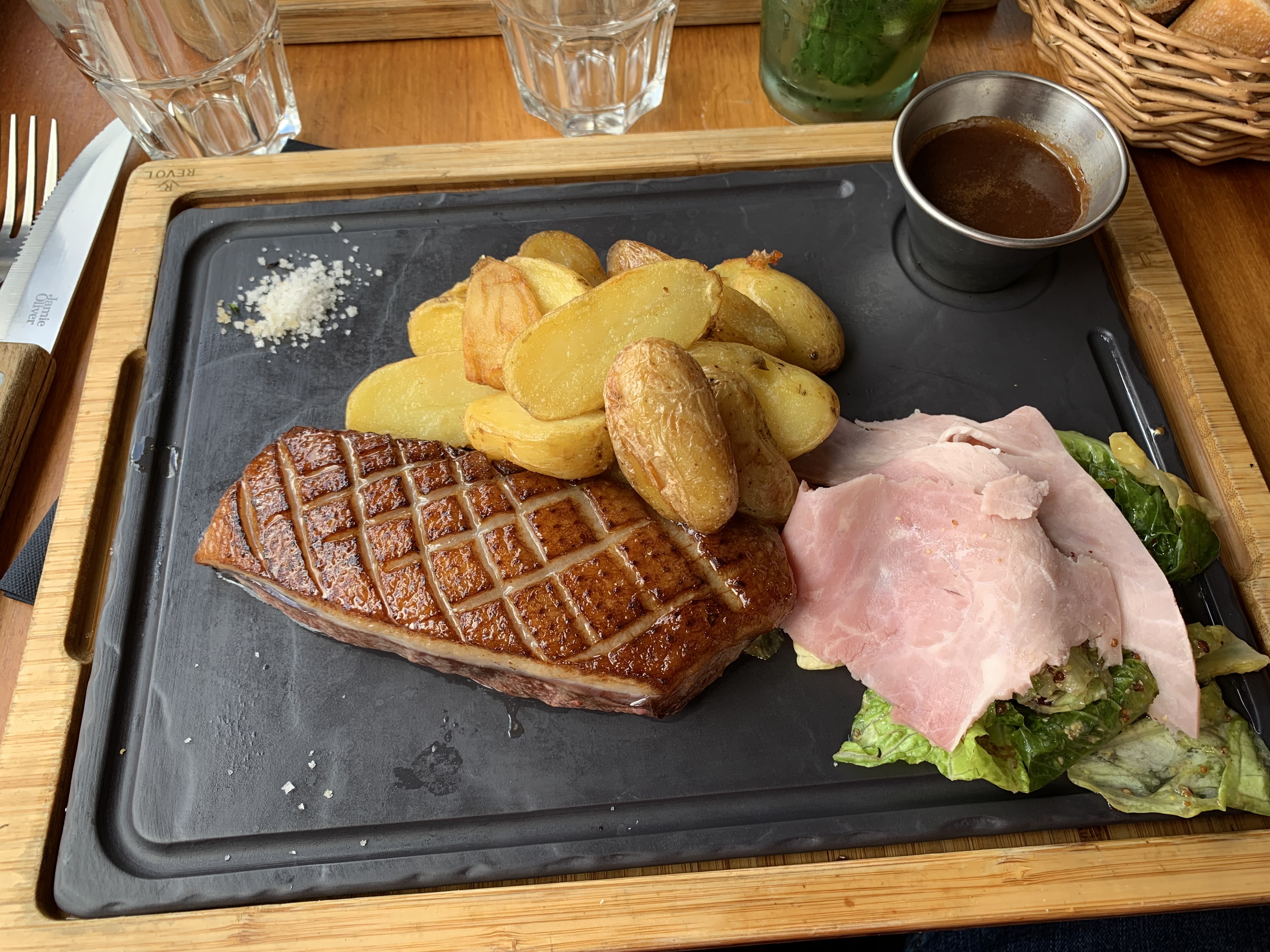 Bon petit resto au cadre chaleureux situé en bord d’Oise. Alors que le reblochon me faisait de l’œil, j’ai choisi l’entrecôte. Erreur. Pas qu’elle ne soit pas bonne, elle l’était, et la cuisson était parfaite aussi, mais trop de gras et je crois que je n’ai plus la patience pour trier avant de manger 😅 Mention pour le personnel, très sympathique malgré le fait qu’ils soient débordés. Arnaud, comme promis, dédicace 👋🏻 J’espère que tu l’auras ton augmentation 🤞Si le patron est bien l’homme au Grand Marnier à la chemise qui menaçait d’exploser alors ça ne peut pas être un homme totalement mauvais. 😎