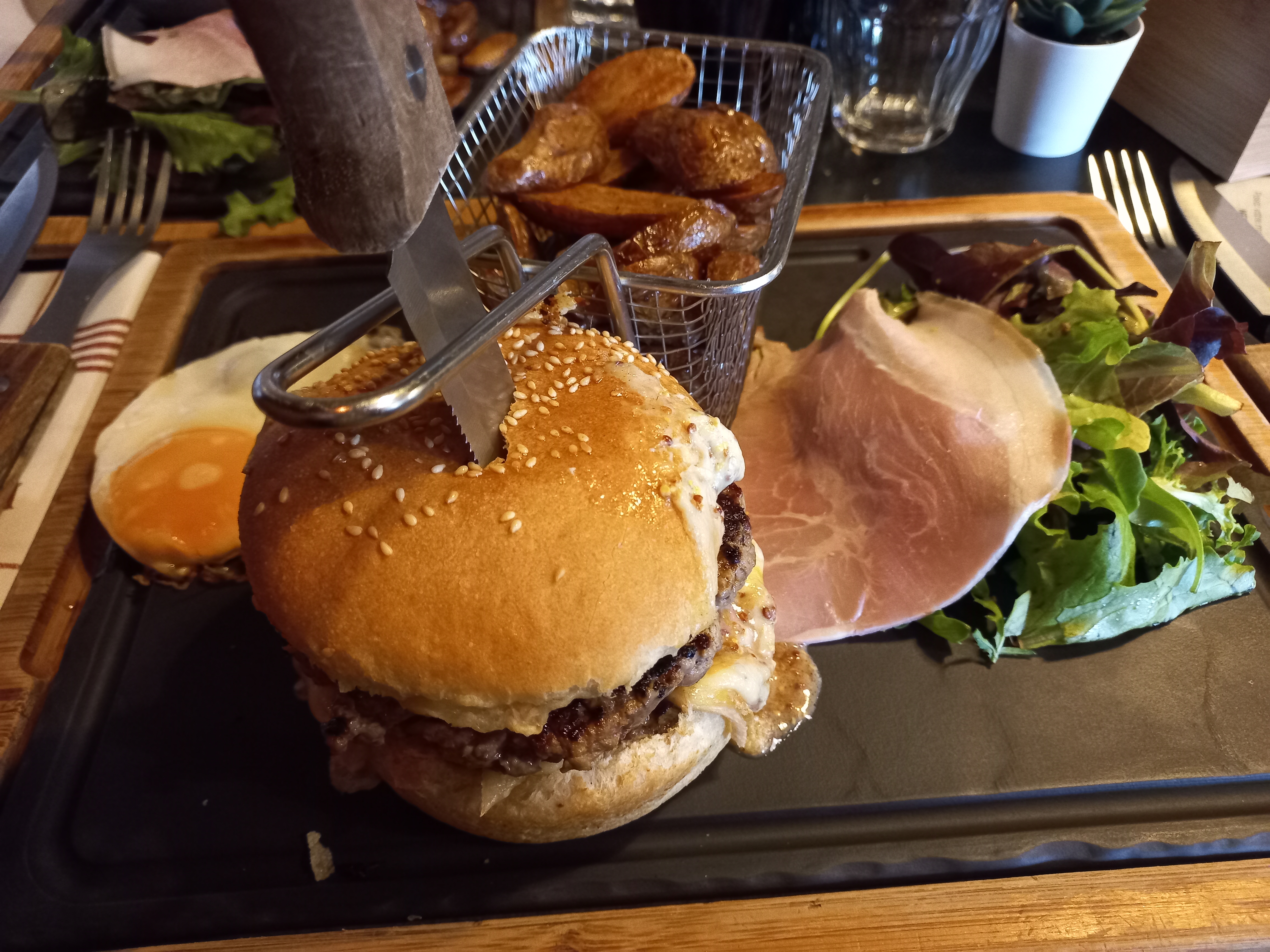 Qu’est devenu le restaurant l’affiche des premiers jours … très déçue , peu de planches disponibles, mon choix s’est porté sur la planche la chef, très peu garnie , viande correcte, un morceau de jambon goûteux , pommes de terre trop cuites , fades , sûrement réchauffées .,, une salade non assaisonnée …. Le tout pour la modique somme de 23€ 🙁 Nous avions déjà été déçus lors de notre précédente visite mais nous nous étions dit , qu’un problème pouvait arriver . Nous ne reviendrons plus, dommage car le personnel est très sympathique et à l’écoute .
