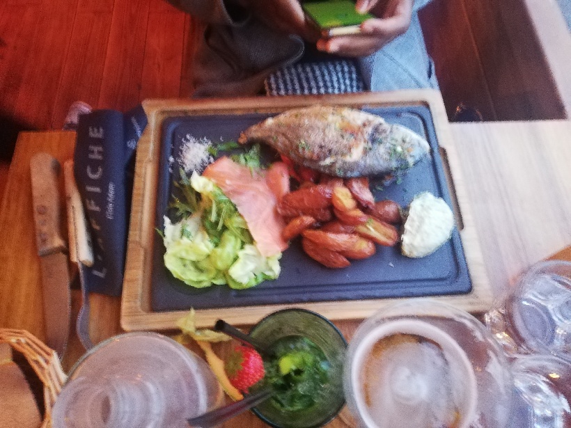 Pas eu le temps de prendre les plats en photo...trop appétissant! Service en continu très pratique après le marché de l'Isle Adam. Tout le personnel aux p'tit soins. Je pense qu'en cas de beau temps mieux réserver. Je conseille la planche périgourdine...et les profiteroles...un délice!