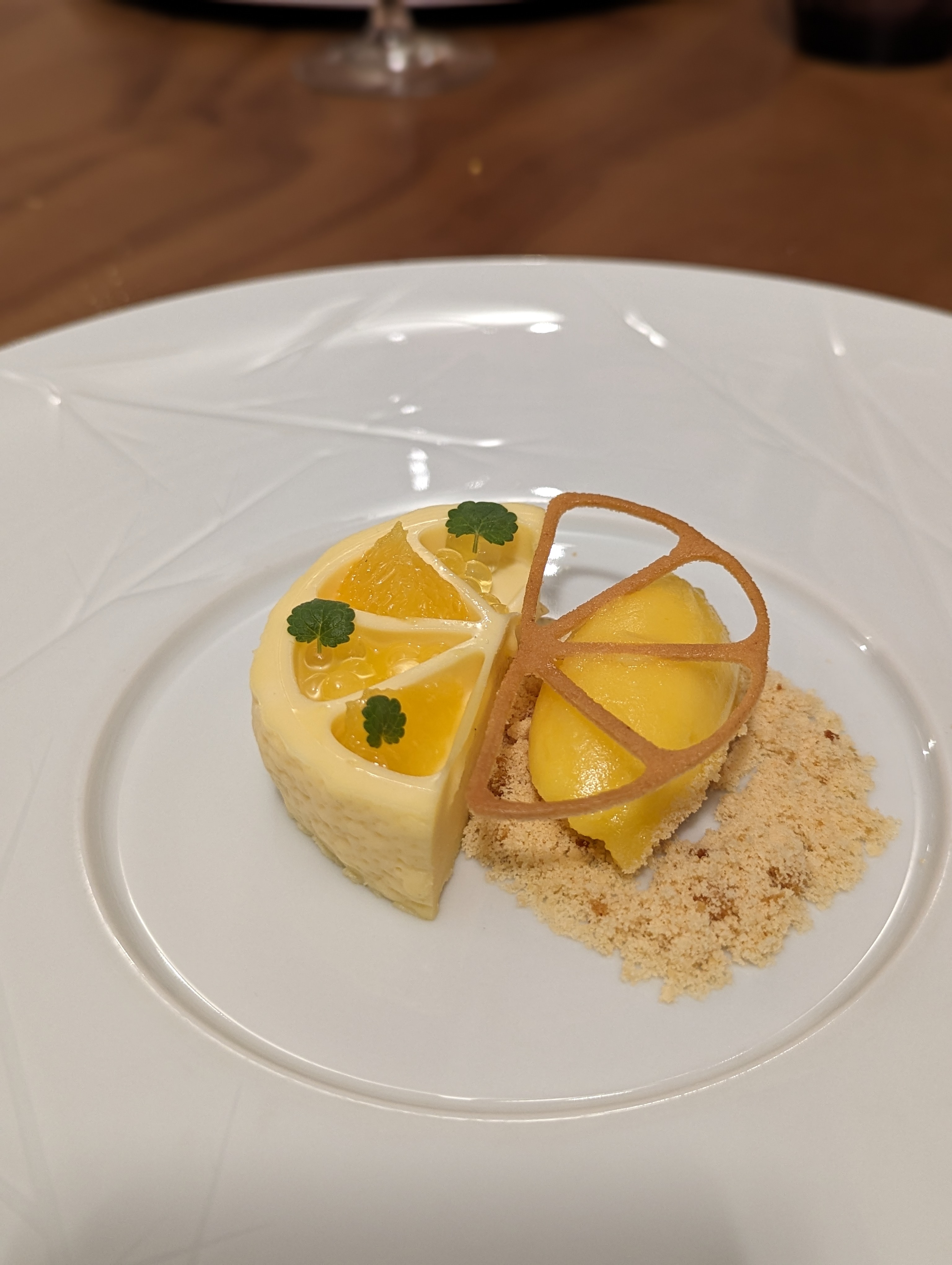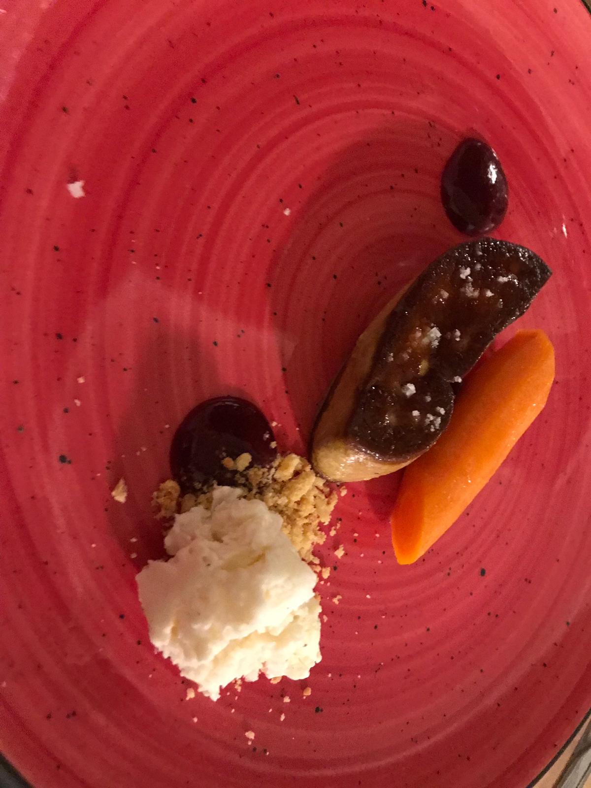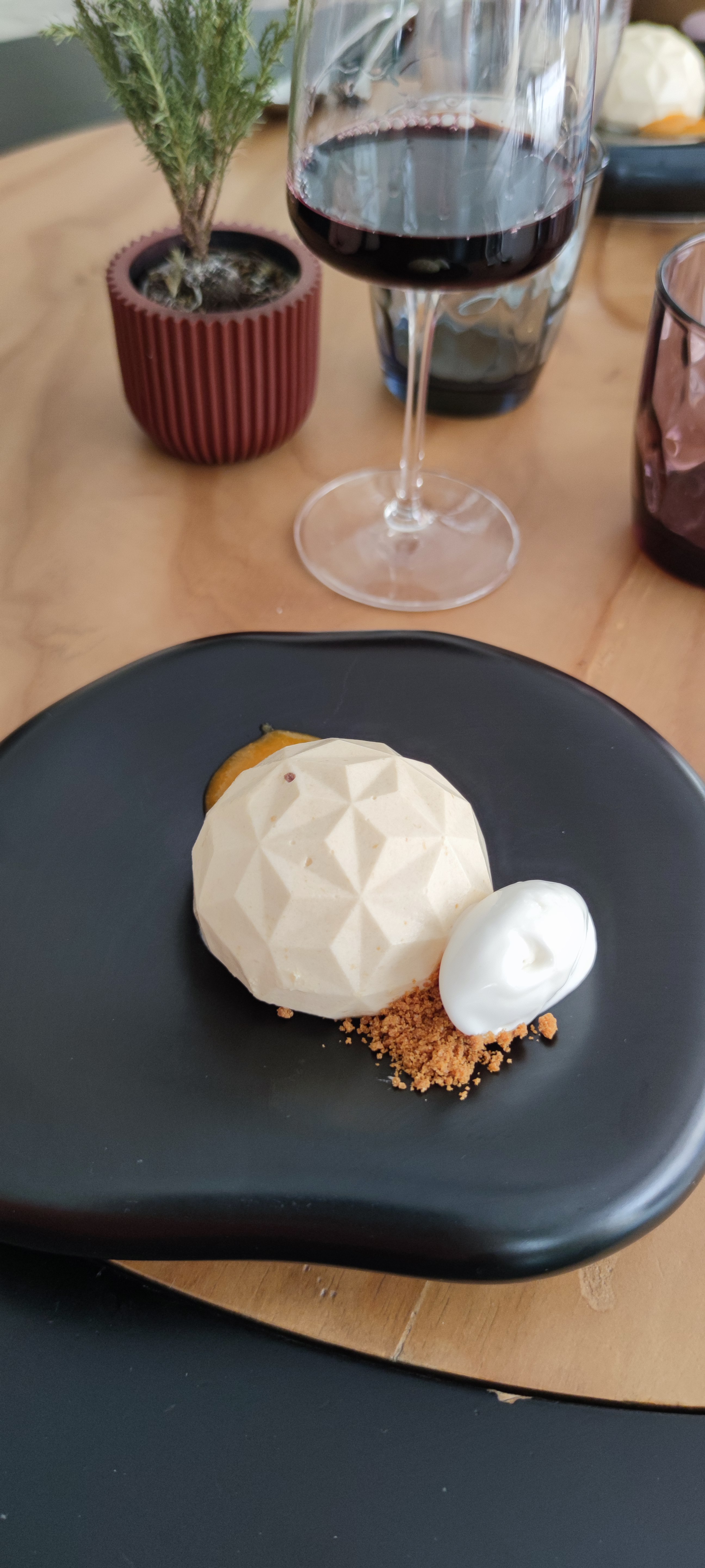 Nous avons été surpris par le concept car un lien sur le site ne correspond pas au menu.... puisqu'il n'y en a pas 😁... Nous nous sommes laissés prendre au jeu du menu mystère... plein de bonnes surprises... Le cuisinier se décarcasse pour nos papilles... Le dessert de ce soir : une tuerie. De passage à Agen,on s'en souviendra.