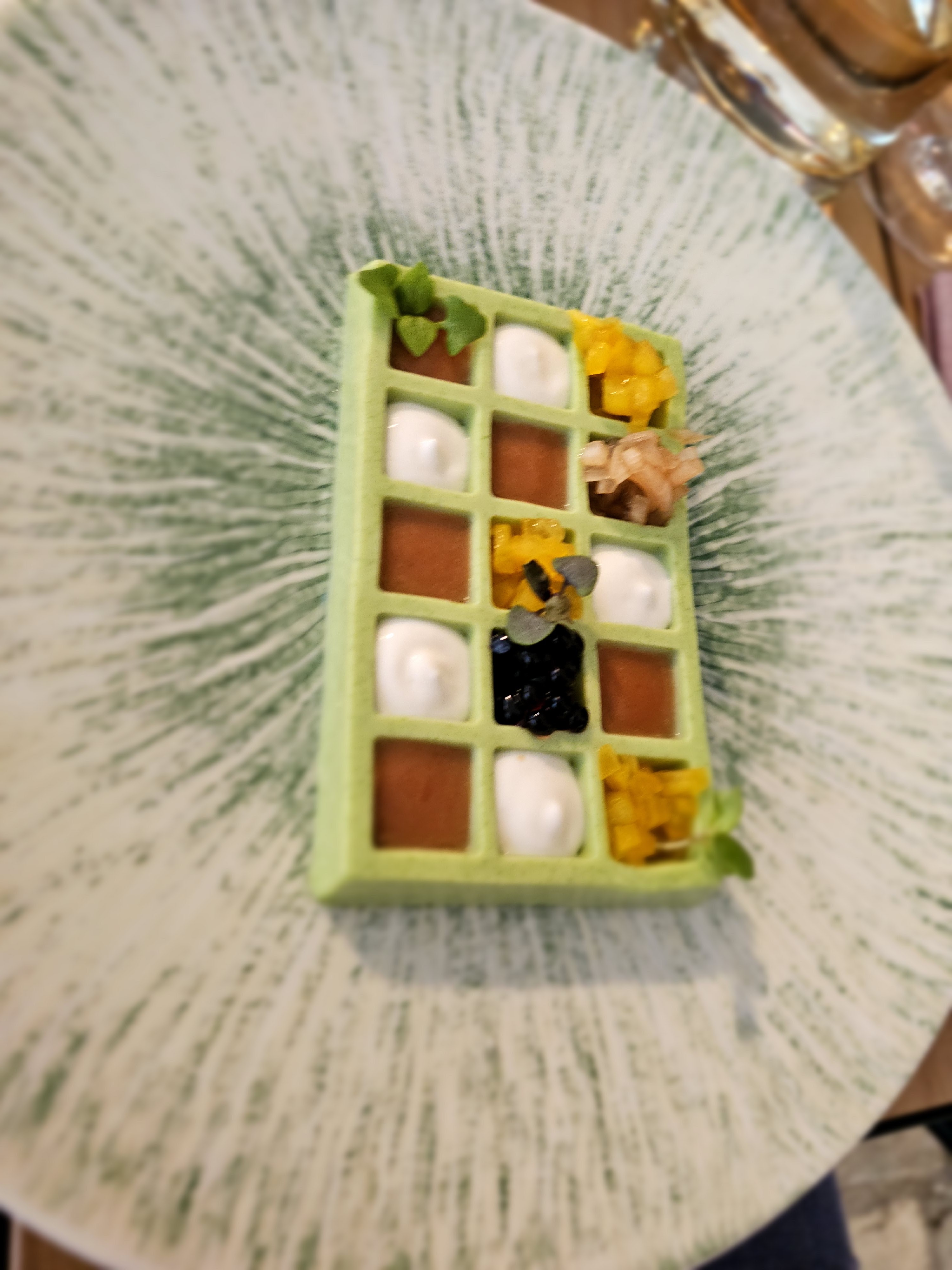 Le personnel est très sympa mais je comprend pas pourquoi autant de bon avis sur la cuisine .. le concept est original mais au final toute la salle reçoit les mêmes plats .. pratique pour l’organisation et les coûts en cuisine . Les plats n’ont pas de goût et le jeu de texture n’y est pas .. dommage pour un Michelin
