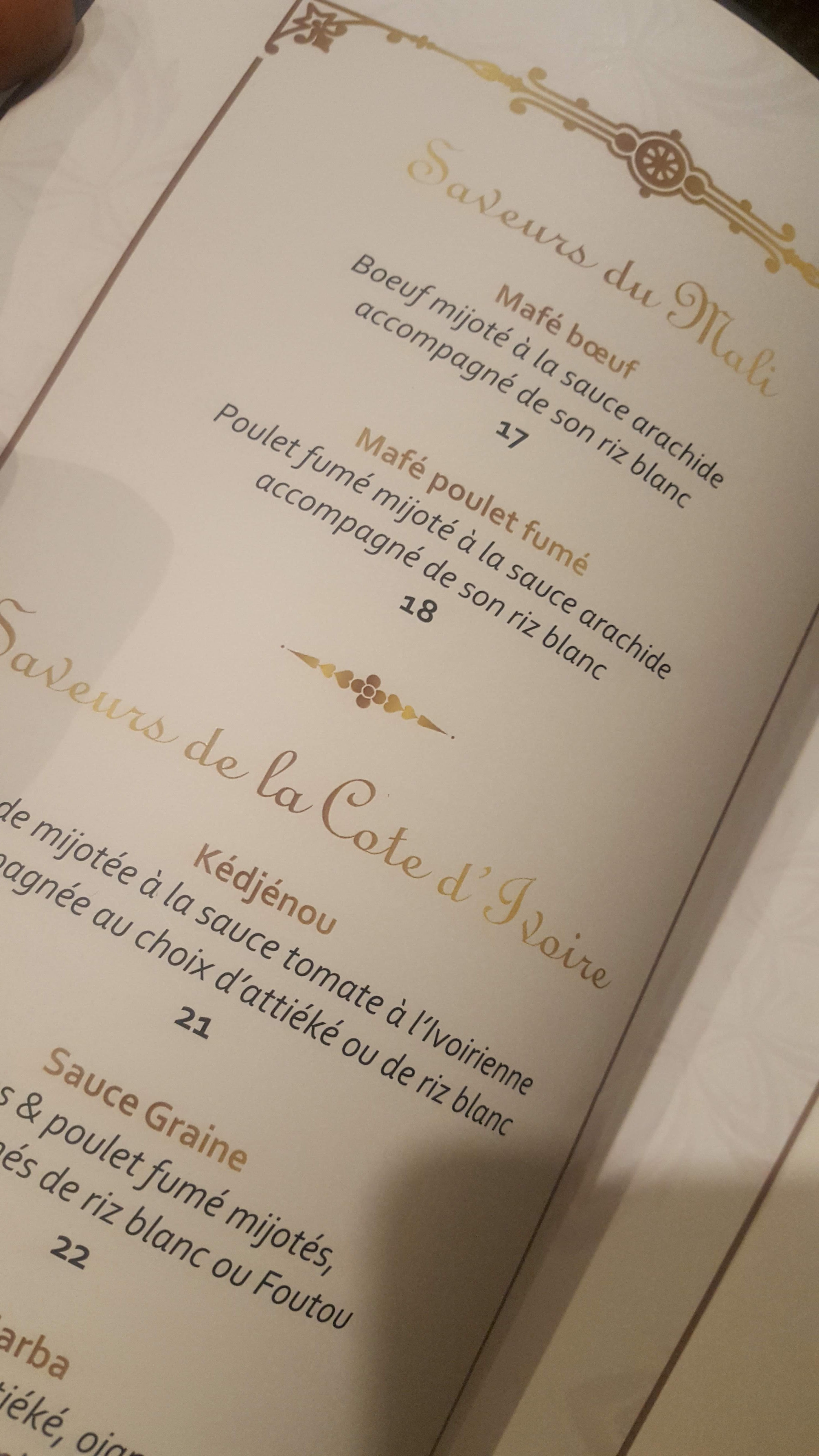 Une carte qui fait voyager! Nous avons pris 1 mafé poulet fumé et 1 riz avec sauce graine, c'était tellement bon ! Merci à nos deux gentilles serveuses très professionnelles. Nous reviendrons avec plaisir prendre le Thiéré du vendredi soir :). A bientôt !