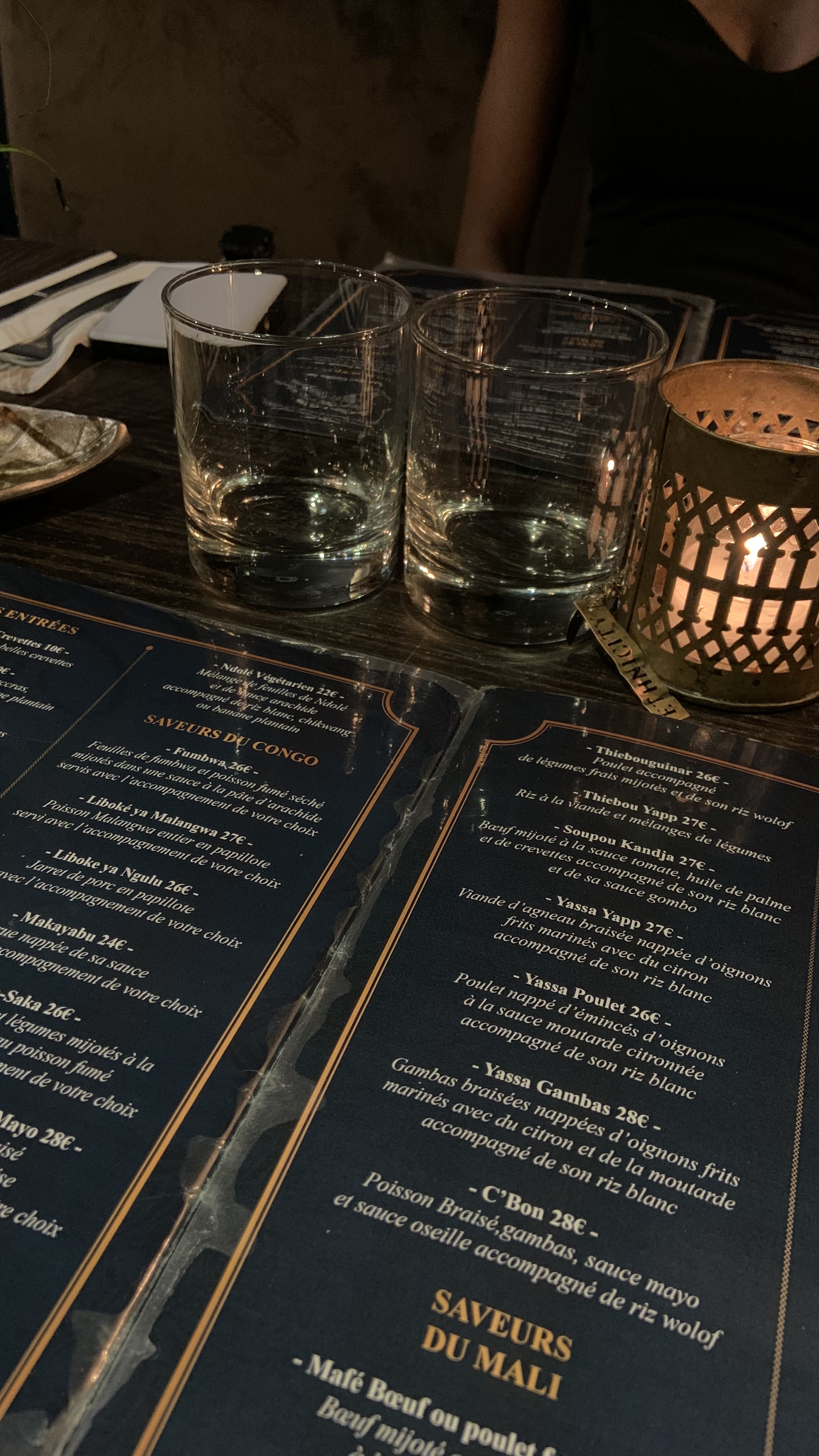 Déception, C’est le mot qu’il faut retenir. (cher, peu copieux, manque d’hygiène,peu de sauce…) Malgré une décoration chic et sobre, sur 5 il y a eu 4 personnes qui ont passé une mauvaise nuit. Quand c’est une personne on laisse passer mais quand c’est 4/5 on se demande si les règles d’hygiène sont respectées! Apparemment elles ne le sont pas. C’est honteux vu les prix. Service également à revoir, juste 1 ou 2 serveuse donc attente TRÈS TRÈS longue : - réservation à 19h30 sortie à 23h - pas d’indication pour la carte (heureusement que dans d’autres restaurants on nous a montré comment faire) - Pas de carafe d’eau sur la table malgré qu’on attende nos plats/boissons - Serveuse gentille mais doit revoir les bases du service à table - On a attendu plus 45 min pour pouvoir commander le dessert Les toilettes ne sont pas propres, se situe juste à côté de la cuisine qui ne possède pas de porte fermée. Bonjour les microbes ! Hormis cela, le sol est sale il colle sous les pieds, les escaliers recouverts par de la moquette n’ont même pas été nettoyés. Même dans certains kebabs c’est beaucoup plus propre. Quantité pour une planche à partager à revoir, c’est ridicule surtout pour 20€ (2 pastel, 4 samoussa, beaucoup de salade, 1 Accra, 5 frites.. oui 5 frites de patates douces) Pour les plats à l’unanimité on n’a retrouvé aucun goût savoureux. Des plats sans saveur quel dommage.. En résumé, pour un dîner en famille pour apprécier la nourriture africaine autre que celle de nos mamans c’est inutile d’aller gaspiller son argent dans ce restaurant. Il y a de meilleurs restaurants moins chers et plus copieux. Au total pour 5 personnes, l’addition à 280€. On regrette amèrement ce choix. Nous ne reviendrons plus. Il n’y a que le fumbwa où la quantité était copieuse. L’agneau (Yassa Yapp) est trop cuit, dur, et blesse la gencive.