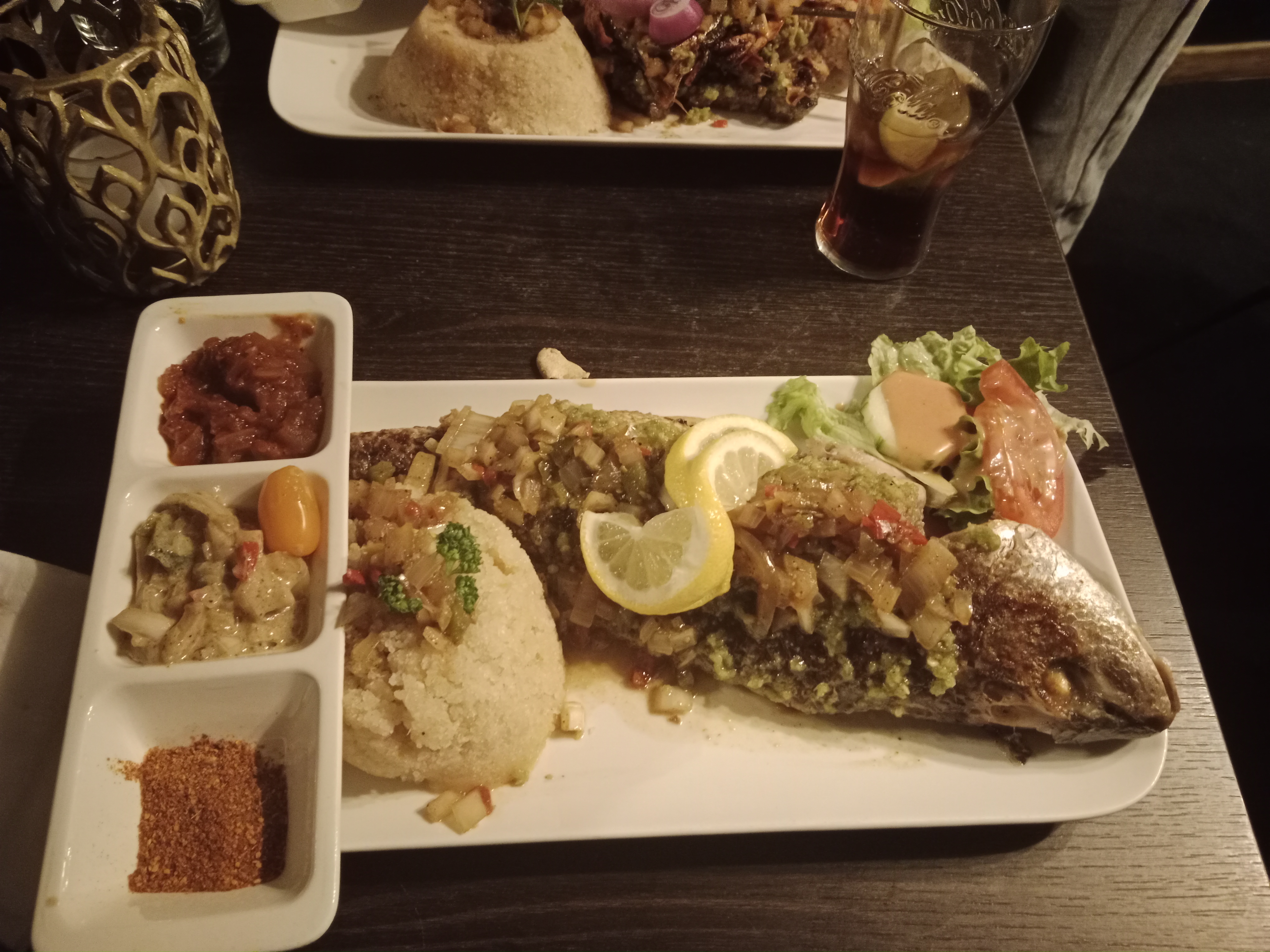 J'ai dîné avec des amis à l'Afrodisiac. Bon cadre, avec un luminaire agréable. Le saka-saka était bien. Je n'y ai pas eu le poisson mis dans la description, mais la sauce était bonne. Le foufou l'était moins. Mais c'est un bon cadre pour manger afro. Que ce soit ouest africain ou Afrique centrale.
