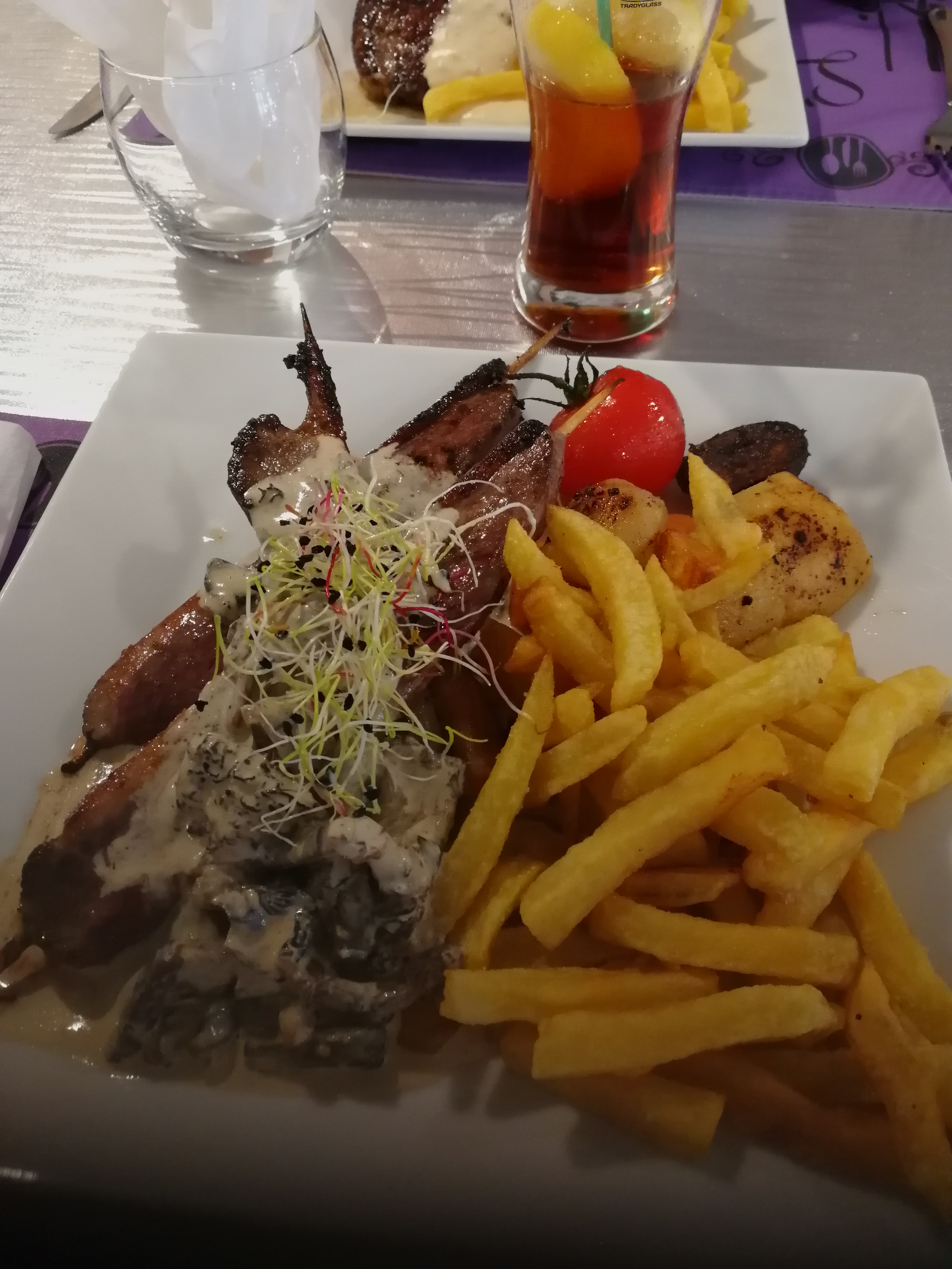 Repas et plat de bonne qualité et en quantité, en plus des frites maisons excellentes, la sauce forestière est vraiment très bonne! Petit bémol sur les desserts qui m'ont un peu déçu et les tarifs qui sont un peu élevés.
