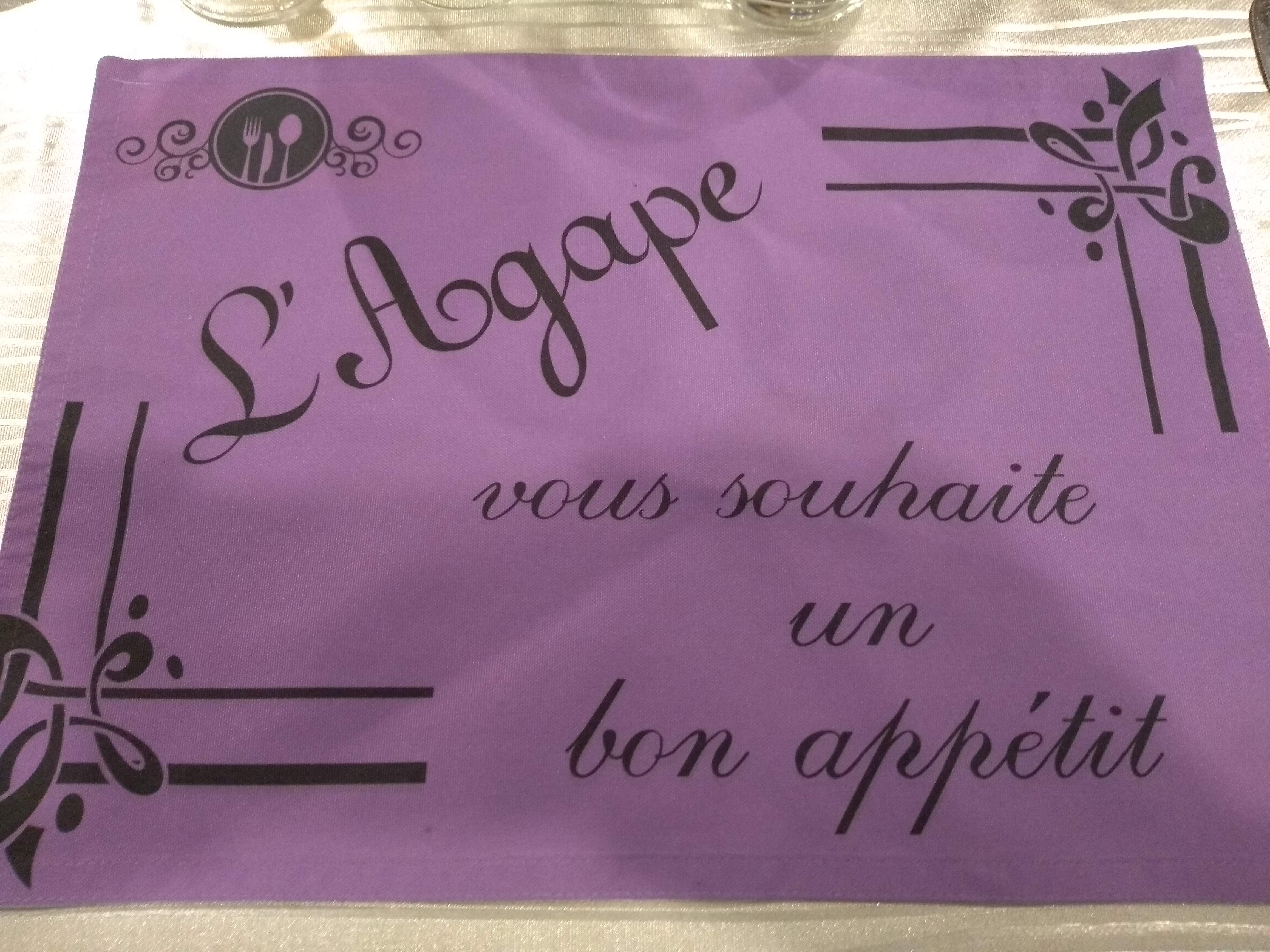 En week end dans le secteur ,nous avons réservé une table pour le dîner et nous avons découvert un très bel endroit.l'acceuil du personnel étais très agréable et leur gentillesse à durée tout le temps ou nous sommes restés. Nous avons mangé d'excellents plats très goûteux, préparés avec des produits régionaux et nous nous sommes régalés. Nous remercions toute la belle équipe de l'Agape et nous recommandons à 100%cette bonne table .merci a vous aussi d'avoir accepté nos quatres petits chiens et de leurs avoir fournis des gamelles d'eau. Nous reviendrons avec grand plaisir . Famille schaerer et la joyeuse bande à quatres pattes
