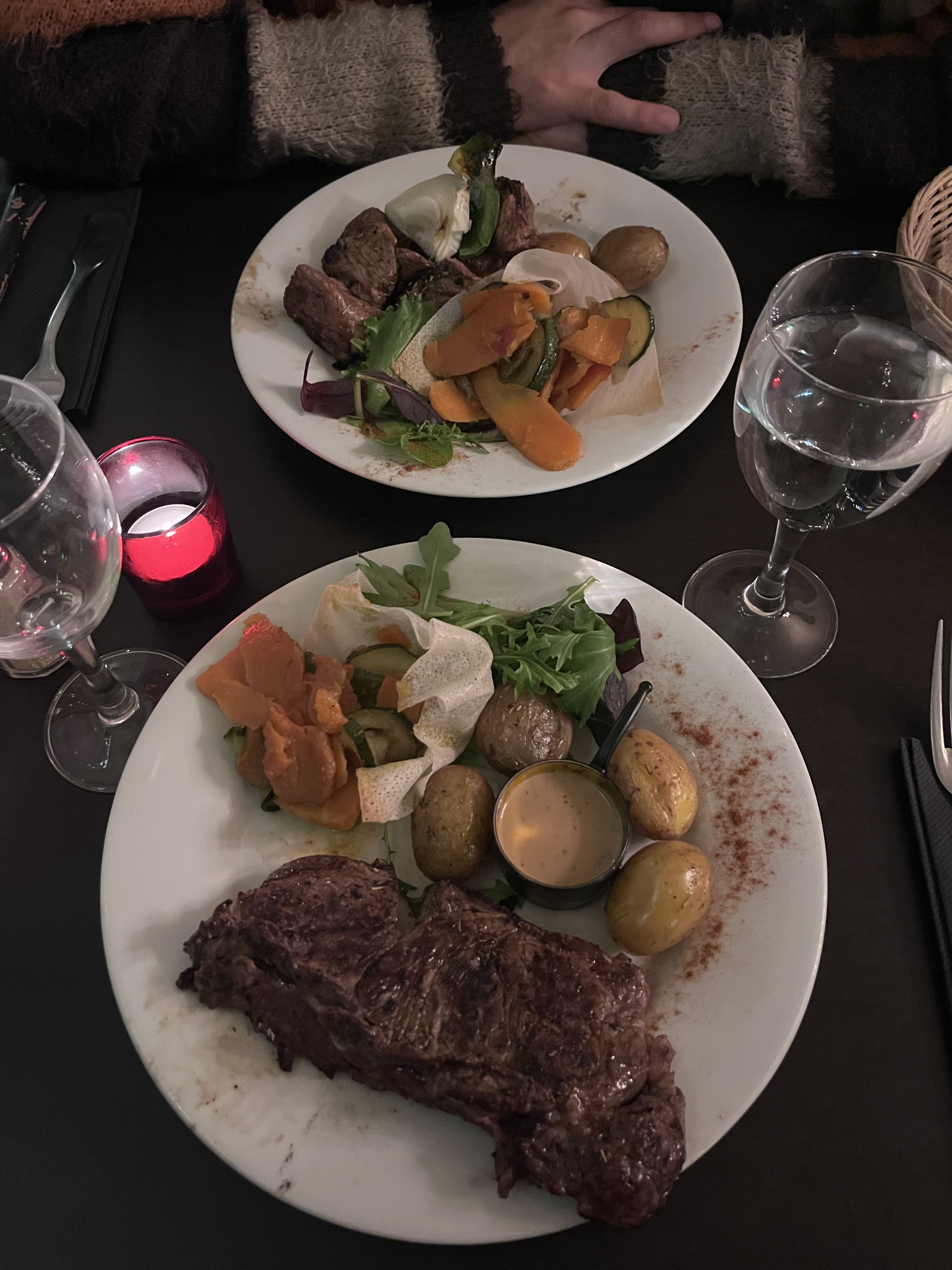 Bonne adresse, service très agréable malgré l'affluence, les cuissons sont parfaites que ce soit pour les légumes ou la viande, bon rapport qualité prix, si il devait y avoir un point à améliorer ce serait la pièce du boucher un peu nerveuse.