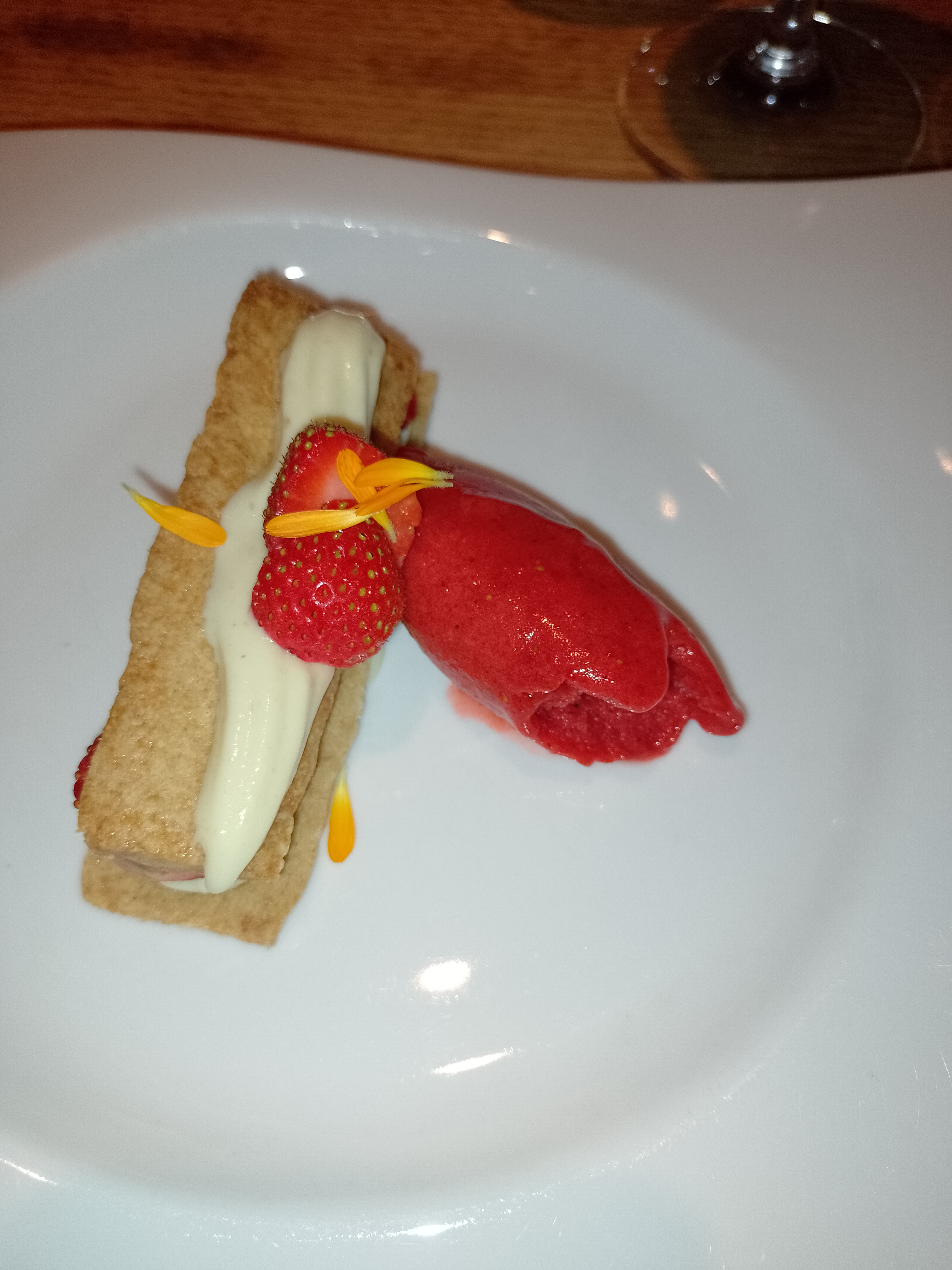 Dîner très agréable, plein de surprises culinaires,deviner ce que l on déguste avec la réponse du chef en fin de dégustation était tout simplement amusant.Tres bon moment. Je conseille vivement.