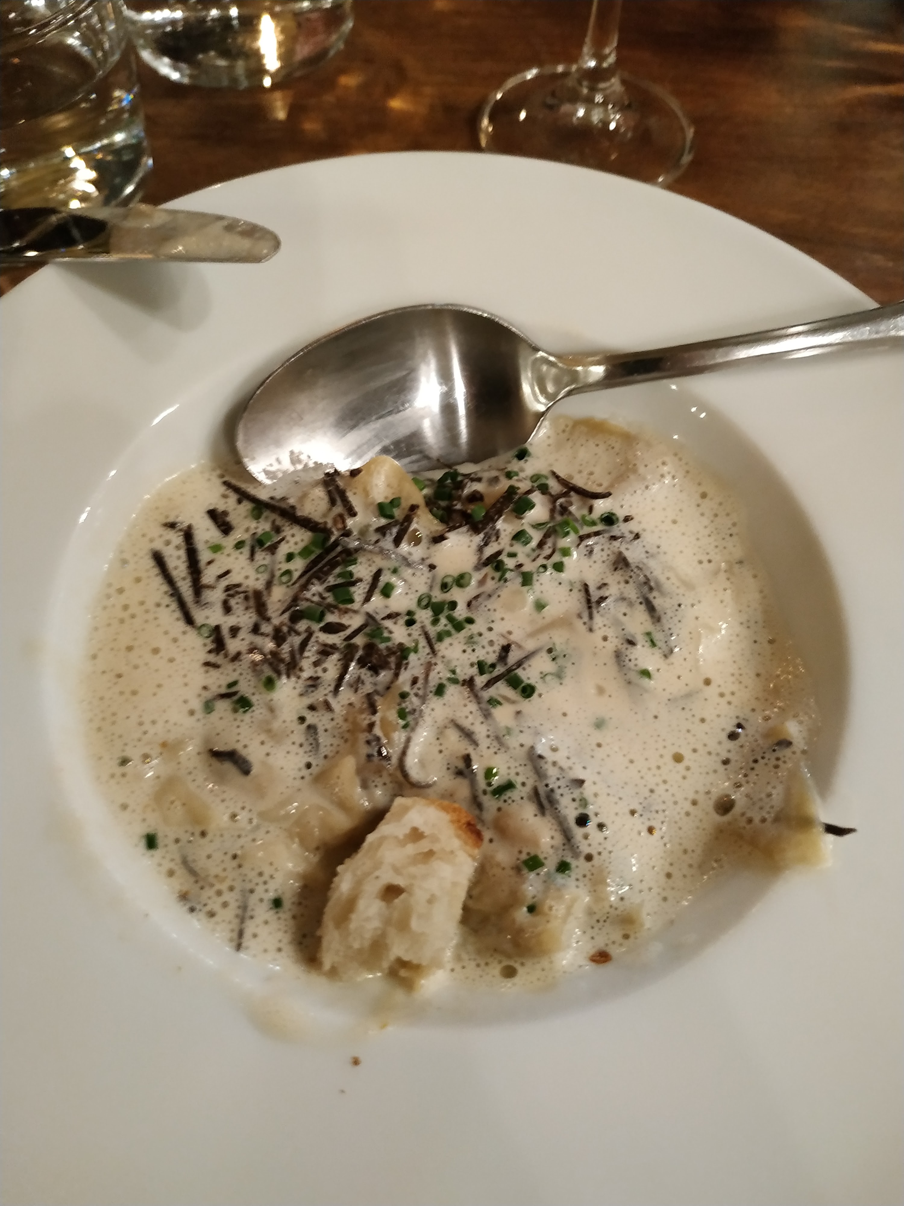 Très Bon restaurant. J'y suis allée le soir de la saint Valentin . Menu unique (55€)avec accord vin(24€) et mets. Amuse-gueules excellent dommage que c étaient des amuse-gueules. Entrée généreuse en truffe, très parfumée et bonne. Très bonne crème au chocolat. Les vins qui accompagnaient, avaient été bien choisis et moi qui n aime pas trop le vin rouge,j ai été surprise par le cahors!l Ensemble étaient très bien dosés et équilibrés. Plus aurait été de la pure gourmandise.