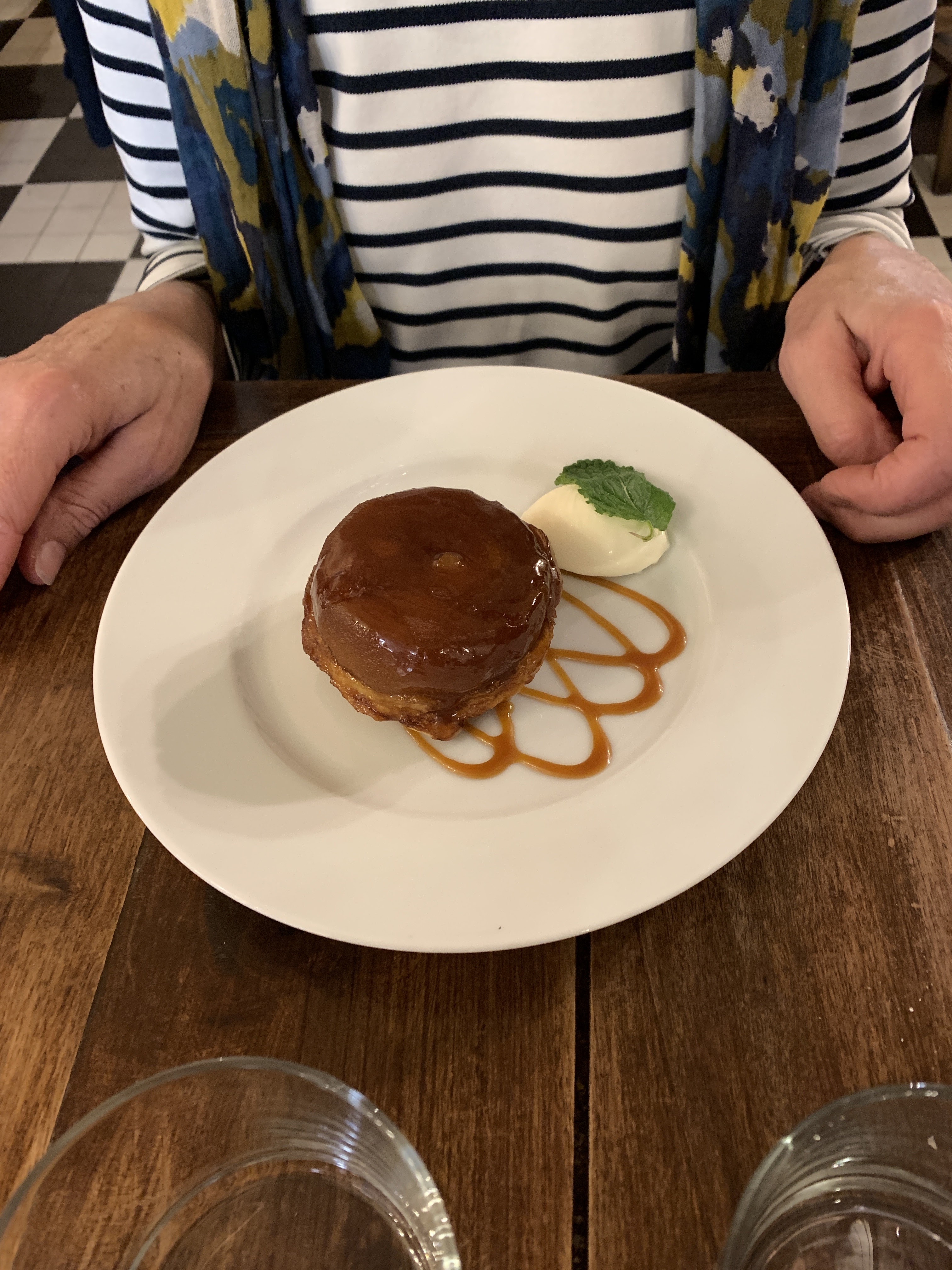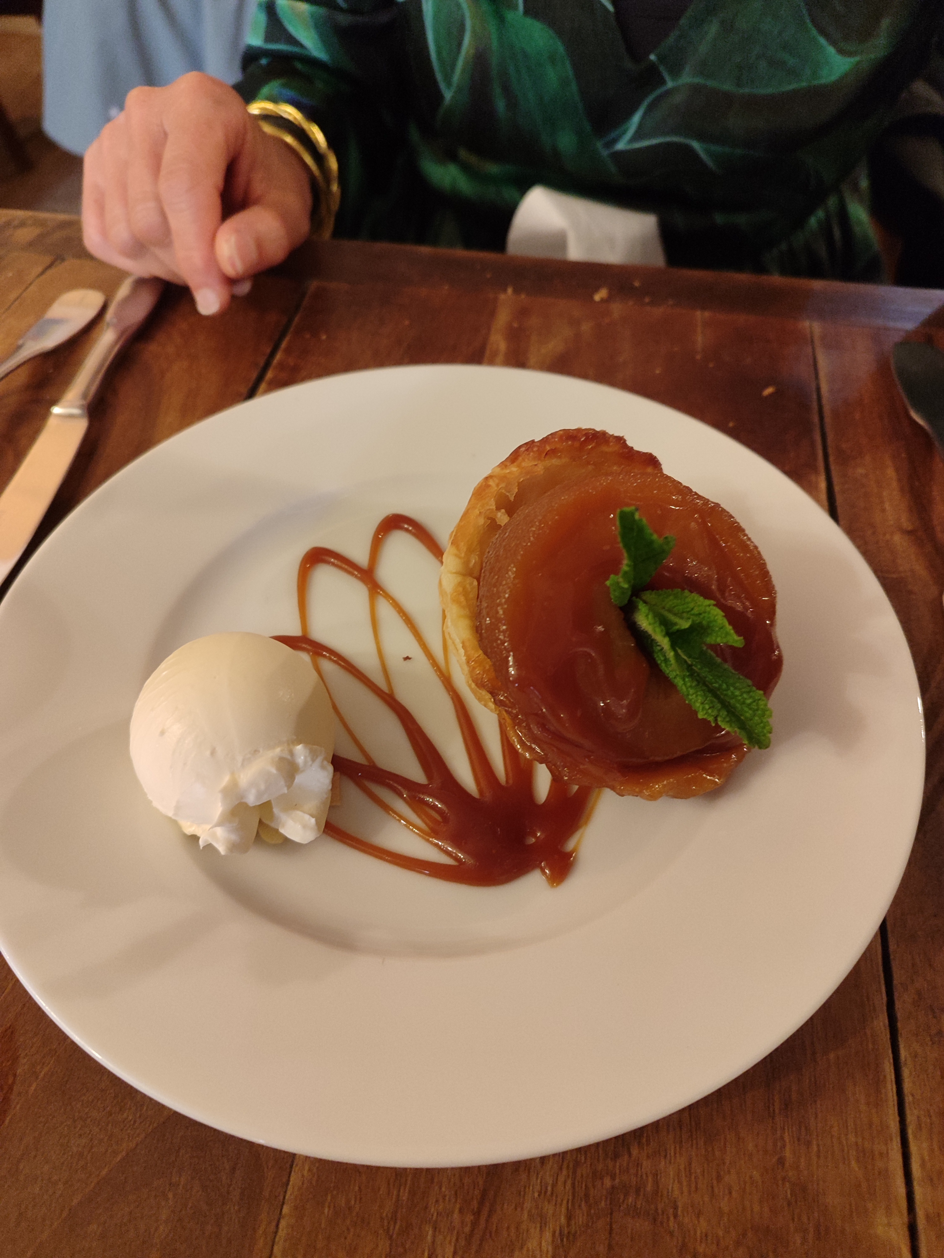 Assiette copieuse et gourmande ( mention spéciale à la tarte tatin) dans un décor chaleureux.service pêchu.