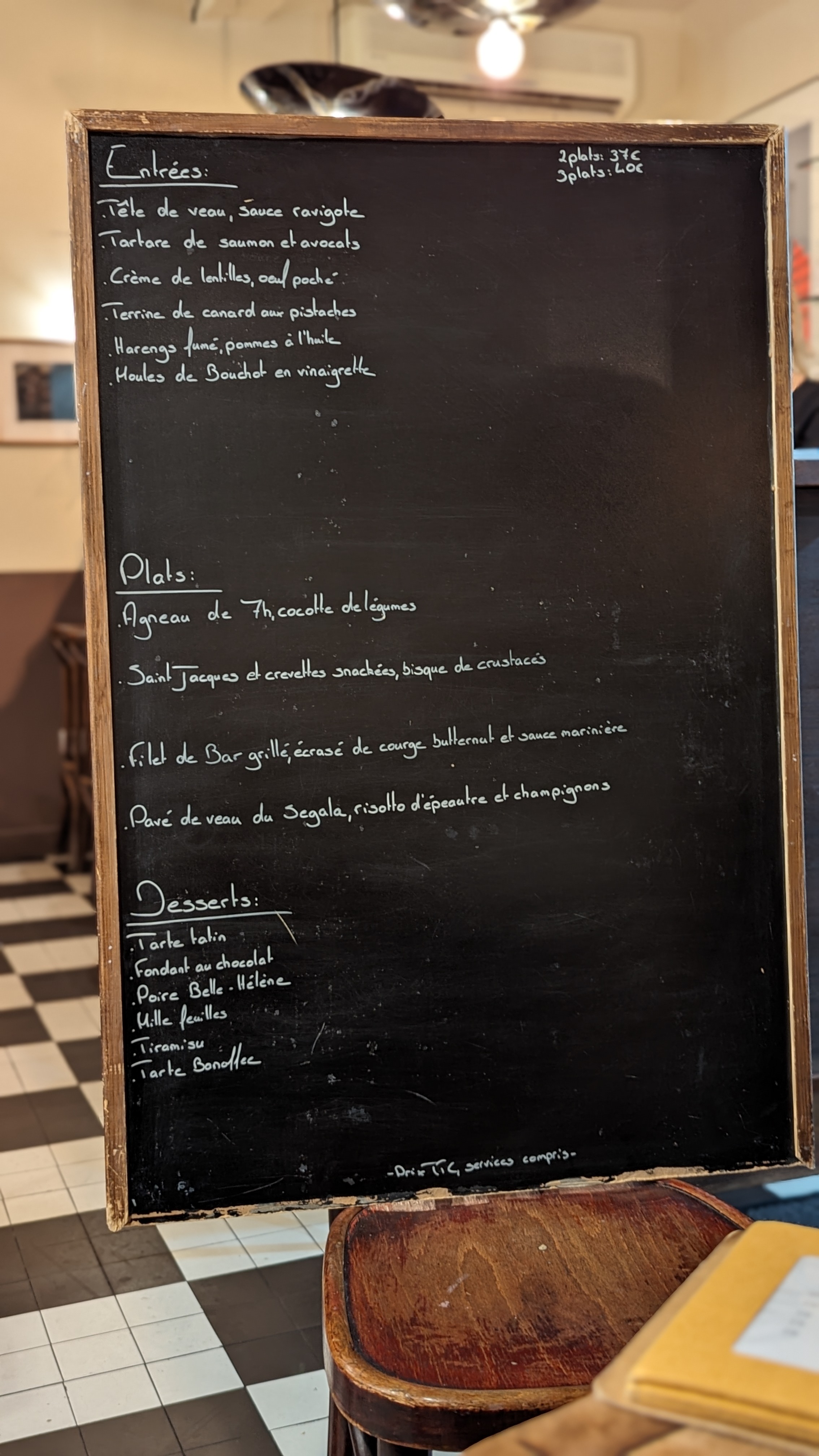 Acceuil et service toujours aussi agréable. Repas entrée/plat/dessert 38€ sans le vin de vrai qualité, qui paraît simple mais qui au final est recherché. Top