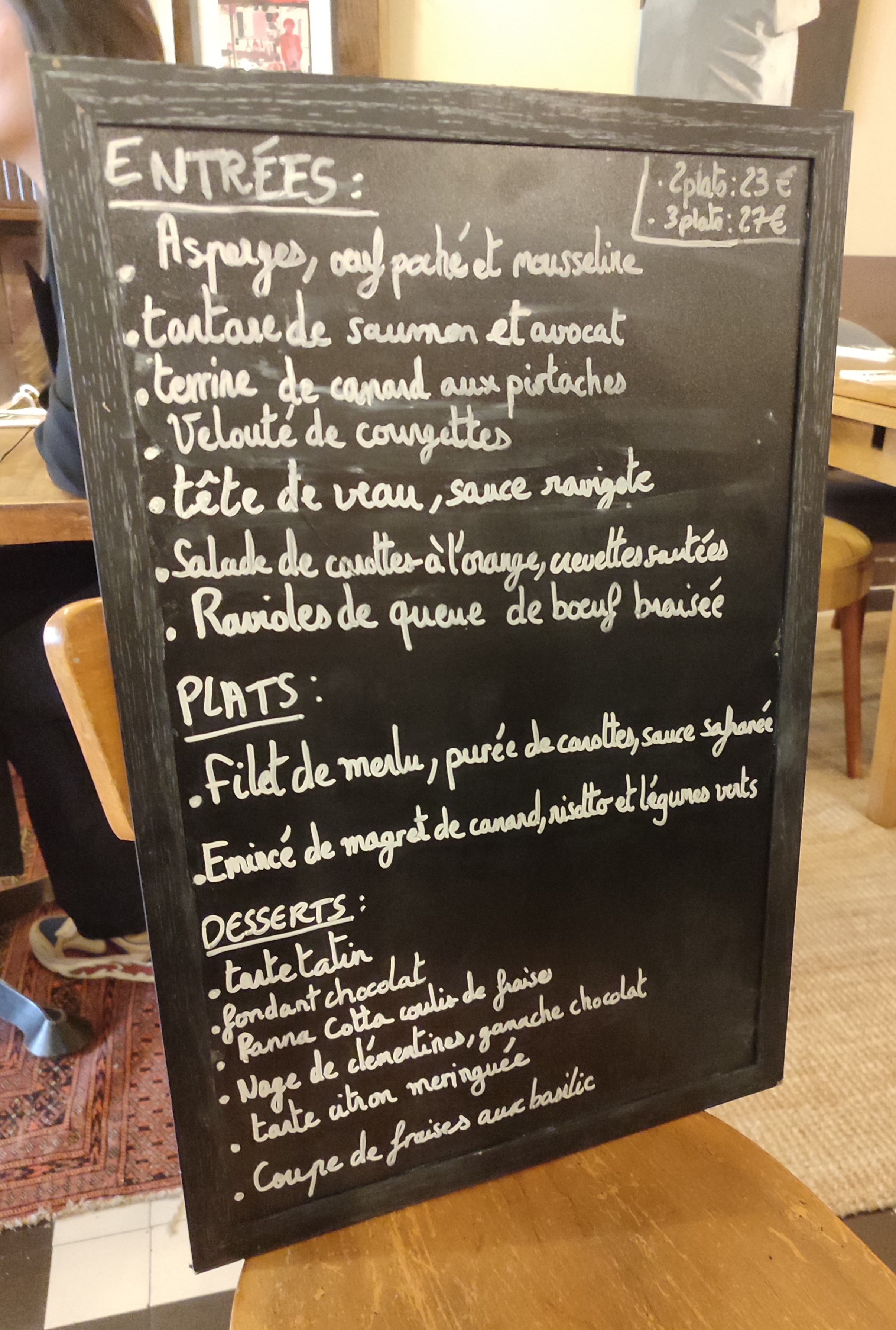 Un excellent moment! Le menu est présenté sur une ardoise avec plusieurs entrées, un choix entre un poisson ou une viande et plusieurs desserts. De l'entrée au dessert, tout était très bien exécuté. C'est aussi beau que bon, un vrai régal pour les papilles! Les produits sont frais, de saison et de qualité. Une superbe adresse sur Toulouse! Pensez à réserver!!
