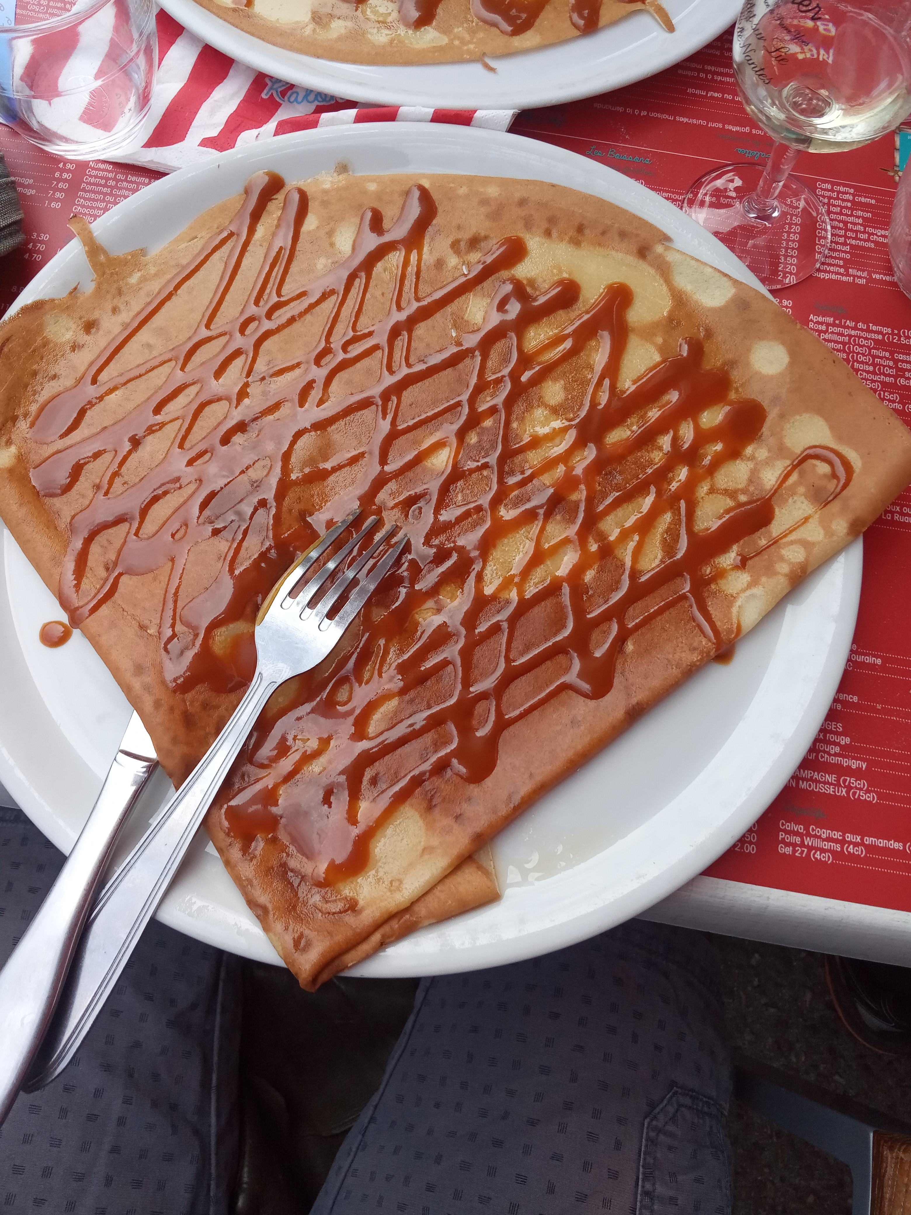 Très bon moment !!! Tout était parfait..... De la crêpe salé ( la saint michel pour moi et la forestière pour mon compagnon) les goûts des produits sont très bien caractérisés et restent authentiques.... Pour finir une crêpe pommes caramélisées au beurre avec son caramel beurre salé...... Une vraie tuerie... Je vous recommande vivement cet endroit, vos papilles gustatives seront séduites.