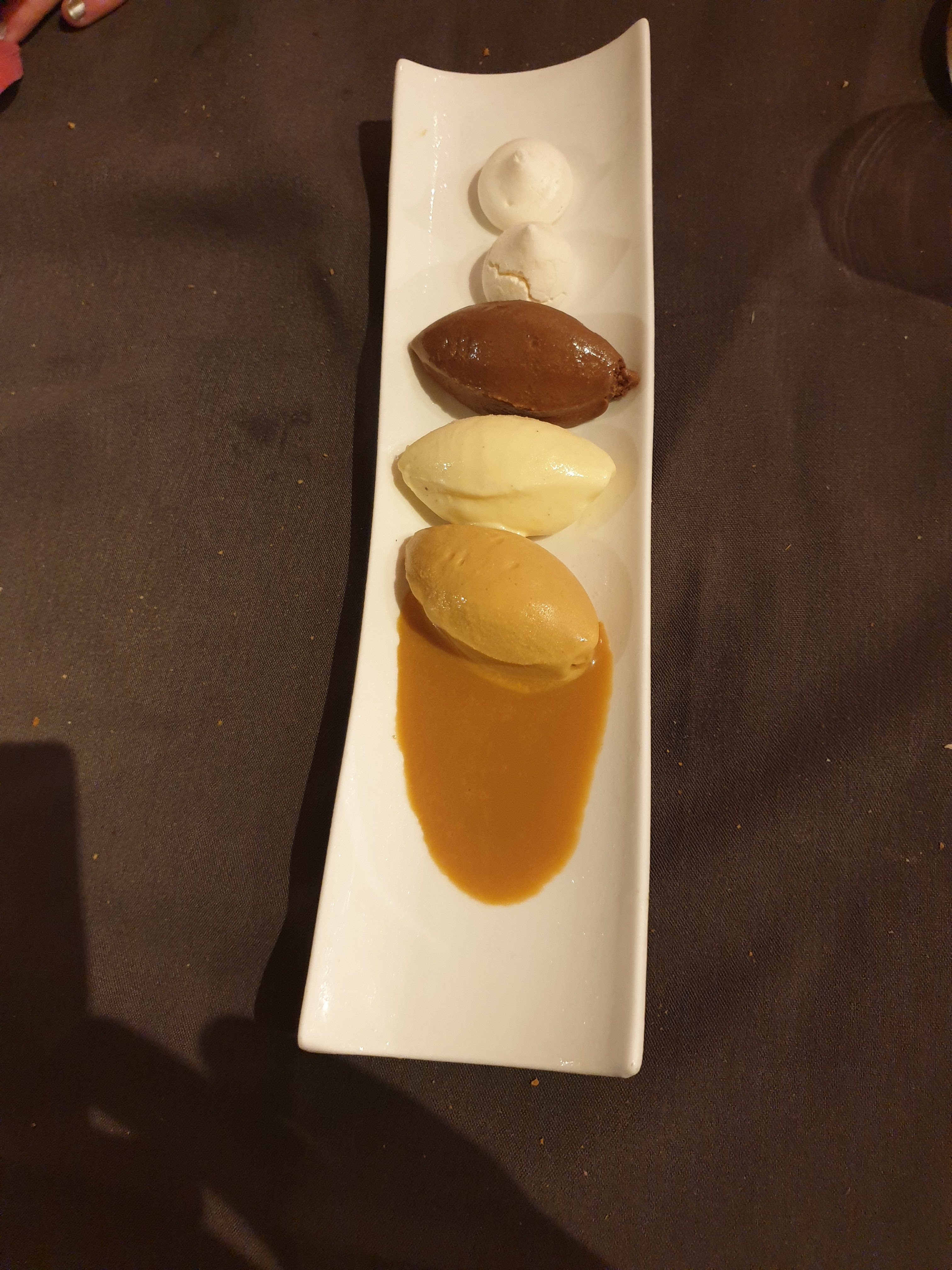 Nous nous sommes régalés avec la cocotte de coquilles saint jacques et son délicieux risotto, et la cocotte de civet de cerf. Savennieres pour accompagner très bien. Suggestion d'amélioration : pour l'assortiment de glaces, proposer au préalable le choix pour éviter des parfums moins appréciés comme celui au café. Merci pour le service