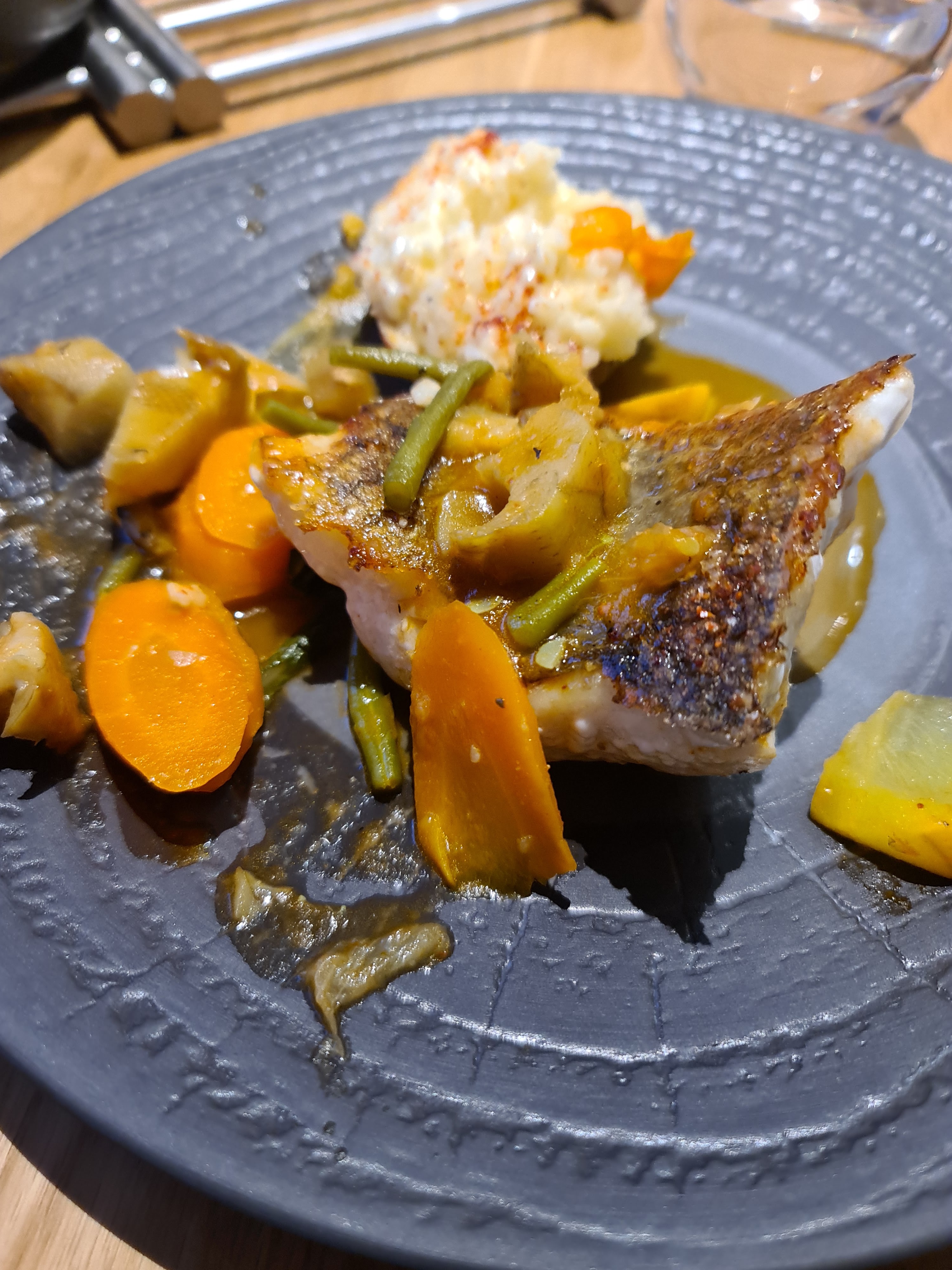 Excellent dîner.. un régal que cette cocotte de Saint pierre. Dessert à l'assiette parfait très beau dressage. Nous nous sommes régalés. Merci