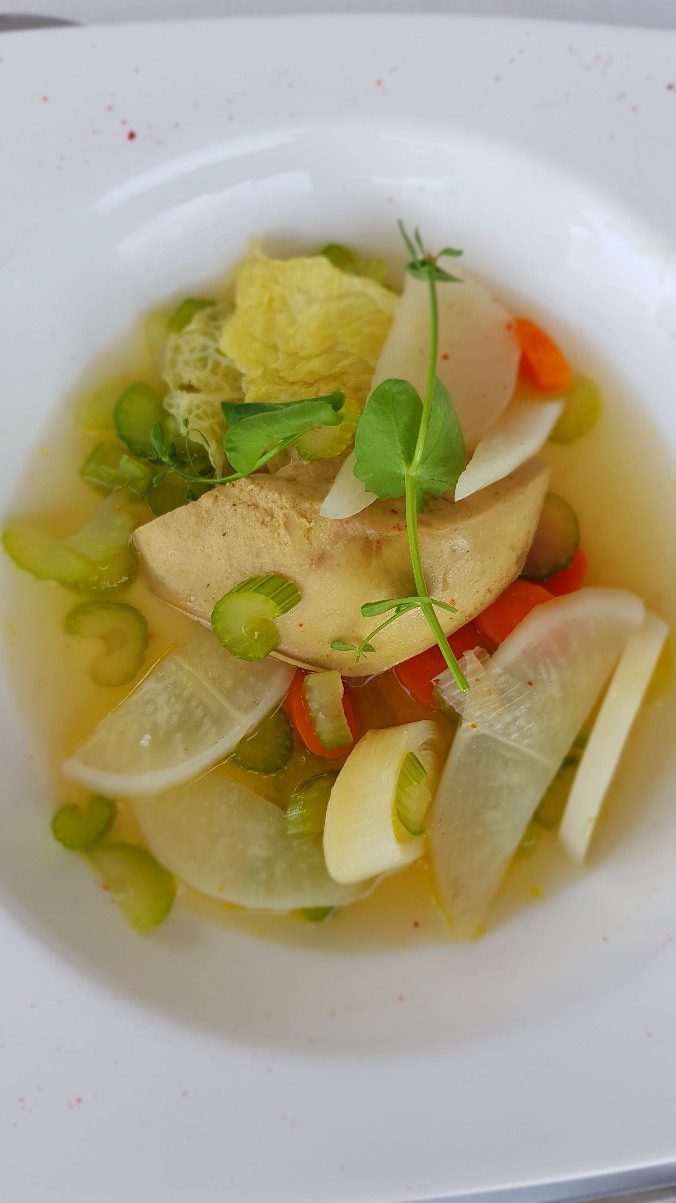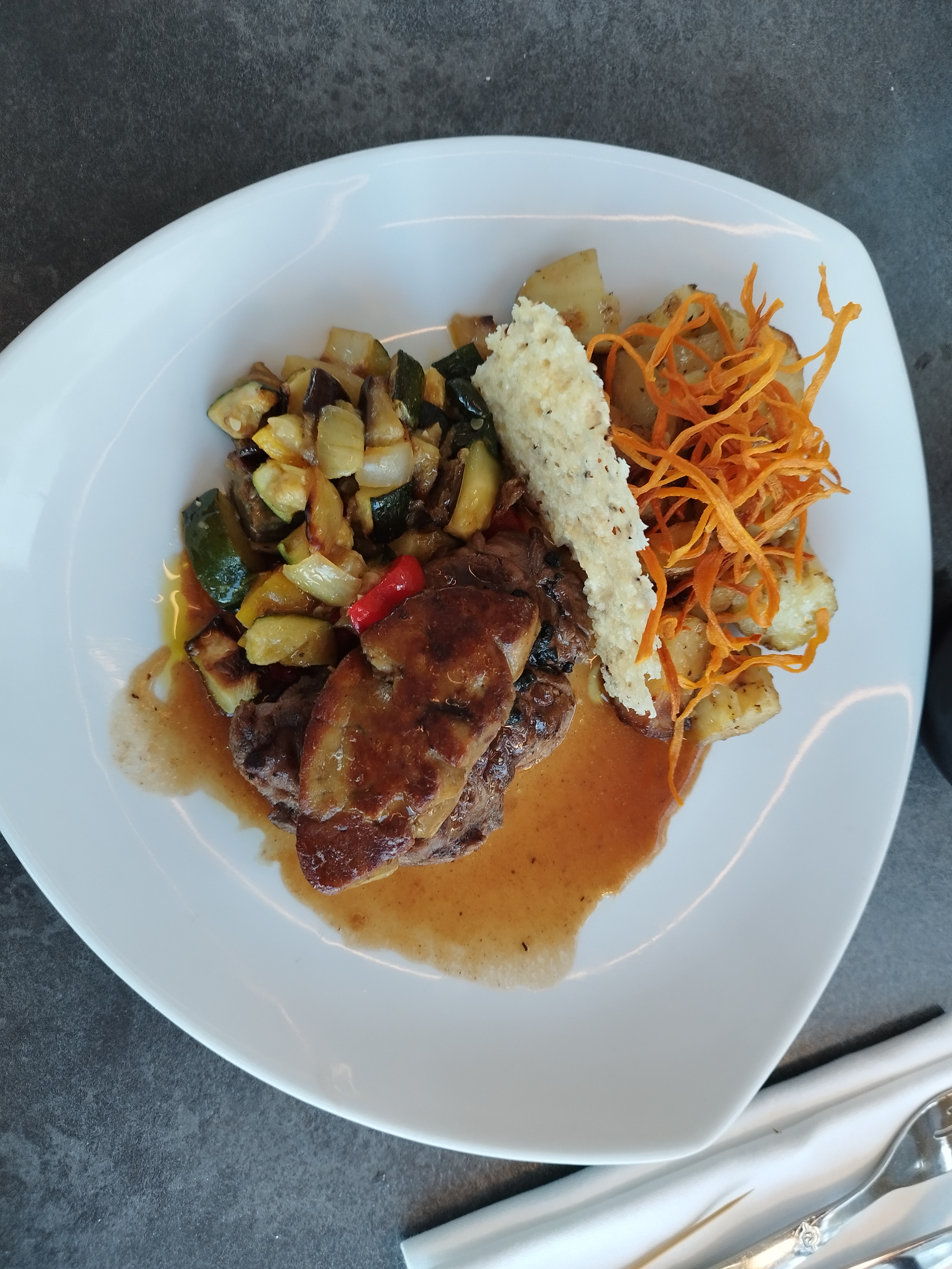 Excellent restaurant très très bien accueilli je recommande le foie gras en entrée et le thon sauce soja avec les petits légumes très bon aussi poulet aux marrons .assiettes charcuterie en entrée à partager à trois très copieux .une vue splendide
