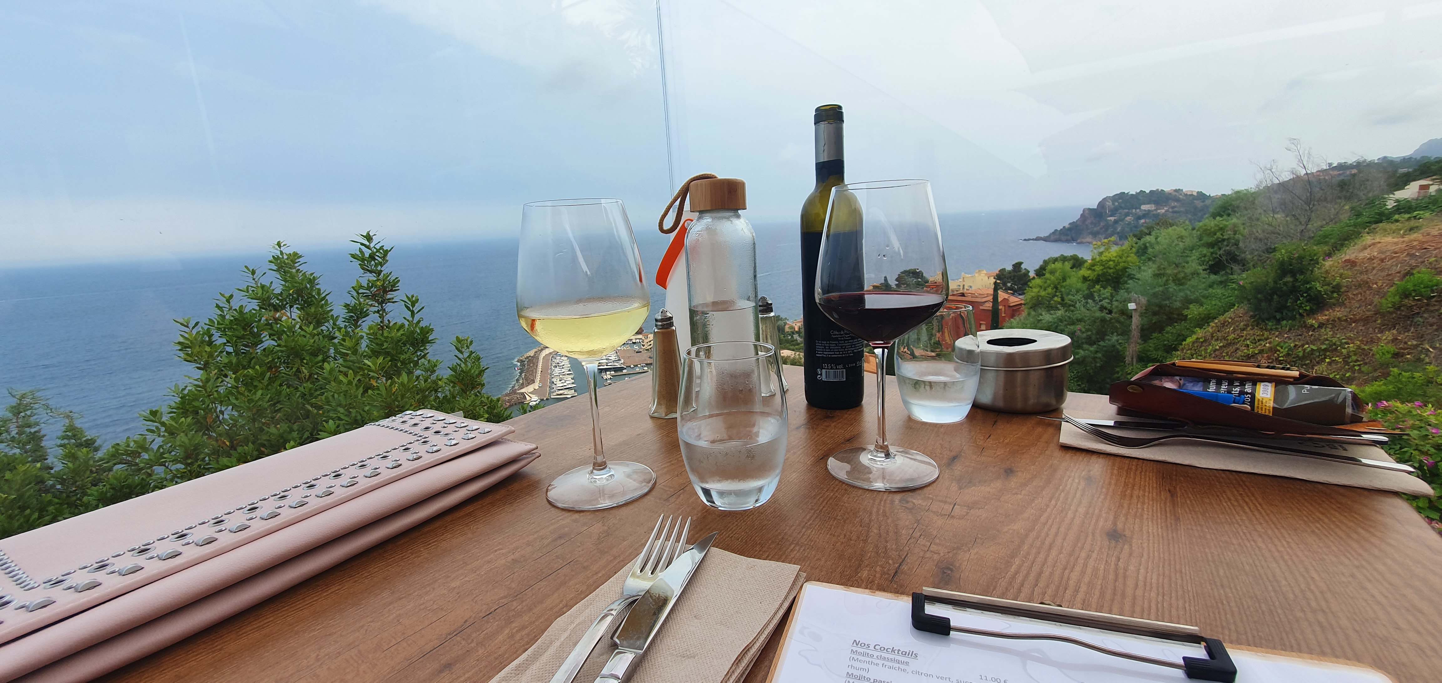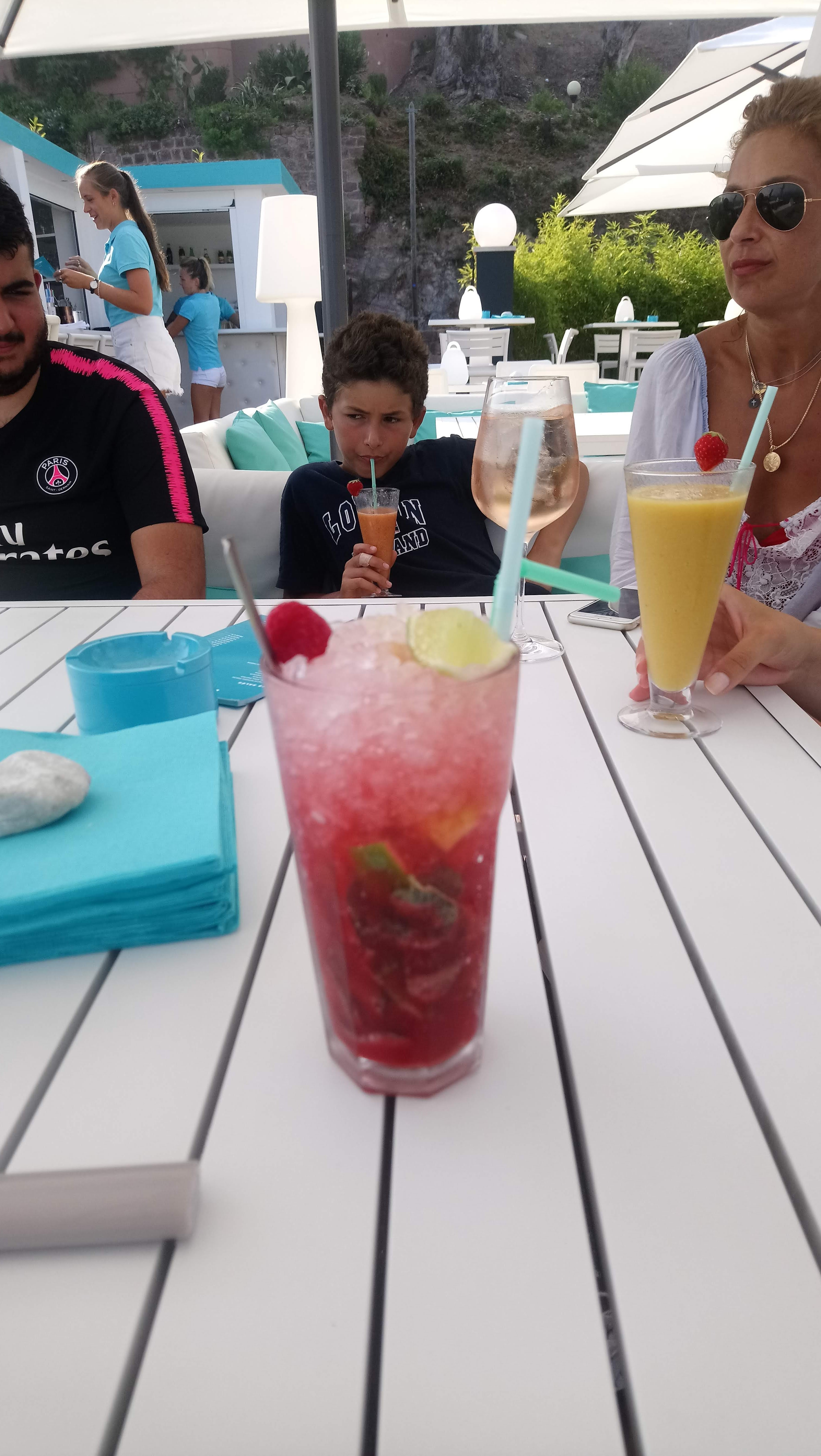 Nous sommes passé par hasard un dimanche vers 15 heures et nous avions très soif car il faisait chaud. On nous a accueillis avec le sourire et beaucoup de gentillesse malgré le fait que c était la fin du service. Nous avons apprécié cet accueil chaleureux de la part des salariés. La vue est magnifique. Nous reviendrons déjeuner si nous passons près de Theoule. Merci encore ! Nous recommandons ce restaurant.