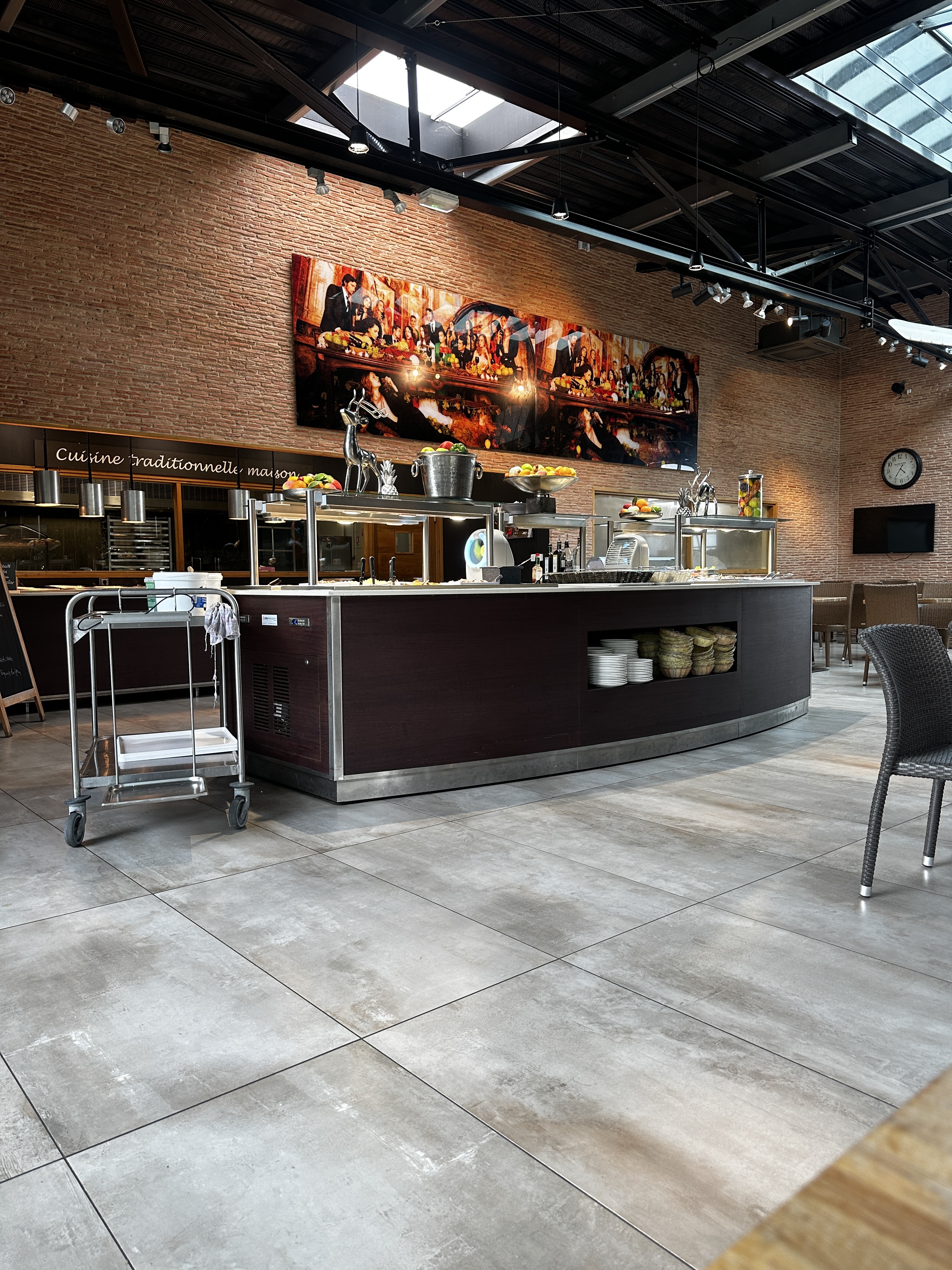 Je fréquente plusieurs fois par an ce restaurant pour des raisons professionnelles et parfois personnelles. Ici, on se sert soit même aux banques réfrigérées, bon choix dans les entrées, (une 20aine de salades/charcuteries) 3 plats du jour avec accompagnements différents, fromages, desserts, 1boisson pour moins de 20€ le samedi soir. Beaucoup de fait maison et c'est bon. Alors oui, l'ambiance est plus cafétéria que restaurant ** pas de service à table, vous devrez vous déplacer pour un pichet d'eau ou un morceau de pain, ainsi que pour vos plats, mais ça reste très décontracté et c'est parfait pour un repas familiale ou entre amis, et bien évidement pour se restaurer sur le chemin des vacances ou du travail. Allez y, vous ne serez pas déçu !