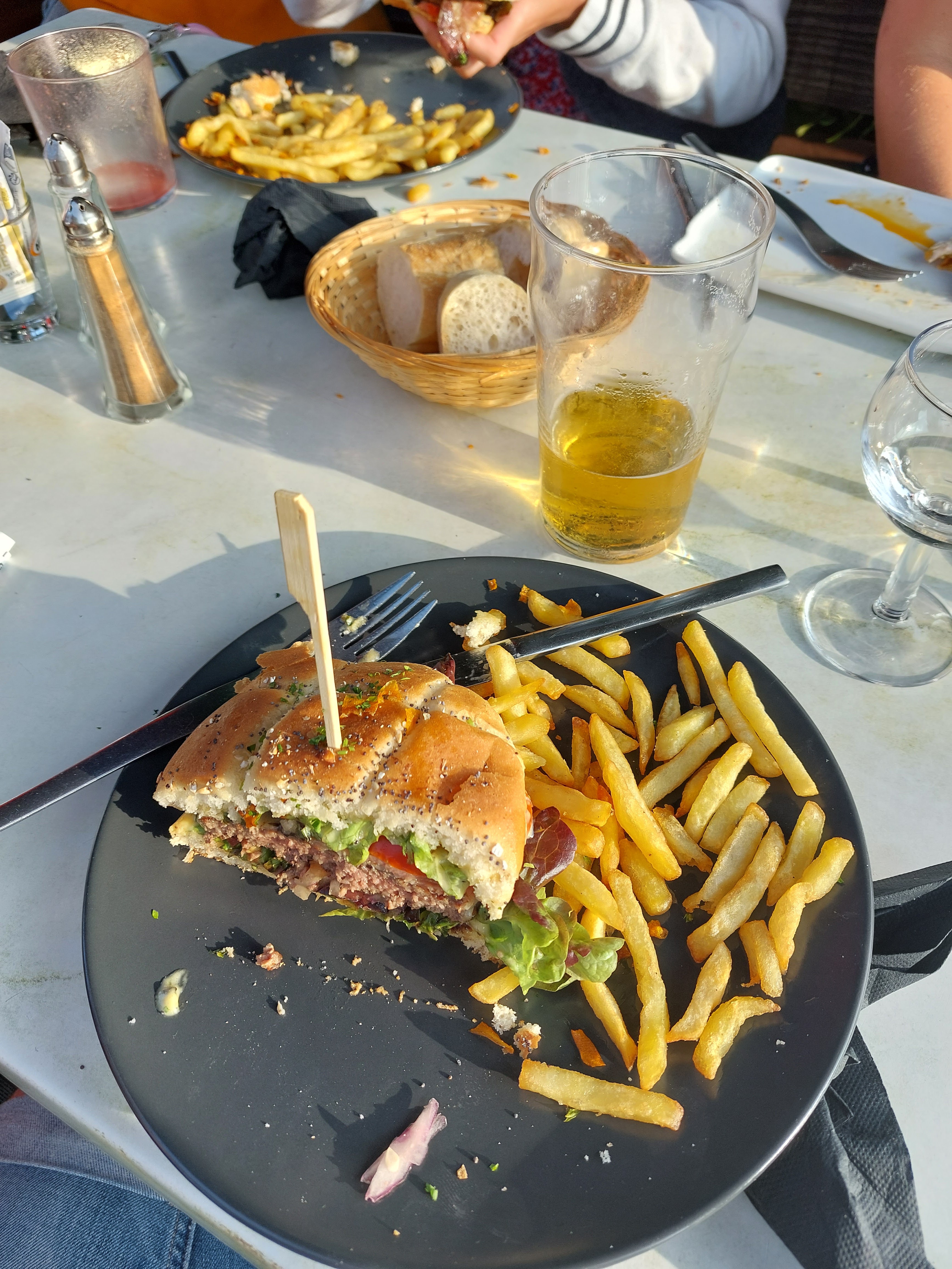 Comment dire…. Personnel très moyen….. Resto vraiment moyen , attendre 20 minutes pour une simple carte , sans nous demander si on voulait des boissons , moules frites à la crème vraiment moyen , le burger aussi , viande congelée vraiment dommage . Assiette de tapas , moyen , le melon a aucun goût et pour 14€ il en faudrait un peu plus . A améliorer