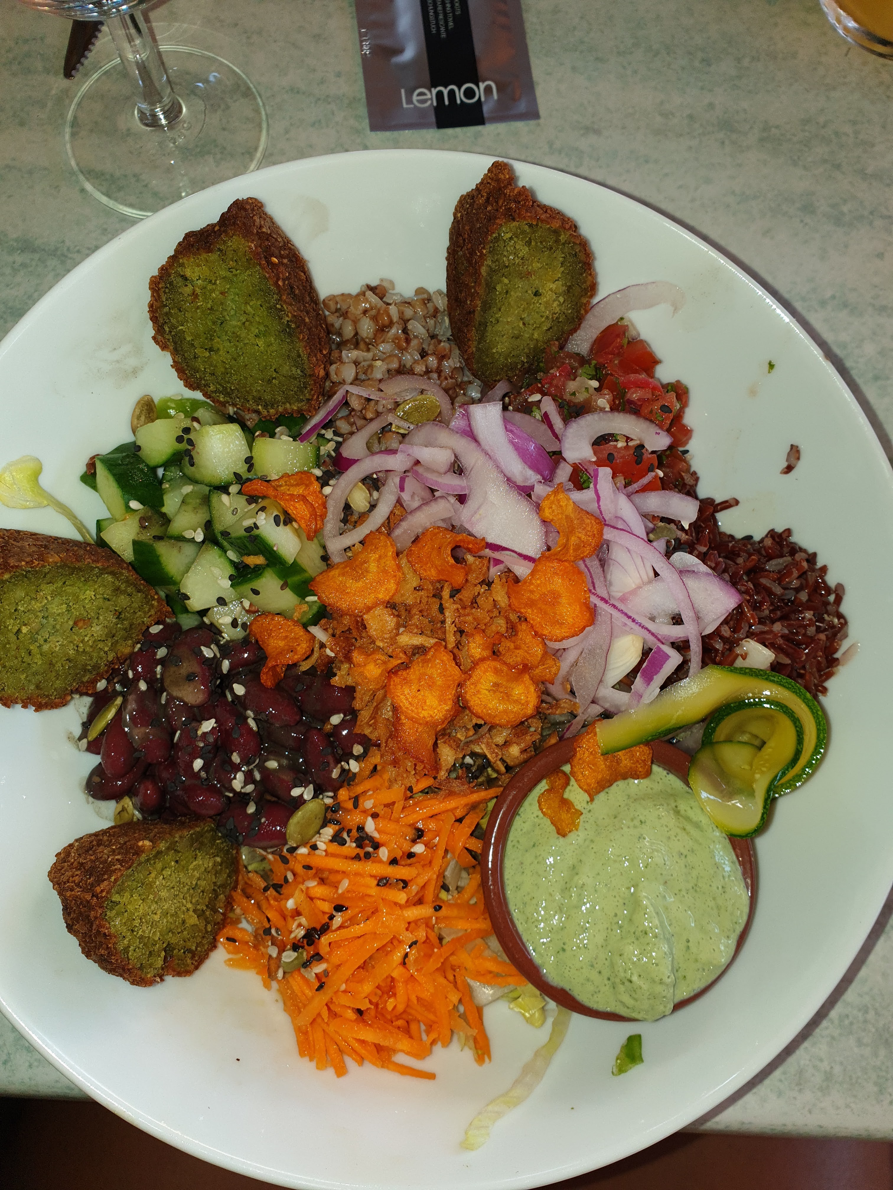 Arrivés avant le coup de feu, le service a été rapide. L'endroit est sympa, l'accueil et le service le sont tout autant. Le Bouddha bowl est copieux, rien à redire. Merci!