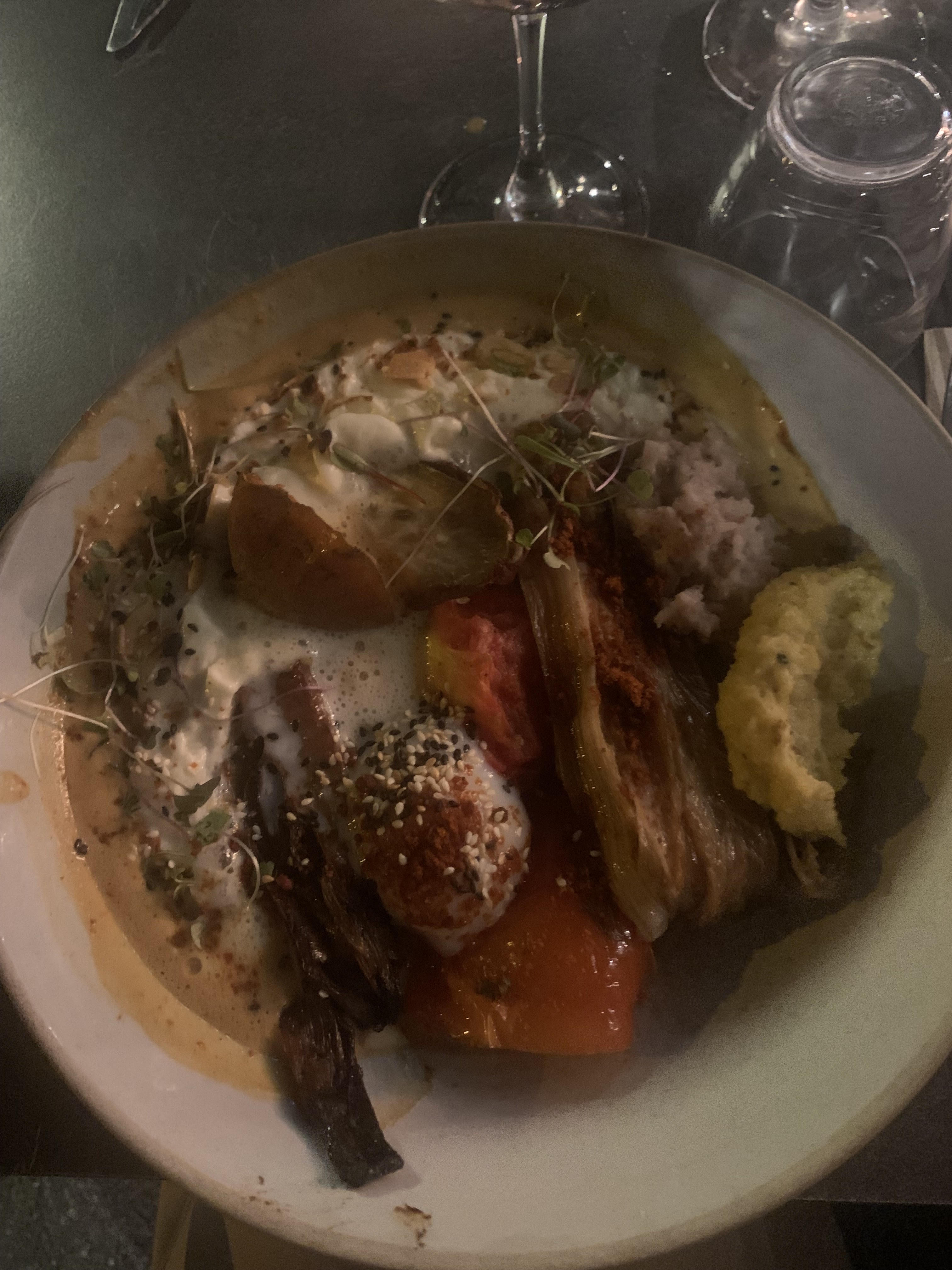La cuisine est excellente, même si les portions sont un tout petit peu trop petites (j'avais encore faim après entrée+plat+dessert) On est aussi trop serré, à 2 personnes on est assis à côté de 2 autres couples presque comme si on était ensemble, c'est dommage. Dans l'ensemble c'était quand même une très bonne expérience, avec des options végétariennes et des recettes originales. Je reviendrai pour le brunch qui m'a l'air incroyable !
