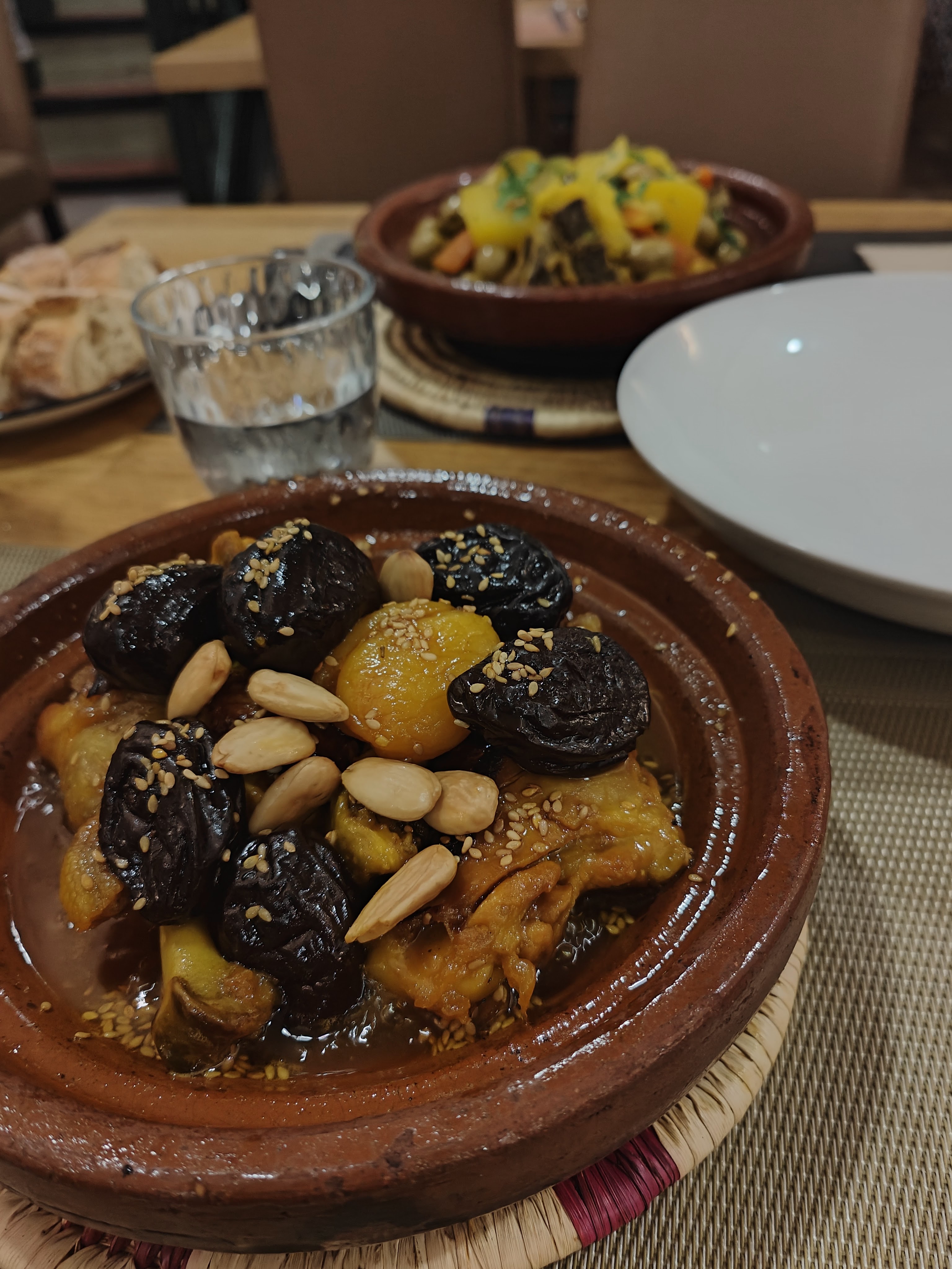 Excellent tajine aux pruneaux, abricots et noix. Très longue attente avant d'être servis...