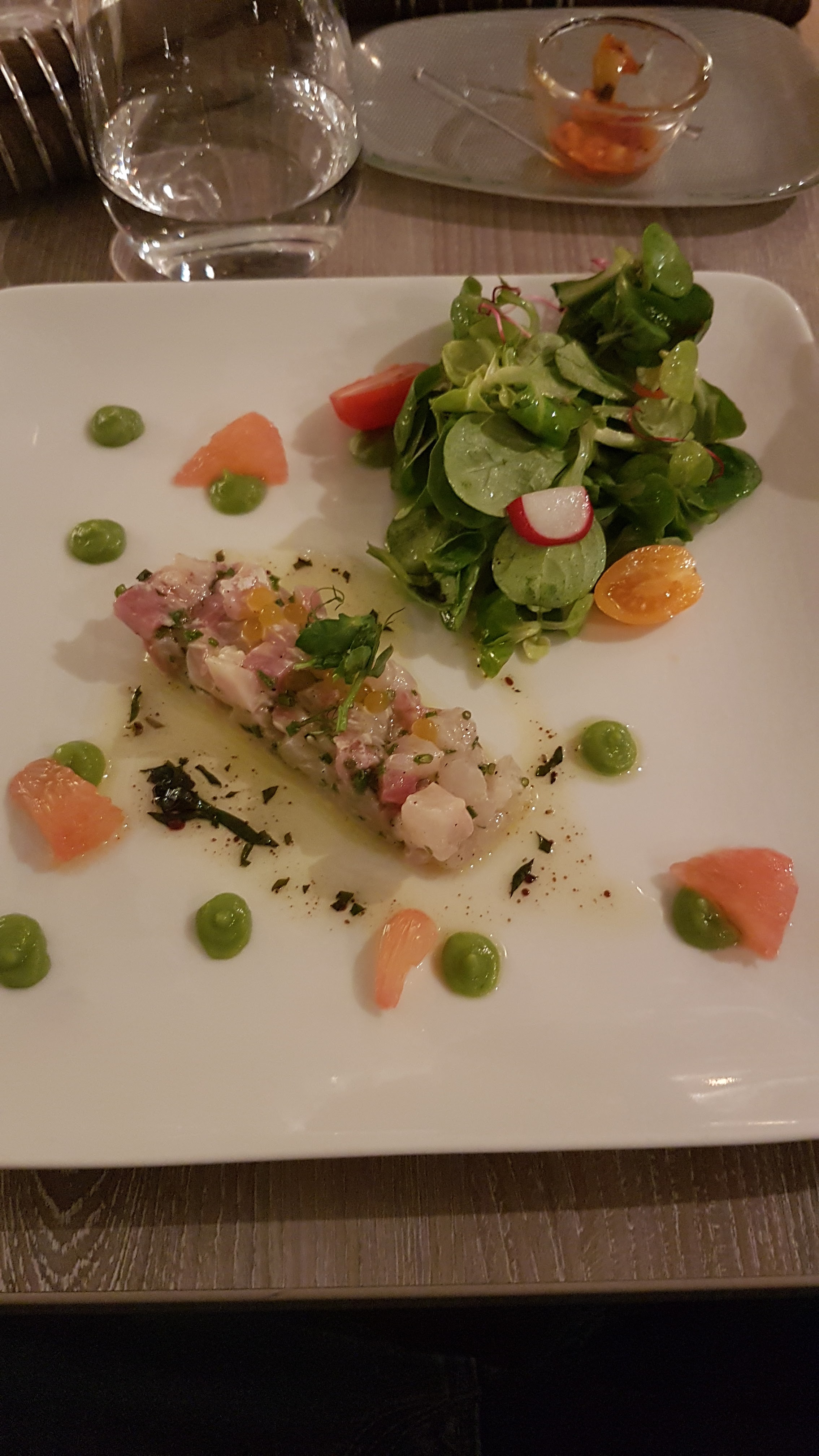 Cadre sympathique. Carte courte mais efficace, ce qui montre la qualité des produits. Les assiettes sont très belles, un vrai régal. Rapport qualité/prix correct. Cependant j'émets un bémol pour le service, car j'attends encore la carafe d'eau, et la serveuse n'est venue à aucun moment au cours du repas pour savoir comment ça allait, et de plus les assiettes sont retirées comme ça, c'est vraiment dommage.