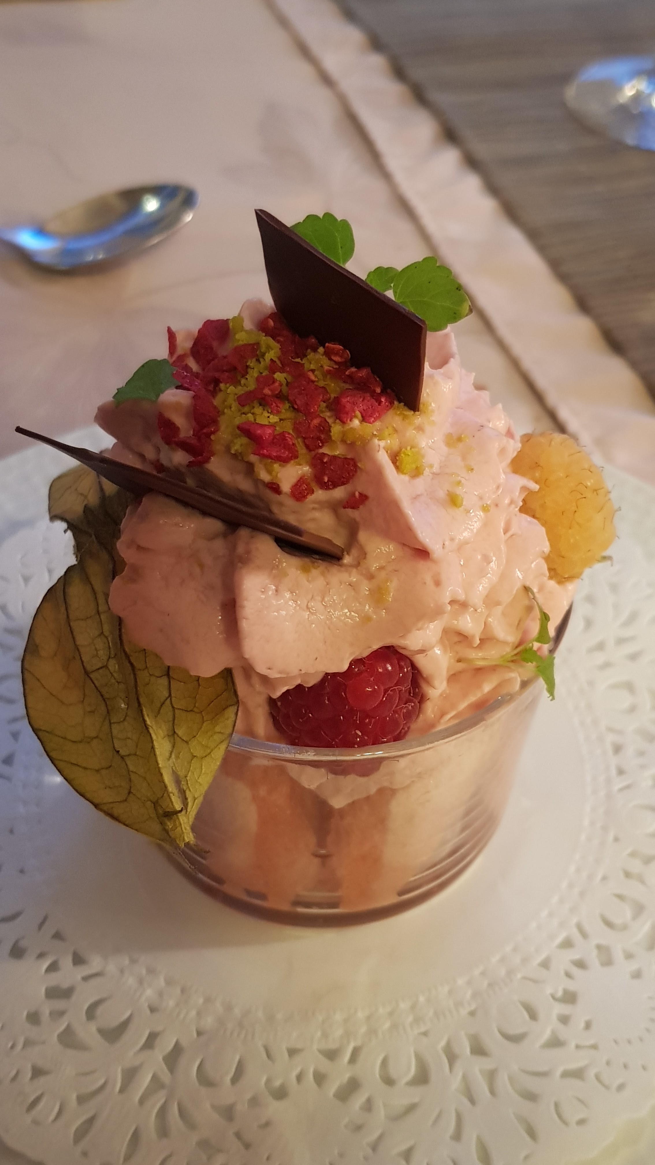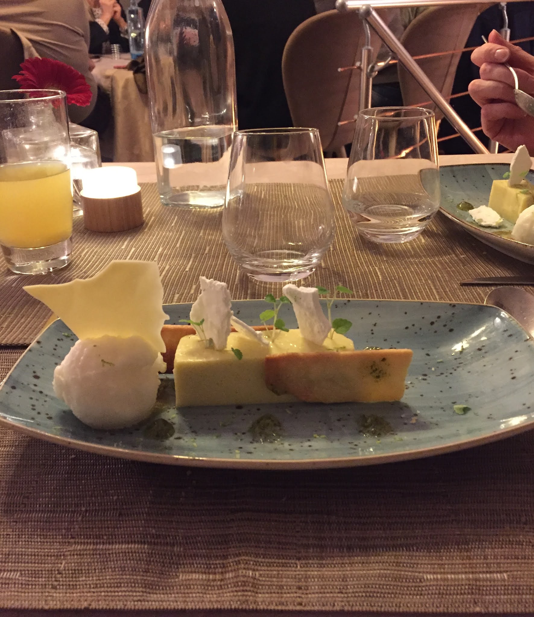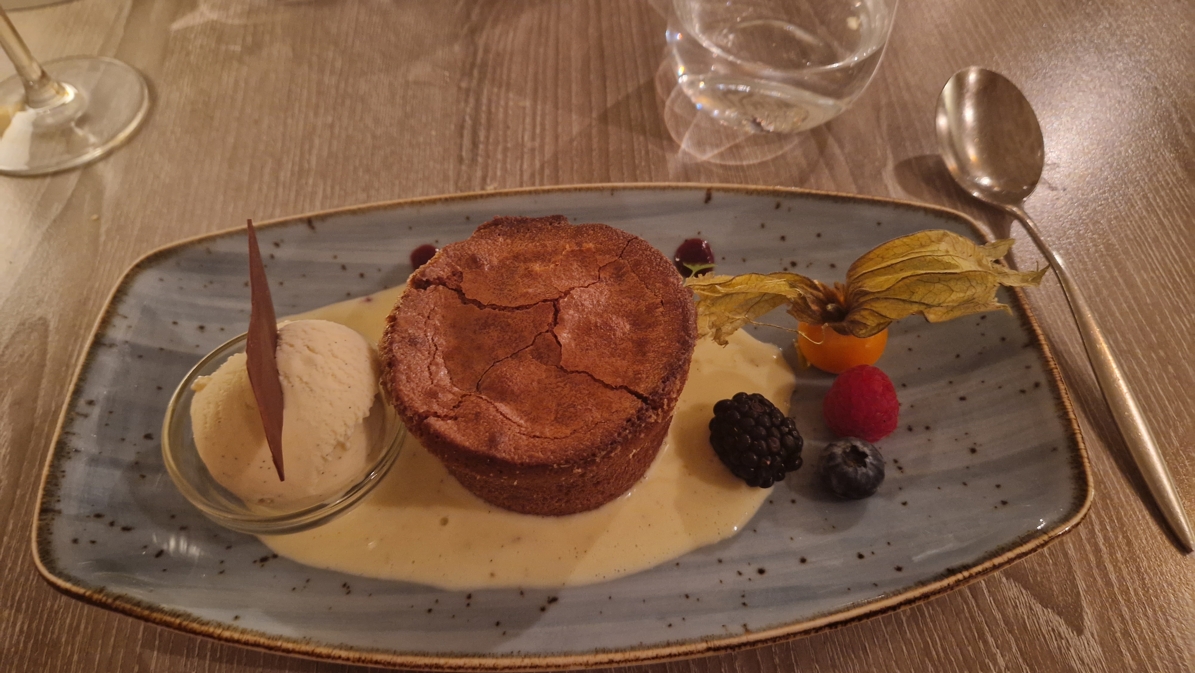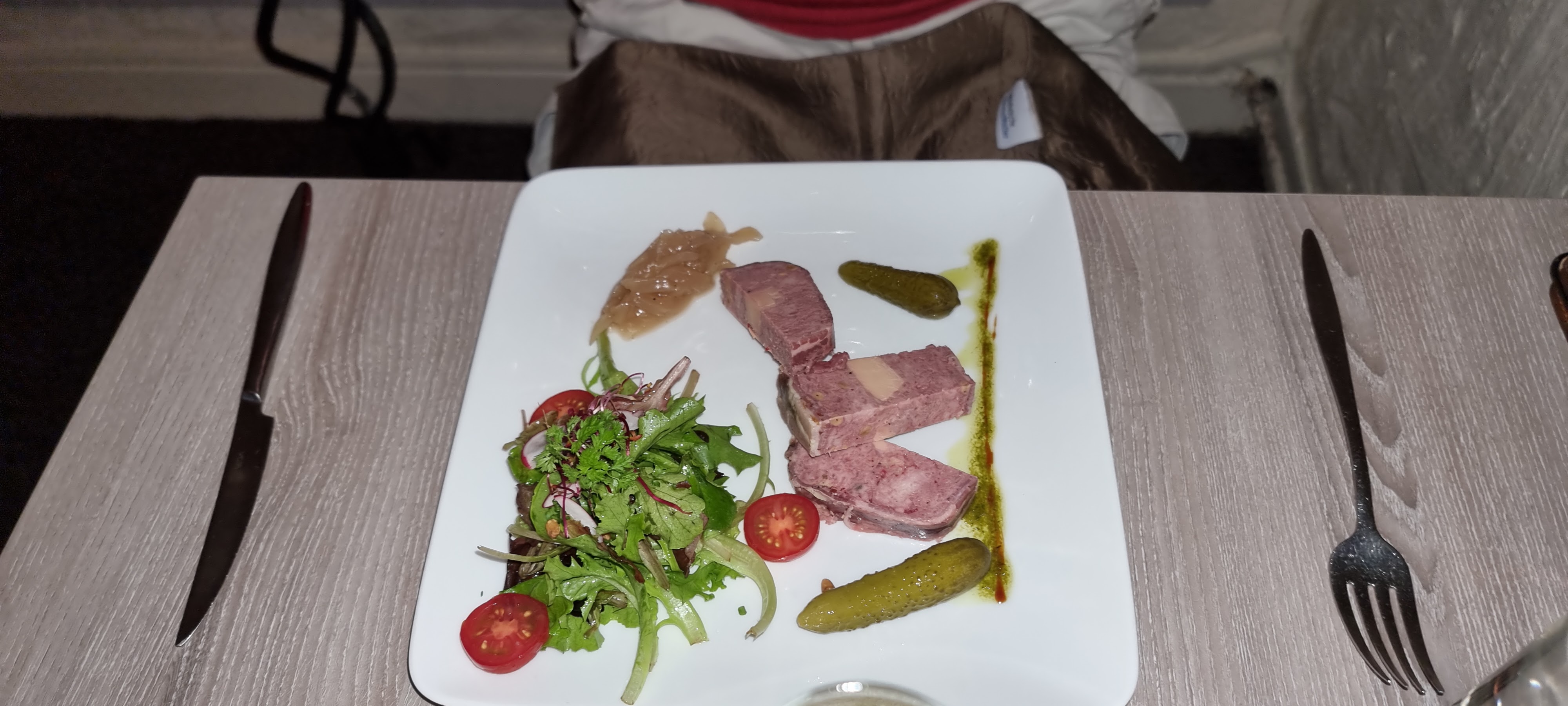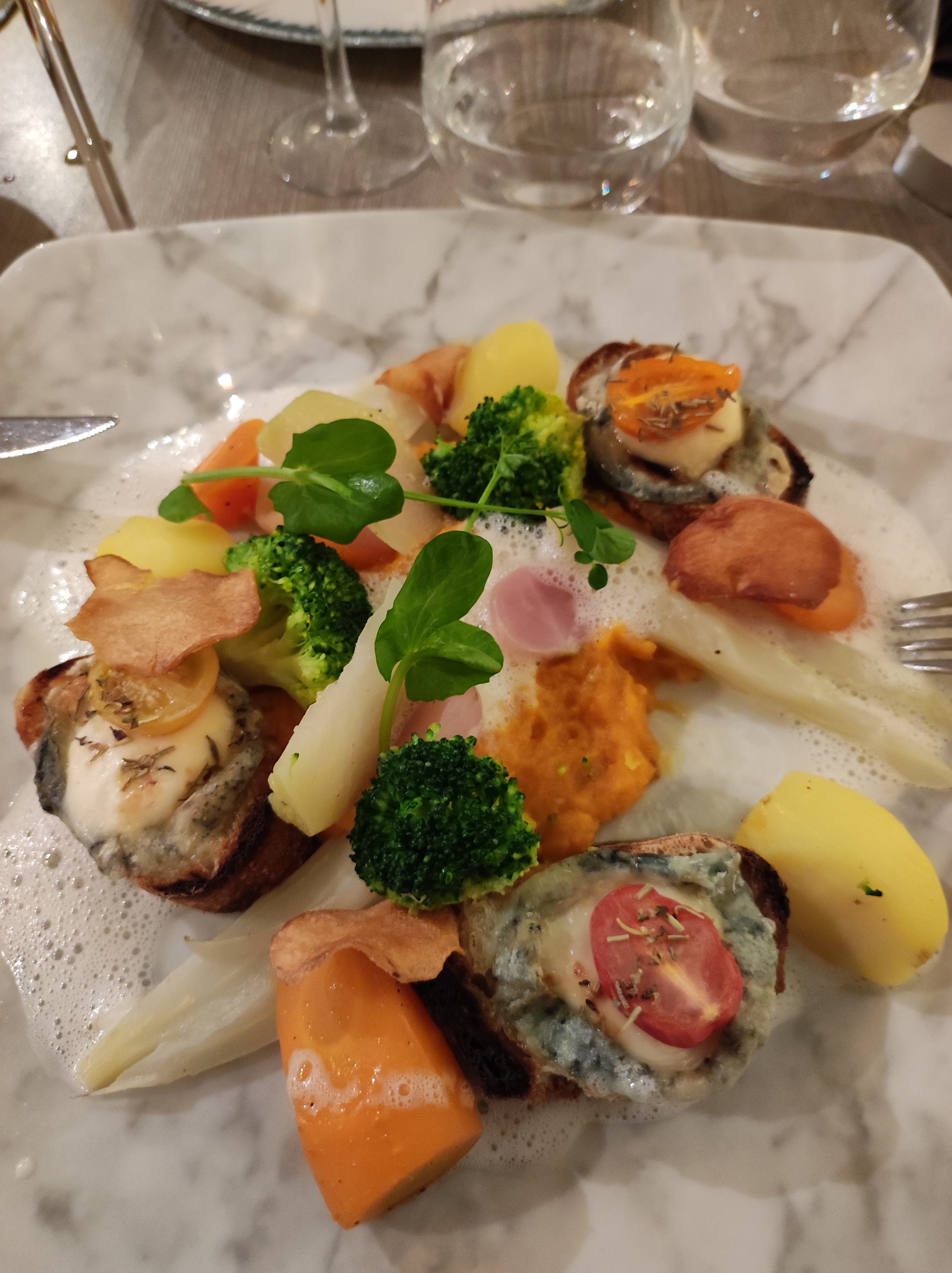 Je ne me souviens pas de l’entrée, Le plat était basique, pas terrible Le dessert était beaucoup trop sucré Le verre de vin n’avait rien d’exceptionnel Je suis vraiment déçu , et c’est chère !