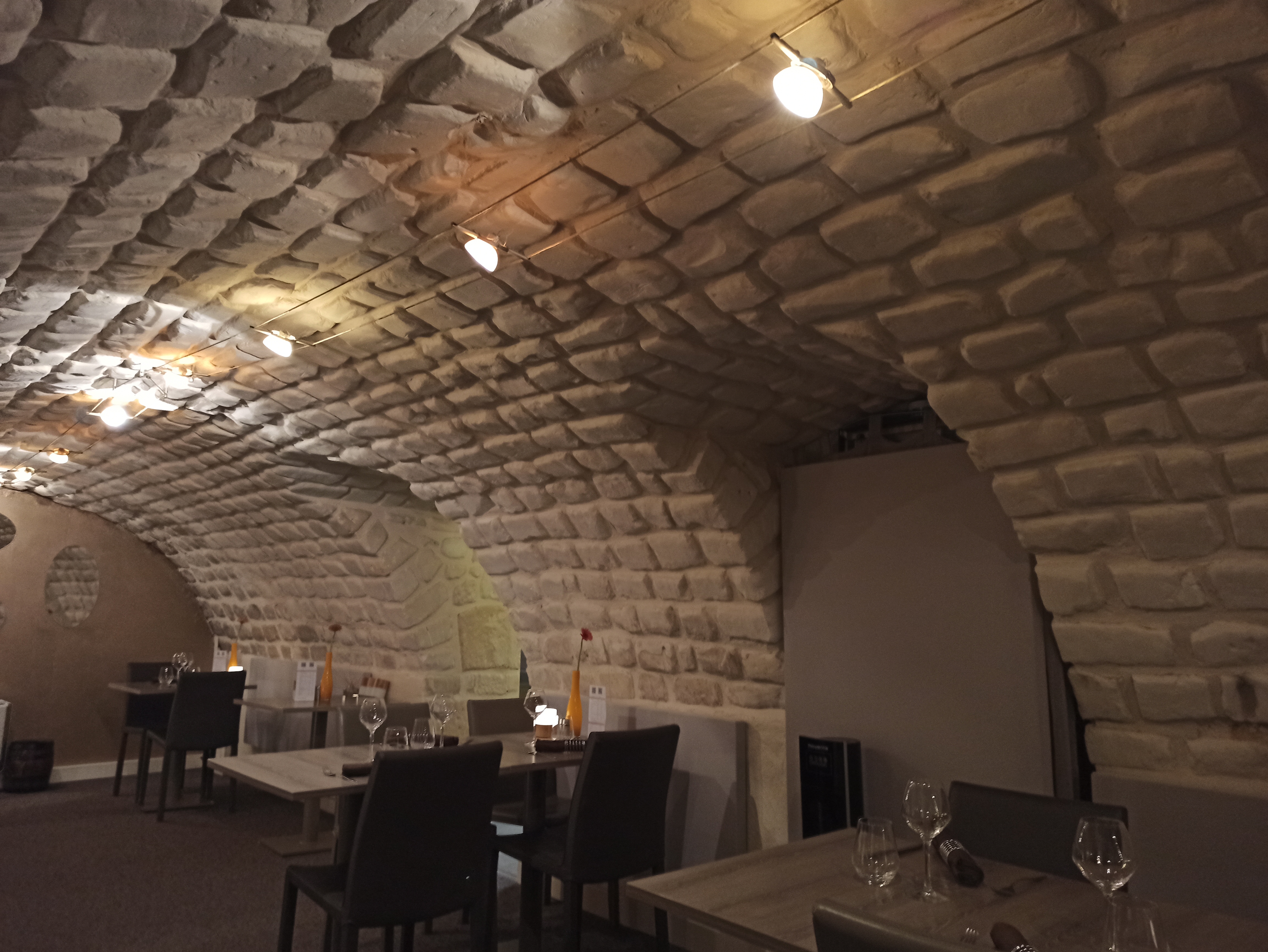 La salle voûtée est très jolie et agréable. Le service et agréable et rapide. Le repas était délicieux et très bien présenté. Je recommande.