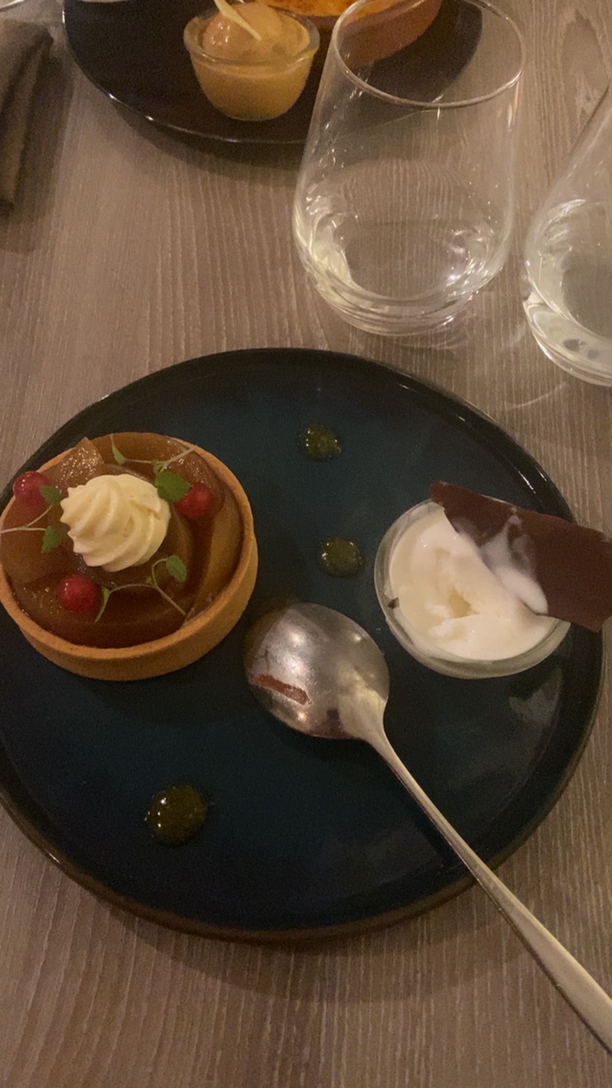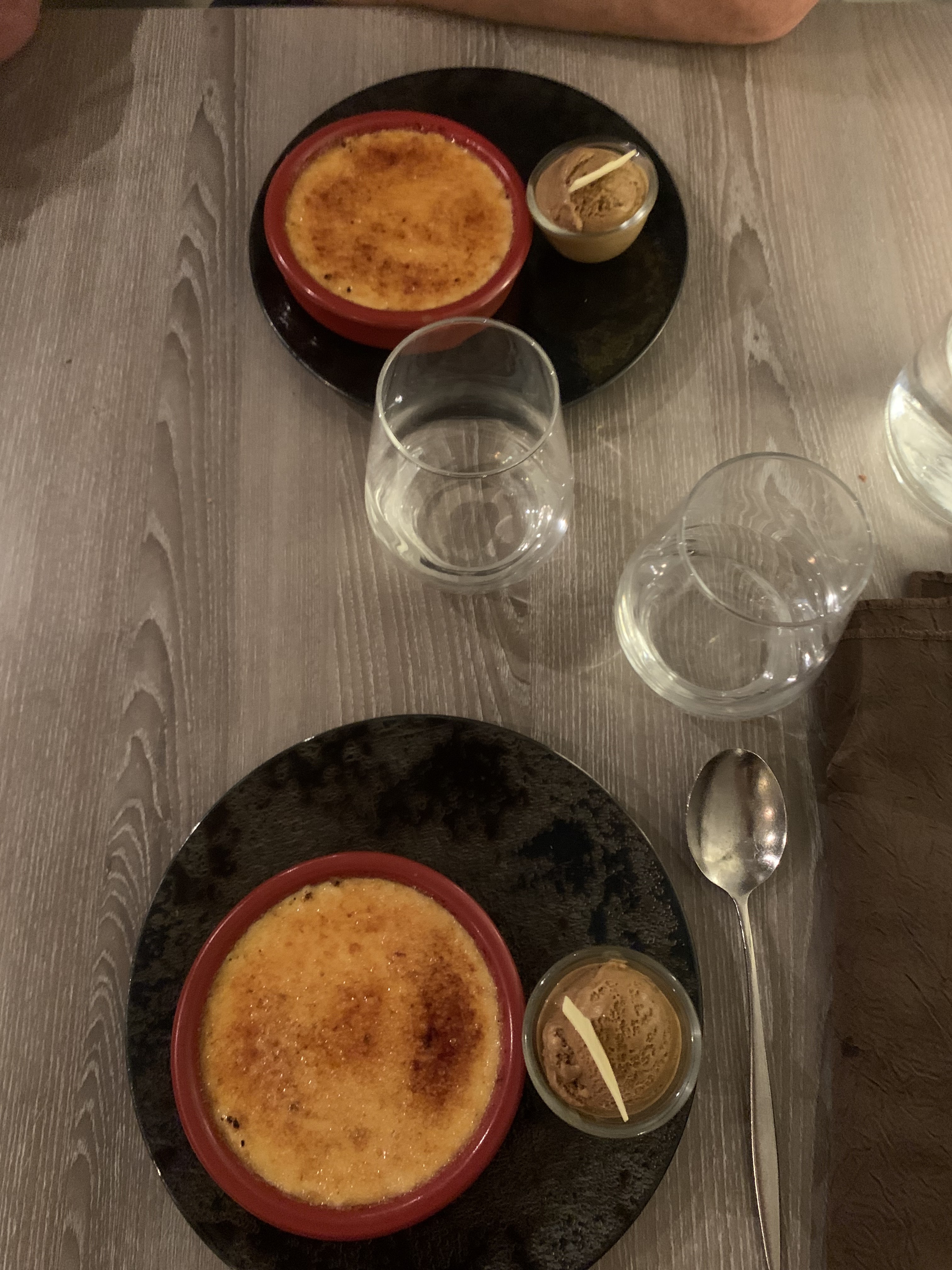 Acceuil chaleureux, tapenade offerte ! Par contre la forte impression que nos apéritifs étaient coupés à l'eau.. Saveurs appréciables, desserts à la hauteur