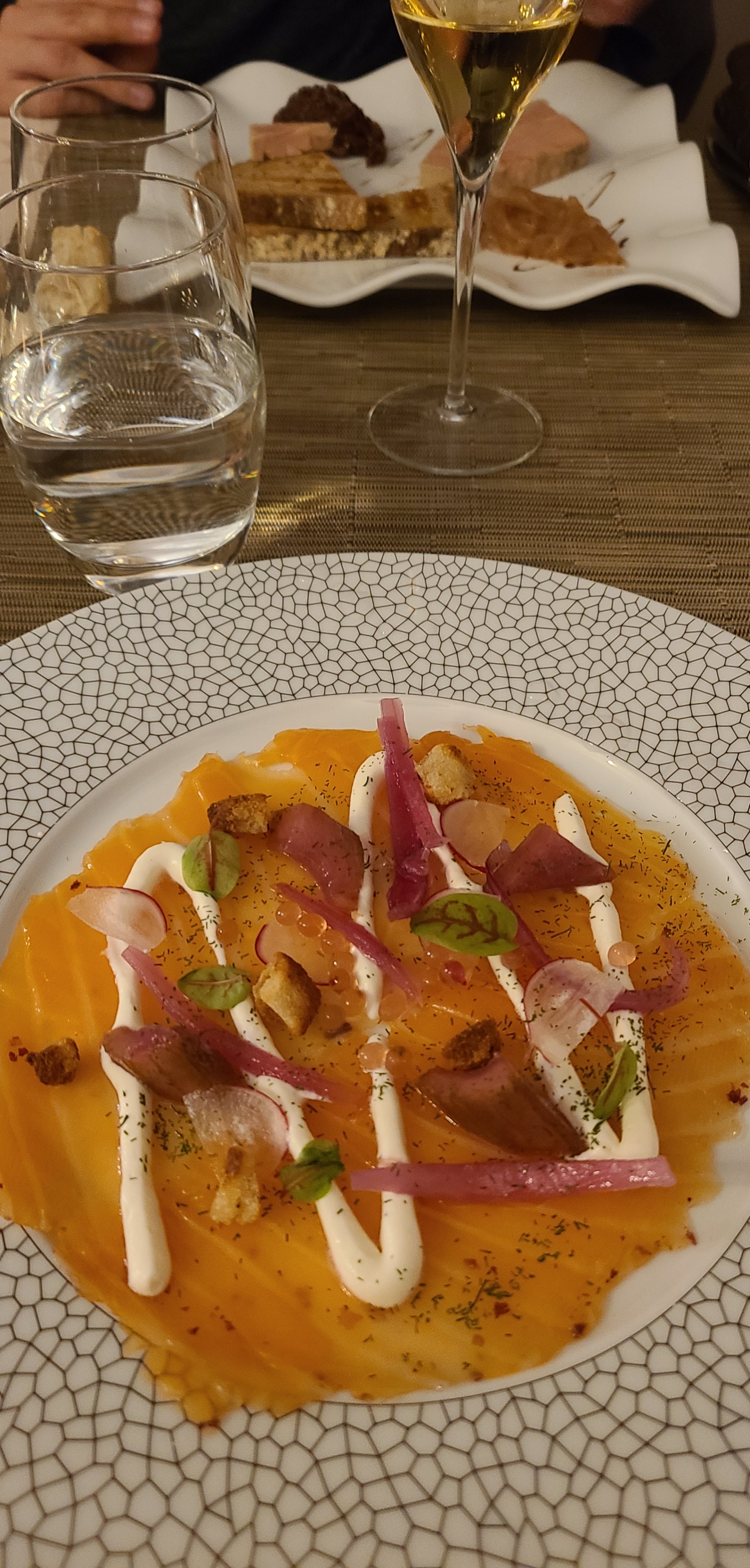 J'ai réservé une table ici en fonction des critiques. Cela n’a pas du tout déçu. Le personnel était super sympa et accueillant. En raison du COVID - 19, le menu se faisait via un code QR sur votre téléphone, ce que je pensais être bien mieux que de faire circuler des menus et de les effacer entre les deux. Le menu est d'un bon rapport qualité-prix mais je suis allé à la carte car j'avais déjà vérifié ce que je voulais. Cela n’a pas déçu : bien présenté, bien cuisiné et délicieux. Le vin au verre était très bon - et il y a bien sûr aussi le champagne. Cet endroit est fermement sur ma liste enregistrée pour la prochaine fois.