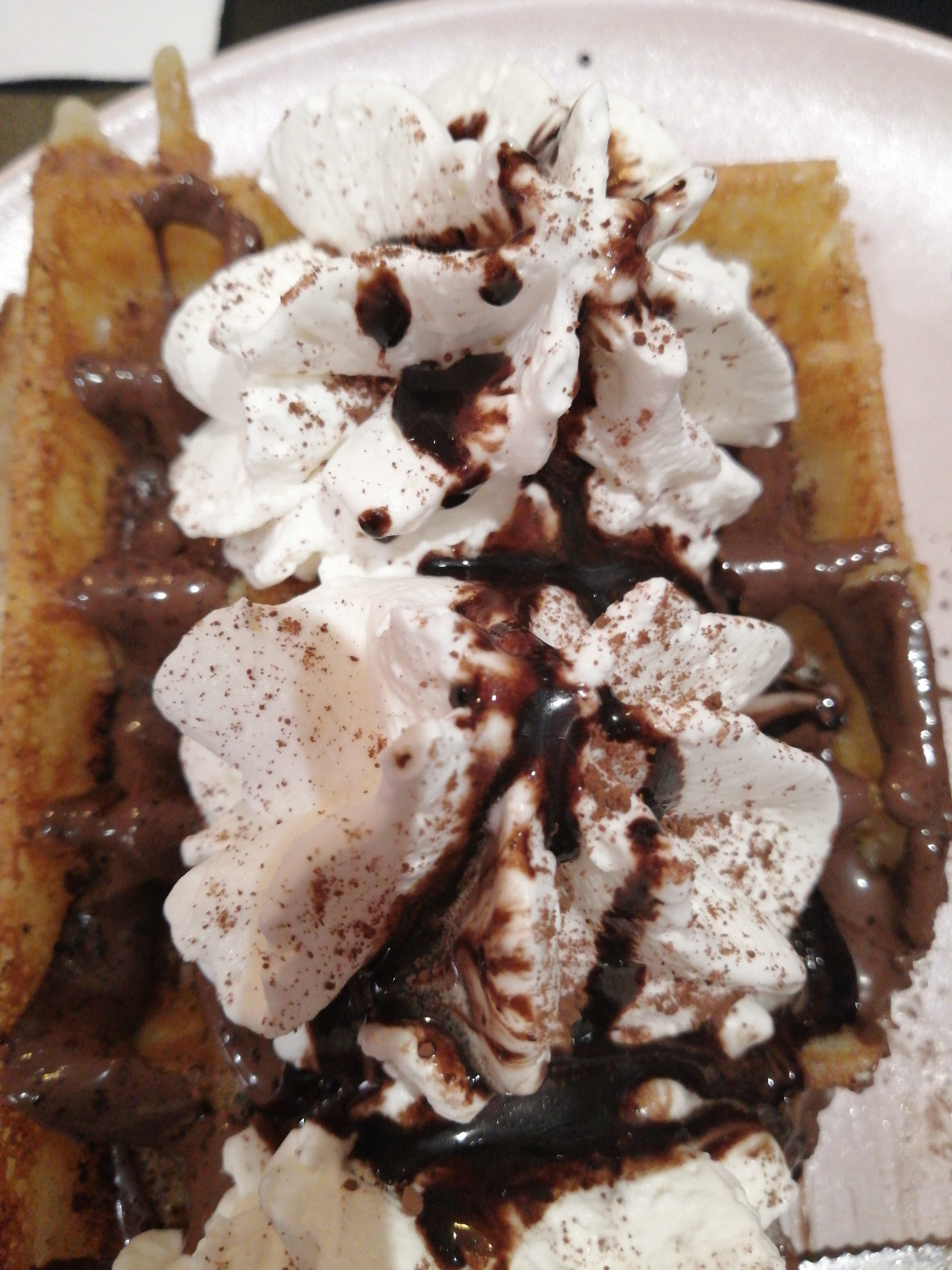 Pas terrible, du moins pour les gaufres qui sont plus que ratées. La cuisson de la pâte est mauvaise ce qui rend la gaufre complètement molle, le chocolat au lait fait maison est vraiment médiocre on sent plus le goût du lait que du chocolat. Je déconseille pour ce qui est des gaufres.