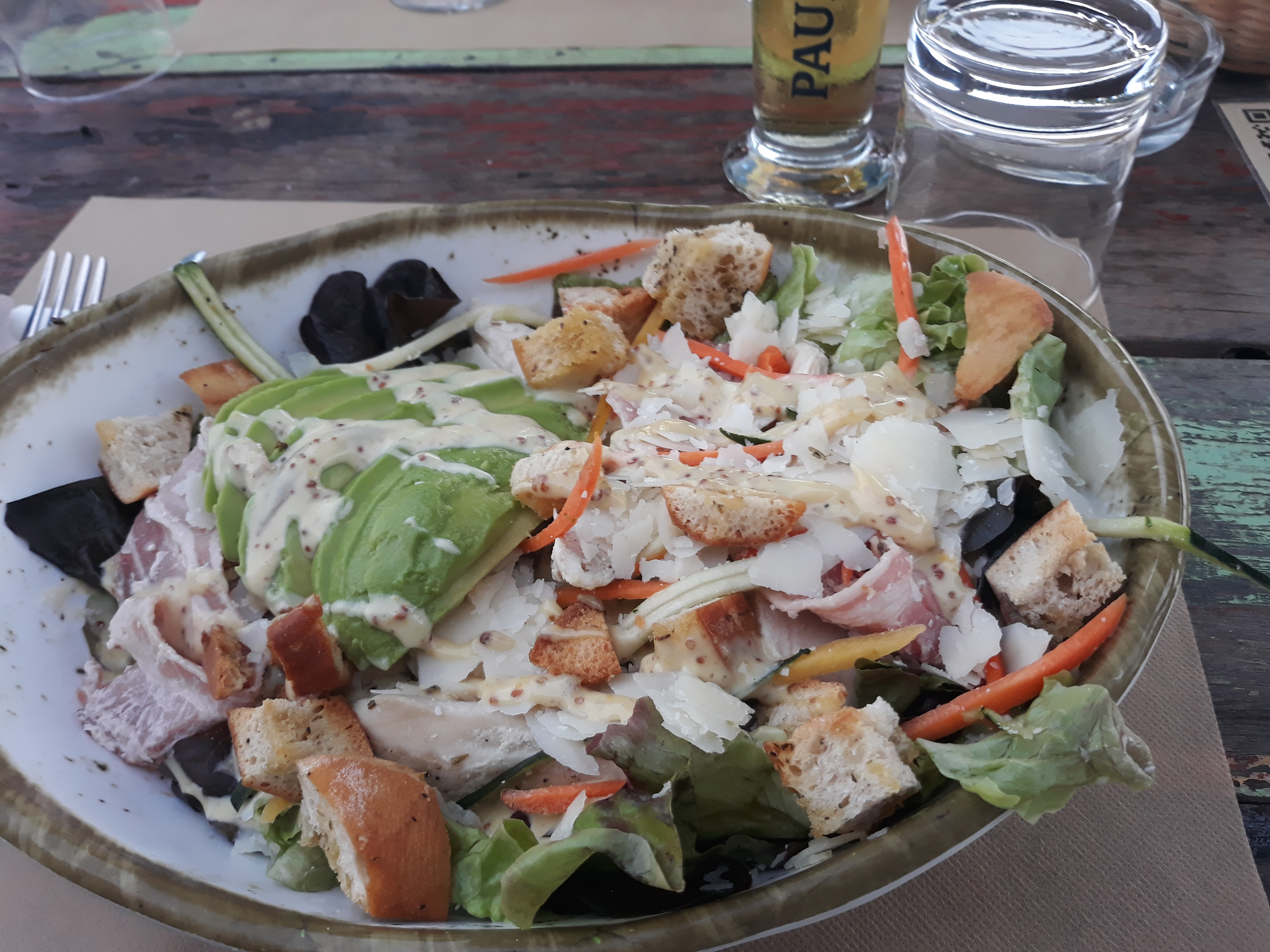 Vu superbe ! Terrasse chouette avec serveur super sympa Salade vraiment bonne