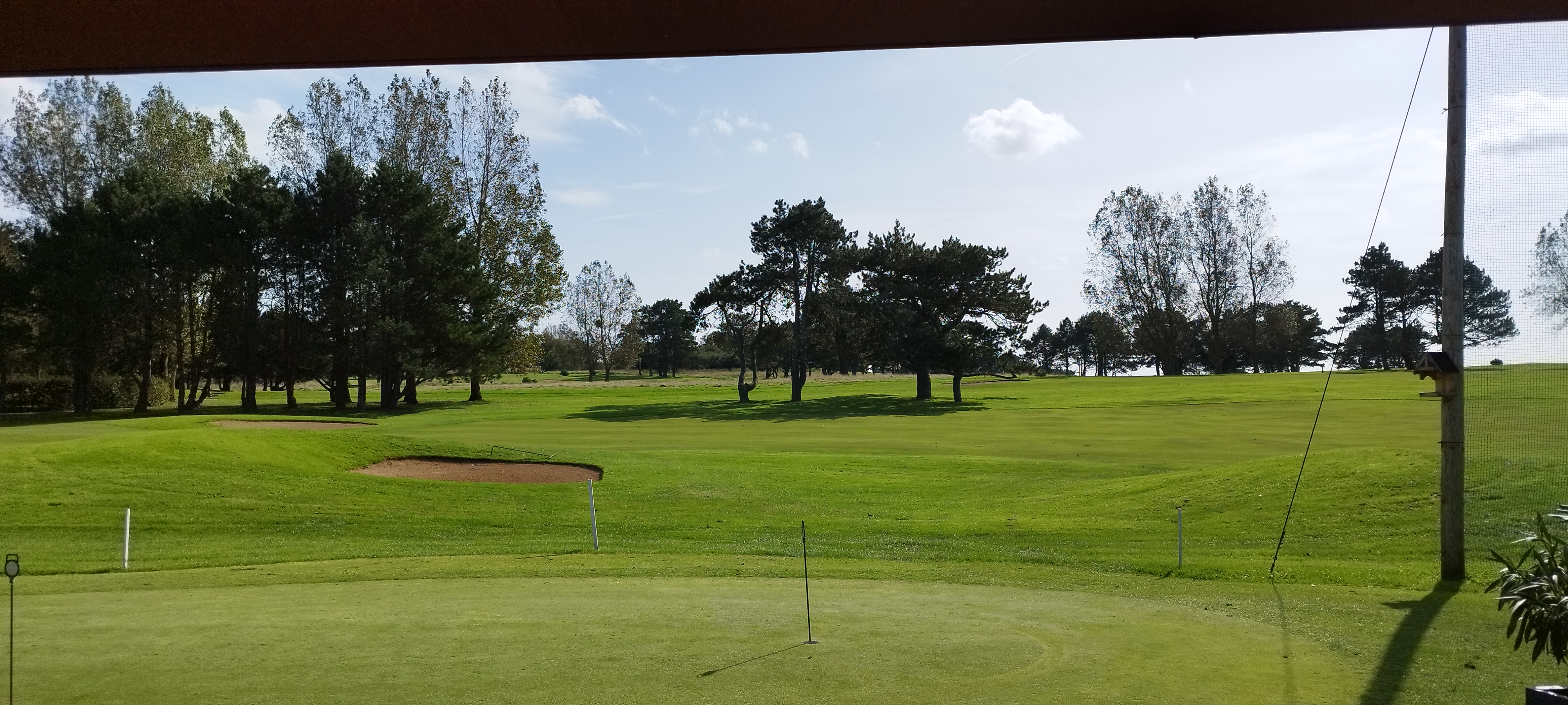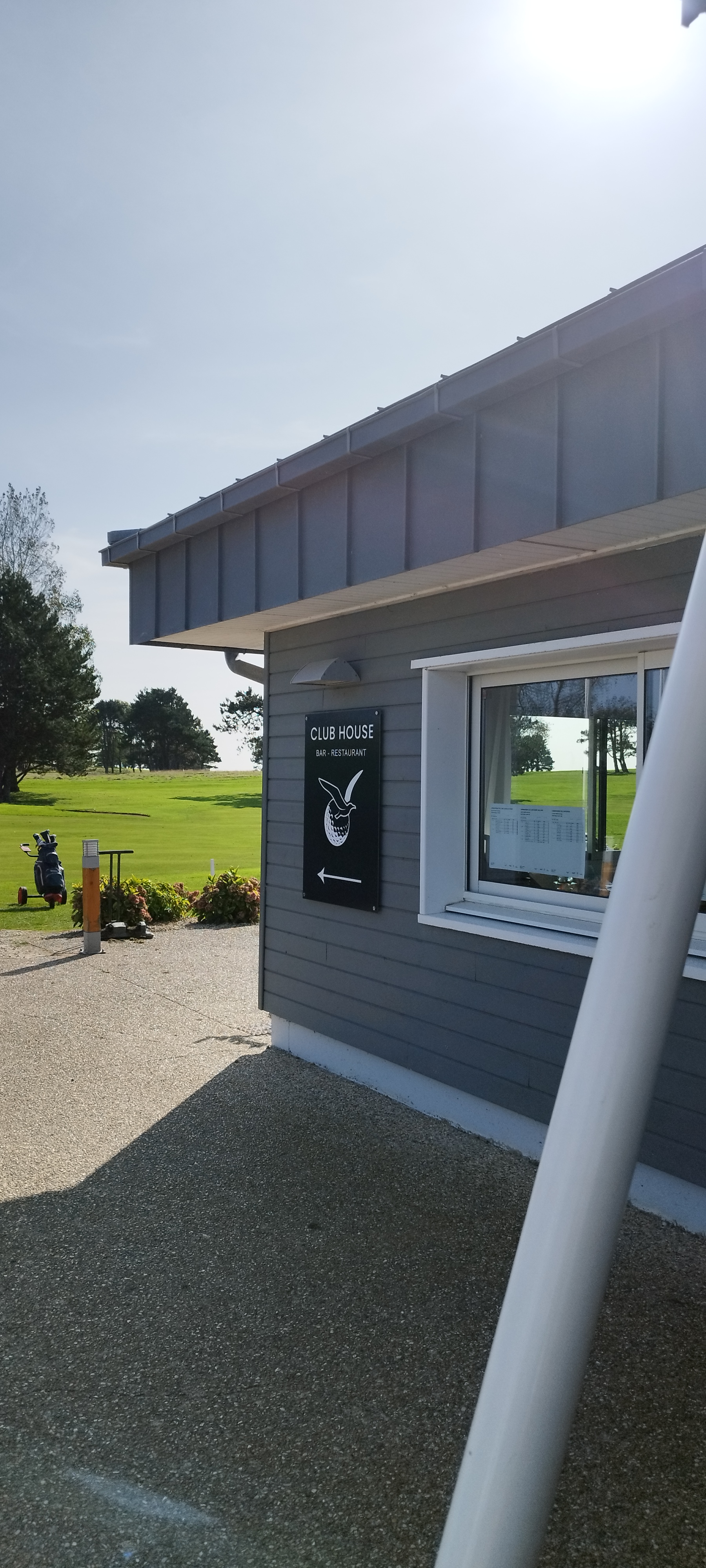 Vue sur le golf depuis la salle et la mer en arrivant sur le parking. Très bon accueil.