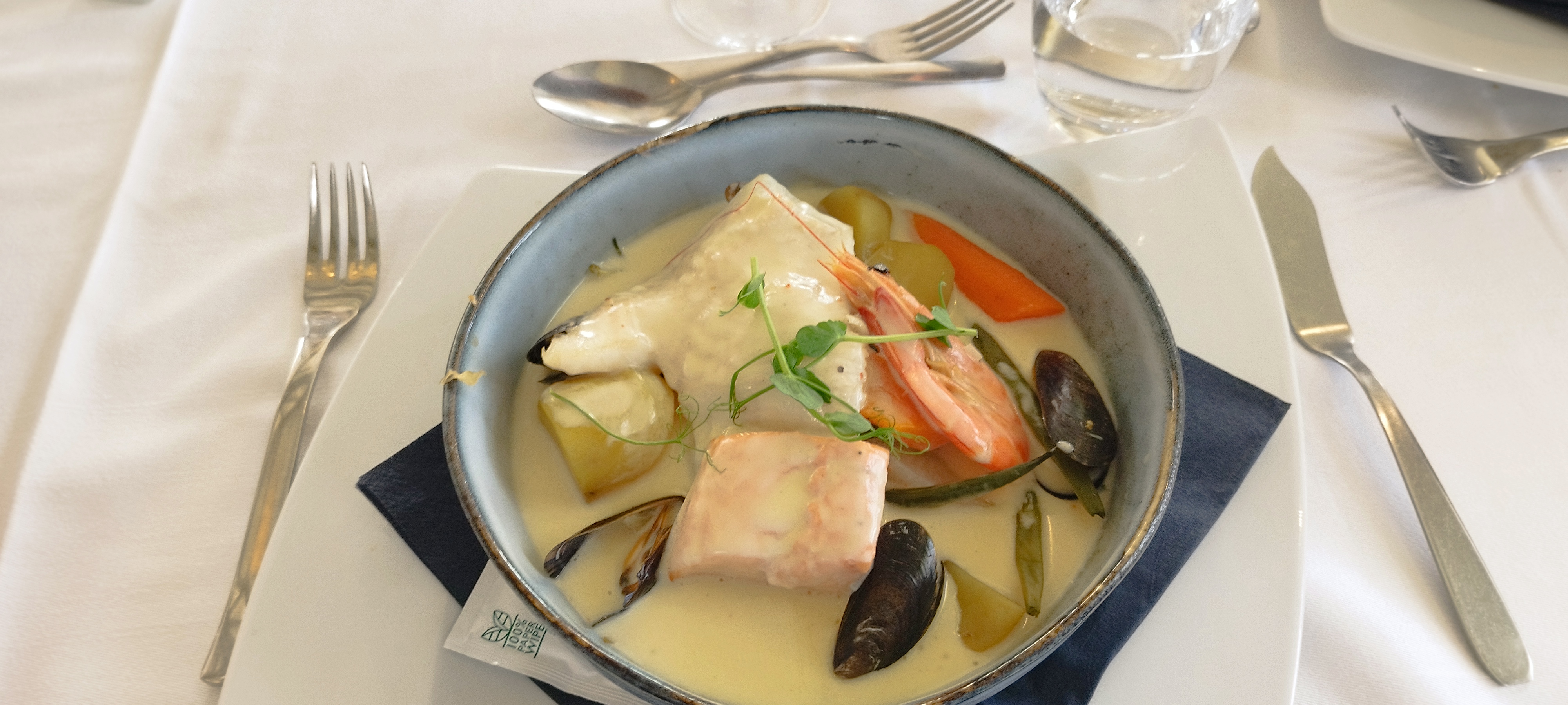 Un beau cadre, un service discret et rapide. Une cuisine fine, mais peut-être exagérément salée !