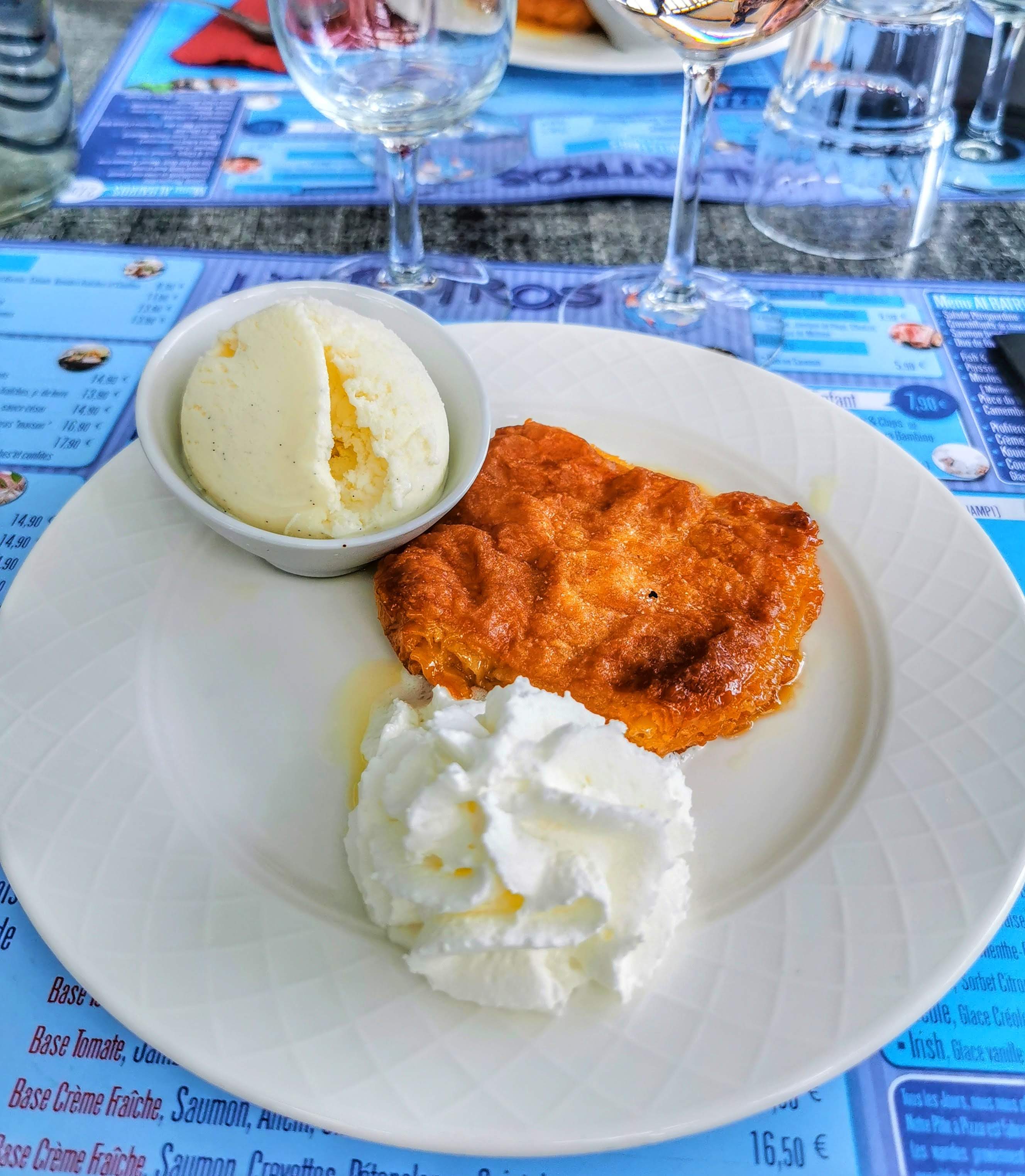 Super service et au top avec les enfants (2 et 4ans, amis parents allez y les yeux fermés) Concernant le repas Camembert rôti au top. Moule marinière pas à mon goût, je ne reviendrai pas pour ça, mais pour le reste oui. Et super les glaces pour les après midi plage 👌🤗 Merci à toute l'equipe
