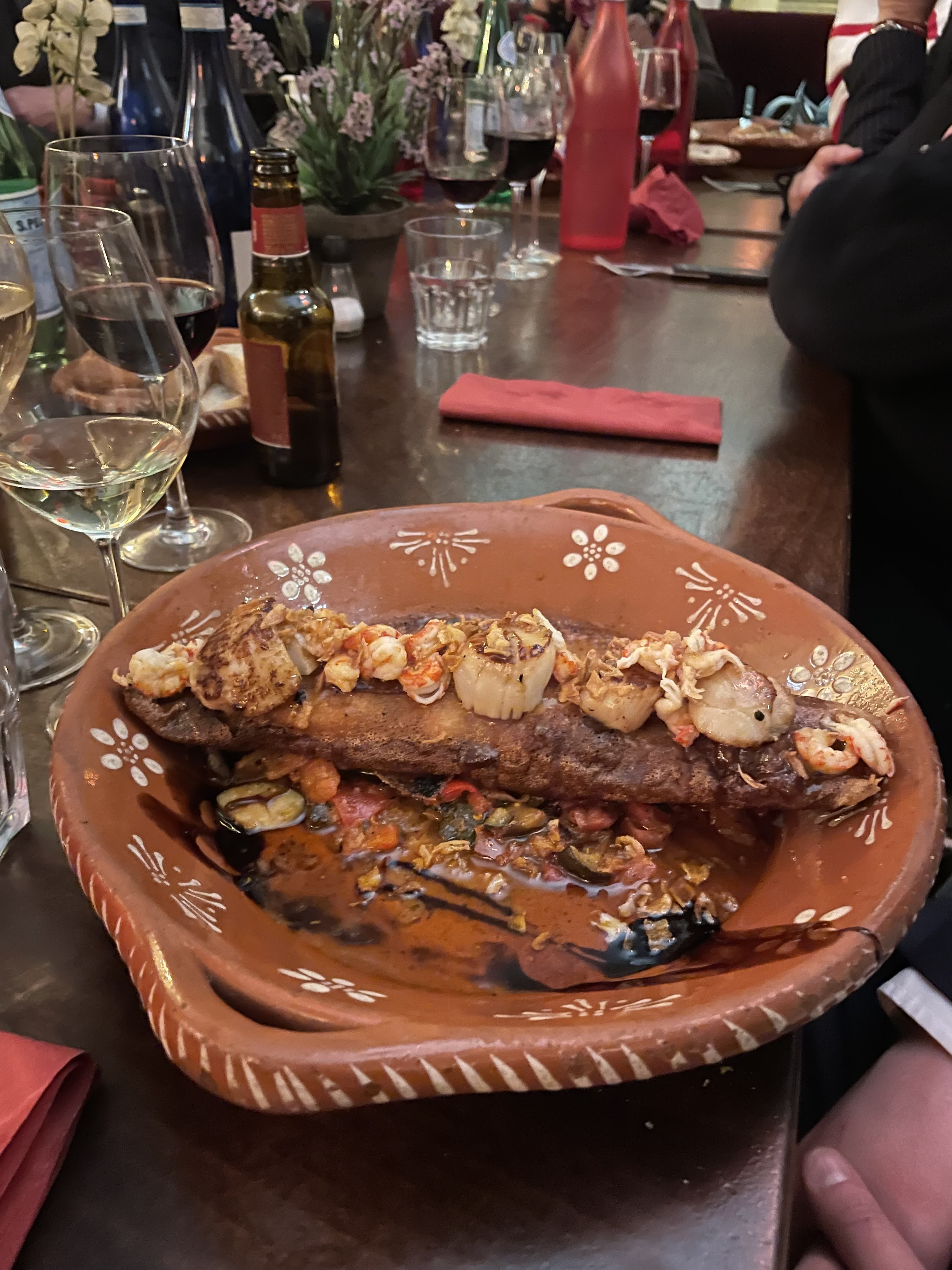 Nous avons passé un très bon moment dans ce restaurant, beaucoup d'entrées et de plats me faisaient envie, le plus dur à été de choisir ! Les ravioles au chorizo et la pastilla de canard étaient excellentes, j'ai savouré chaque bouchée, assiettes et service généreux, amuse-bouche (rillettes de sardine super bonnes !) et digestif (rhum gingembre ananas délicieux) offerts par la maison avec le sourire, tellement rare à Paris ! Je rêve d'y revenir pour goûter le reste de l'allechant menu !