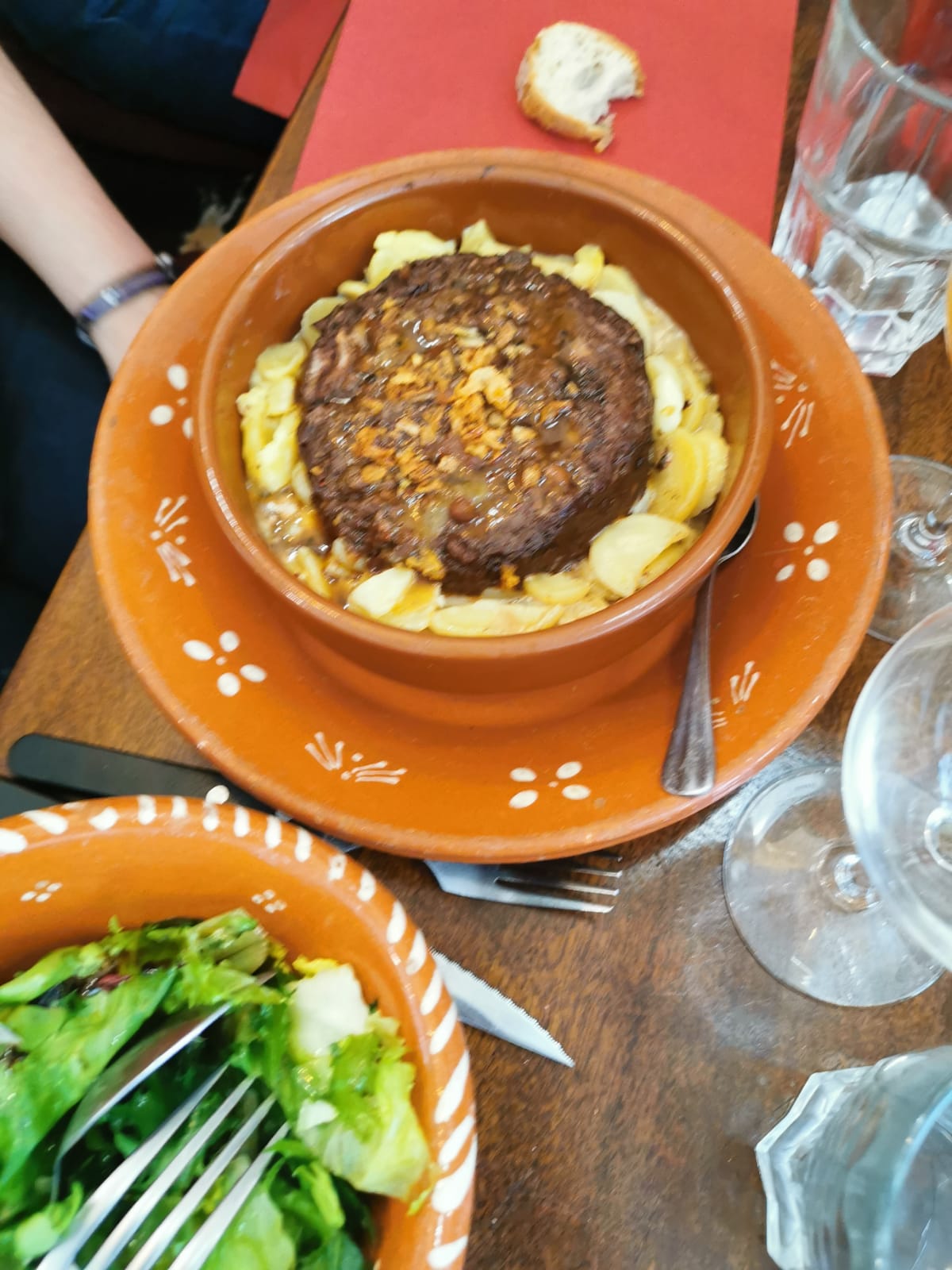 Déjeuner ce midi. Que s'est-il passé ? J'avais l'habitude, avant covid, de manger ici et les plats étaient délicieux et copieux. Ils sont tjs copieux mais... La qualité n'est plus là, hélas. Le plat choisi au saucisson lyonnais ne passe pas (réellement) : trop de sauce avec les lentilles (dont on ne sent plus le goût), trop de foie gras (4 tranches) mais de piètre saveur... Le saucisson quelconque. Le plat avec saumon et épinard fade (épinard surgelé ?) Peut-être faut-il faire moins mais mieux (privilégier la qualité à la quantité pour retrouver des papilles guillerettes) et augmenter le prix de qqs €. La pastilla était convenable ; le feuilleté cantal, écrevisses, St-Jacques à été apprécié. Le service est tjs sympathique, le vin au verre généreux, les petites attentions (tartines apéritives, douceurs sucrées, limoncello...) sont tjs là mais... Auparavant, c'était la promesse d'un moment chaleureux et gourmand. J'ai conseillé ce resto à de nombreuses reprises. Le referais-je aujourd'hui ? Je reviendrai sans doute pour voir si c'était un jour sans. Aujourd'hui, le plaisir n'y était pas.