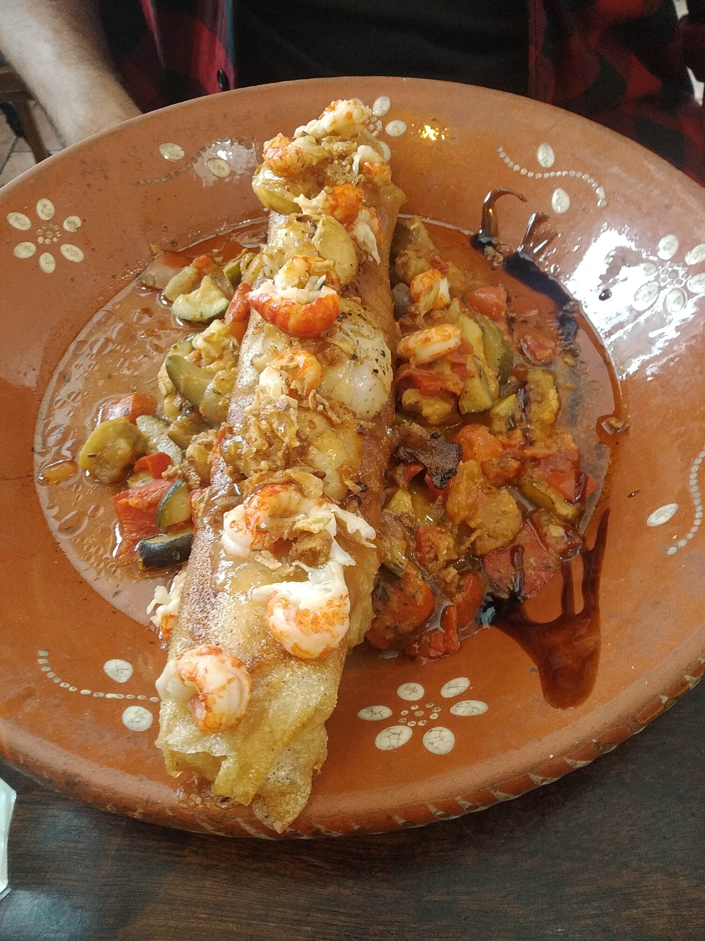 Petit espace, mais chaleureux et confortable, un seul serviteur mais un gentleman adorable, l'arôme de la bastilla de config... (lié au canard) est tellement charmant. Les cuisines françaises traditionnelles authentiques servies ici sont tout simplement splendides. Je ne peux pas croire que ce soit si inconnu. Cld a été facilement l'un des meilleurs de la région !