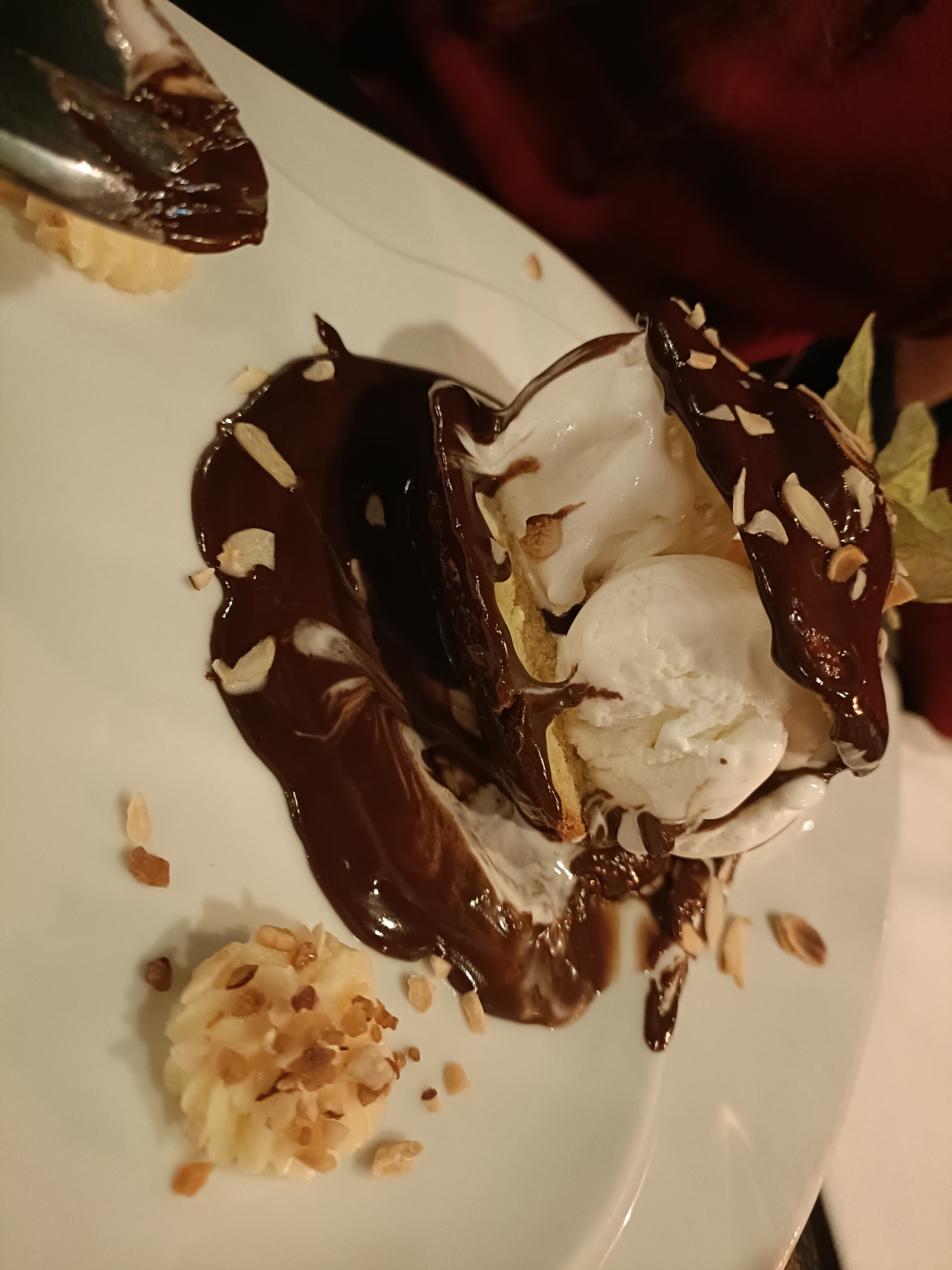 Les gens se garent n'importe comment sur le parking. Obligé d'aller déranger les serveurs pour leur demander de trouver les gens mal garés car on ne pouvait pas sortir. Verre d'apero débarrassé alors que je n'avais pas fini. (Je ne m'en suis rendu compte que après car une autre personne était venue apporter les plats en même temps) Saint Jacques bonnes mais une pas assez cuite. La salade fromagère etait très bonnes. Les desserts étaient bons sauf quelques gourmandises du café gourmand.