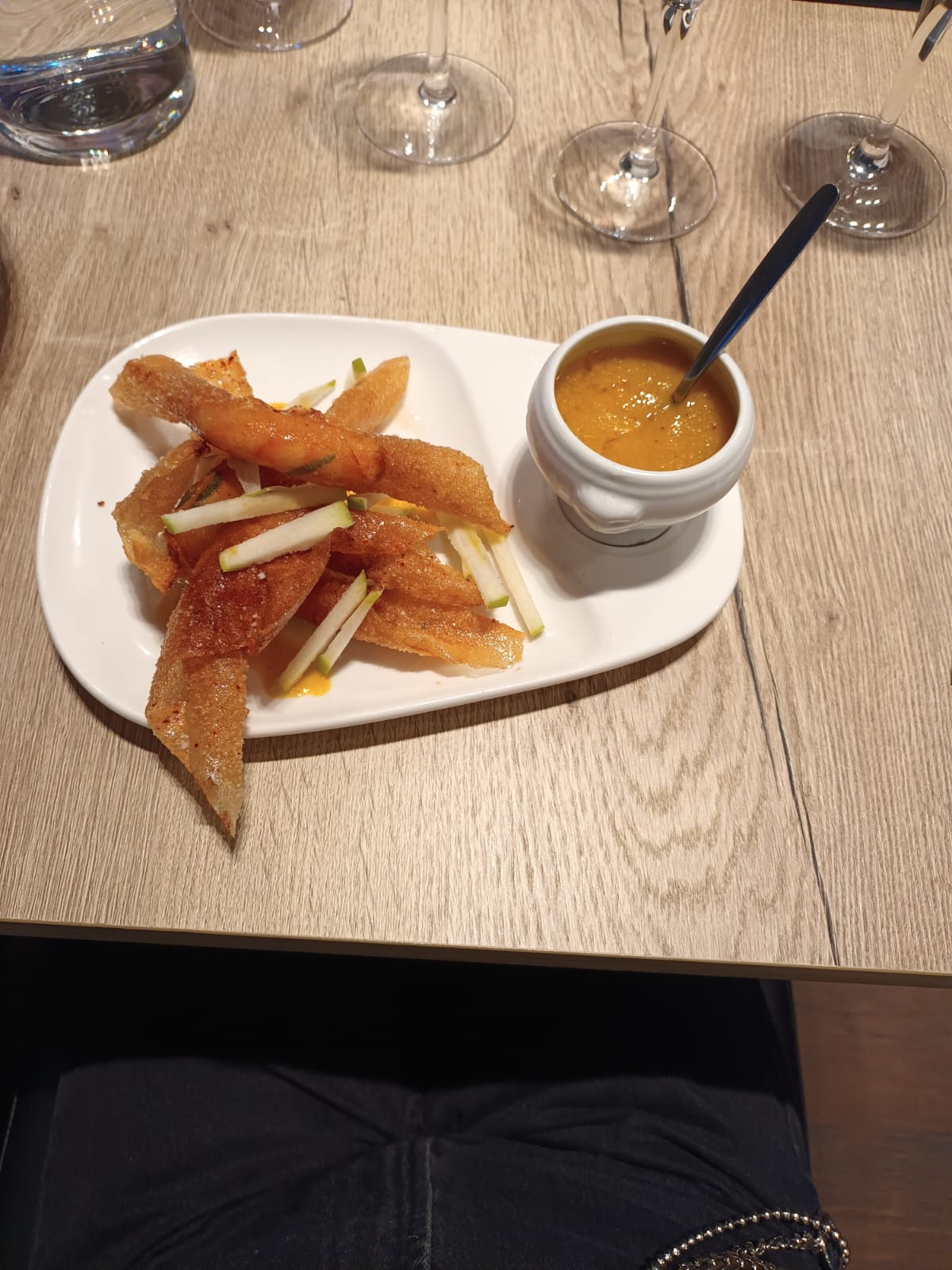 Très belle découverte. Nous étions une table de 4. Une jeune serveuse très jolie mais surtout très gentille, arrangeante et de bons conseils. Cuisine excellente, une agréable surprise, très beau dressage, cuisson impeccable, un pur régal pour les yeux et les papilles. Seul bémol, mon plat, le suprême de poulet en croûte de noisettes était annoncé avec des légumes et des gnocchis… Or, je n’ai eu que 2 gnocchis minuscules comme nous l’avons fait remarqué à la serveuse… J’avais pris ce plat avec l’envie de manger des gnocchis… raté. Peut-être à ce moment là ne pas notifier dans le descriptif du plat « gnocchis » car on s’attend à ce qu’il y en ait, que le gnocchis soit parti prenante du plat et là ce n’est absolument pas le cas. Nous avons trouvé cela dommage mais le plat était vraiment très bon. Nous reviendrons car c’est une bonne adresse.