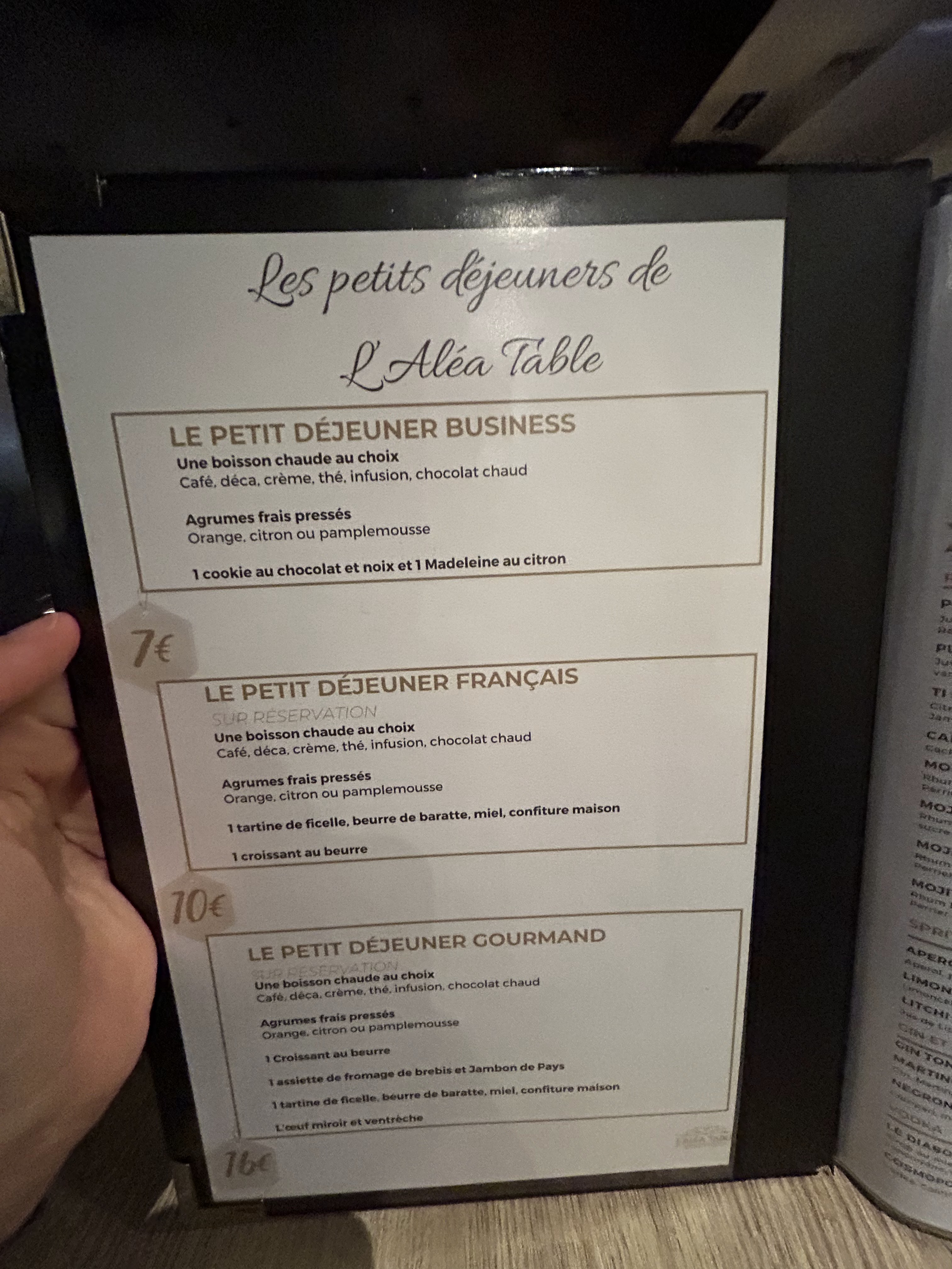 Je publie cet avis après avoir dîné trois fois à L'Aléa Table où nous avons été très bien accueillis à chaque visite par un jeune serveur, très professionnel. Les plats et les desserts sont originaux et délicieux ! La situation du restaurant très pratique car situé juste à côté d'Appart'City.