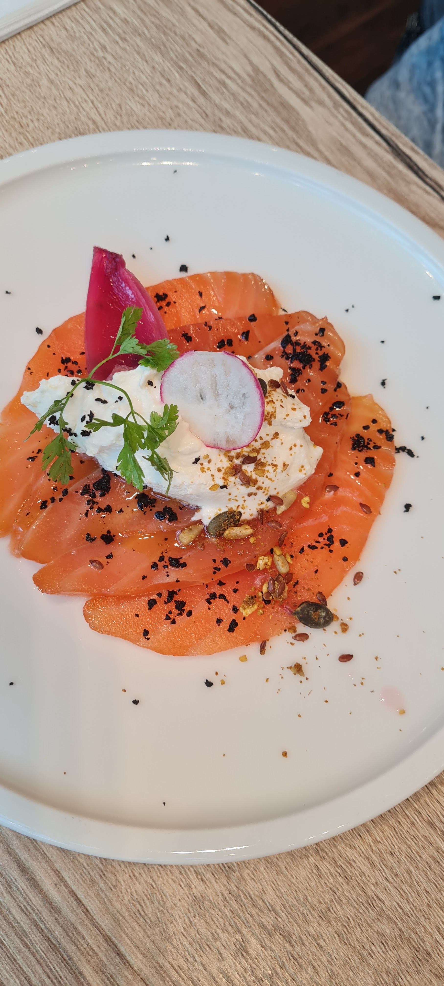 Restaurant que je recommande fortement. Nous y avons mangé un soir entre amis. L’ambiance est chaleureuse, les tables confortables. La carte est originale et les plats pensés avec des produits de saison. Tout était beau et bon. Coup de cœur pour le service qui a été fait par une jeune fille sympathique, drôle et très professionnelle. Nous y retournerons sans hésiter.