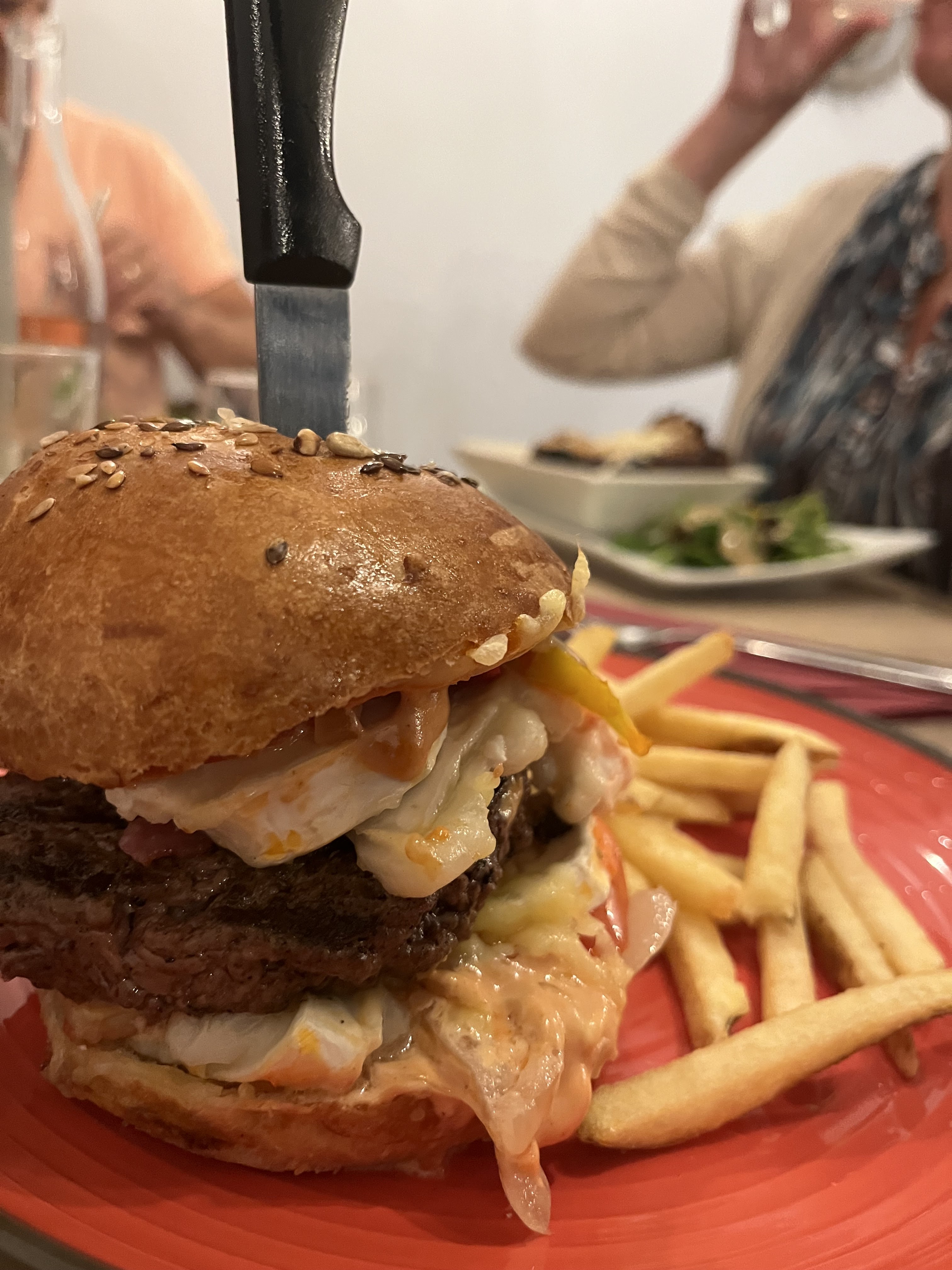 Hamburger au foie gras très bon avec de bons produits dedans parfait petit bémol l assiette de fromage j aurais préféré moins de fromage mais plus de qualité pour le prix . sinon le lieu et agréable le personnel souriant au petit soin .. nous reviendrons