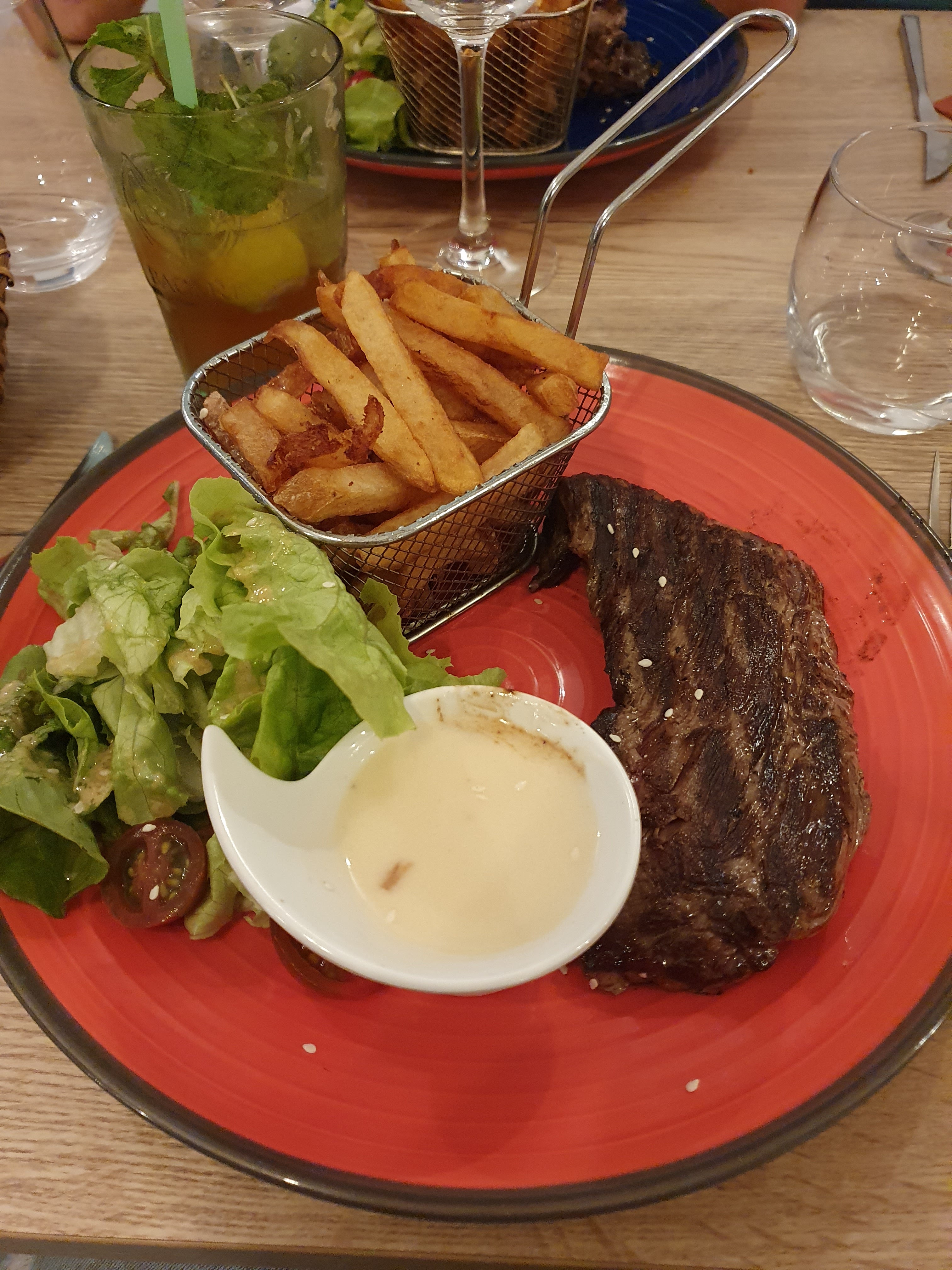 Très décevant frites surgelées de mauvaise qualité. Salade perigourdine décevante peu garnie, foie gras poêlé sur toast??? Première fois que nous voyons cela! salade de chèvre tristounette, oeuf mollet froid ...peu recommandable. Même si le personnel est agréable