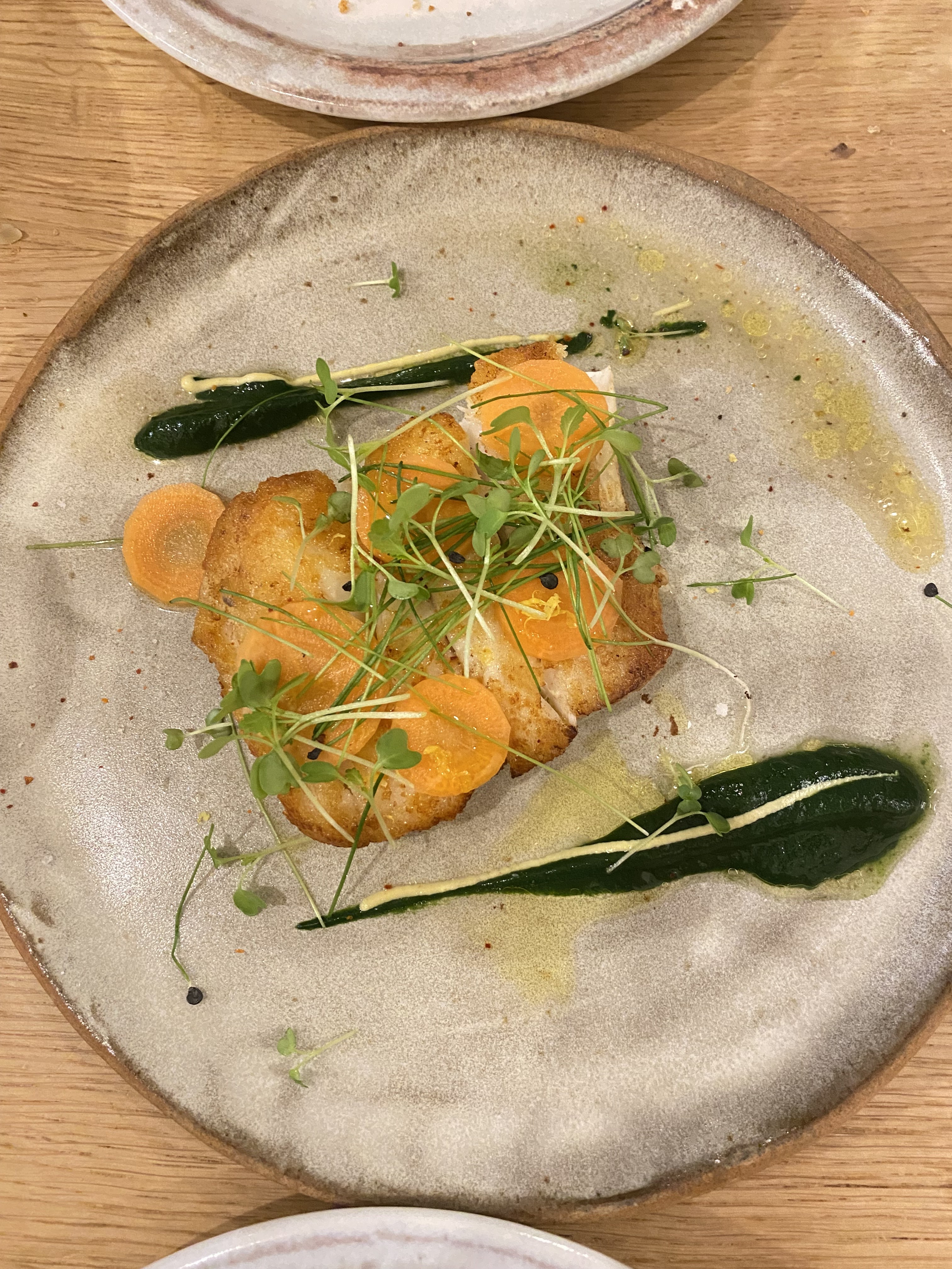 Honnêtement, c'était l'un des meilleurs restaurants que nous ayons jamais connu. C'était un hôte vraiment fantastique et nous nous sommes sentis comme chez nous. Nous avons été les premiers à arriver et les derniers à partir (désolé !!) et avons pratiquement tout mangé du menu, c'était tellement délicieux ! Ils ont également une magnifique carte des vins, donc mon meilleur conseil est d'arriver et de parcourir lentement le menu des plats, vous devez simplement essayer le plat d'aiglefin ! Merci beaucoup les gars pour ce repas vraiment inoubliable!