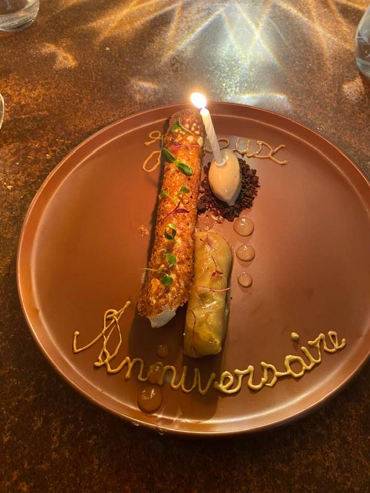 Repas surprise de mon chéri pour mes 35 ans ! Un repas fin et raffiné dans un cadre chaleureux. Les serveurs sont attentionnés et le chef fait partager sa passion au détour d'anecdotes et de pointes d'humour. Petite mention spéciale pour la bougie et le petit mot avec le dessert pour mon anniversaire .