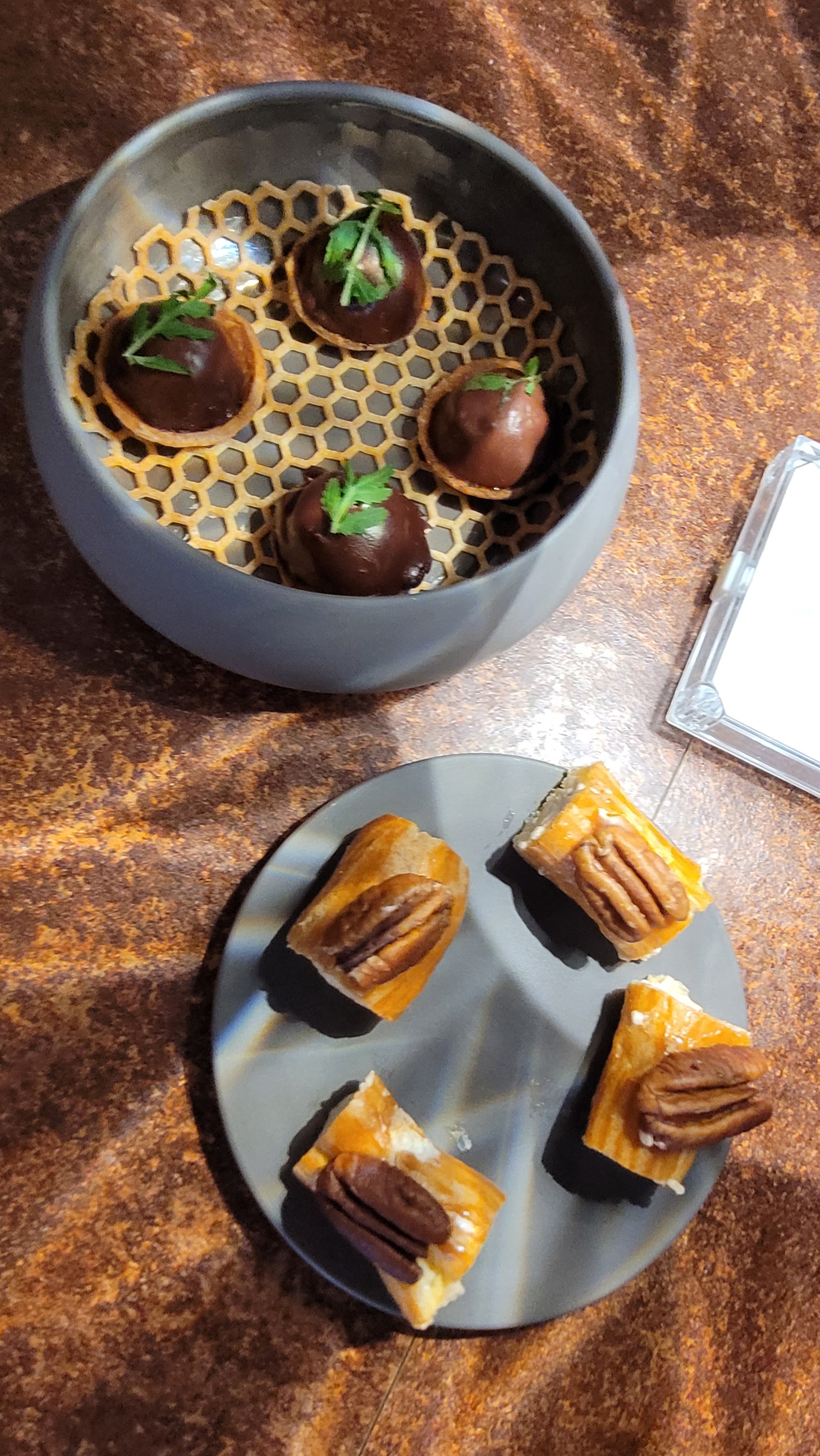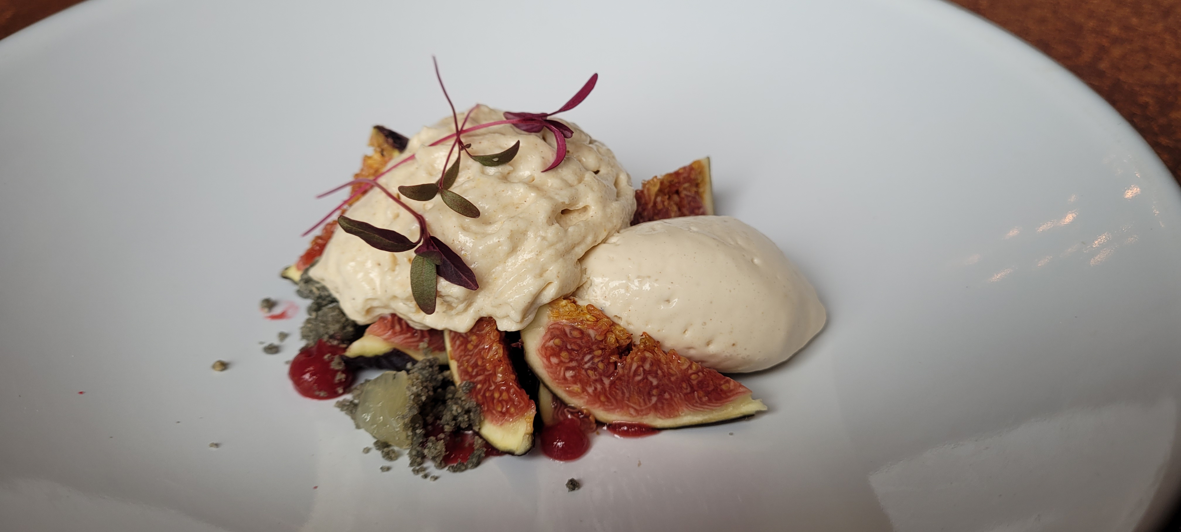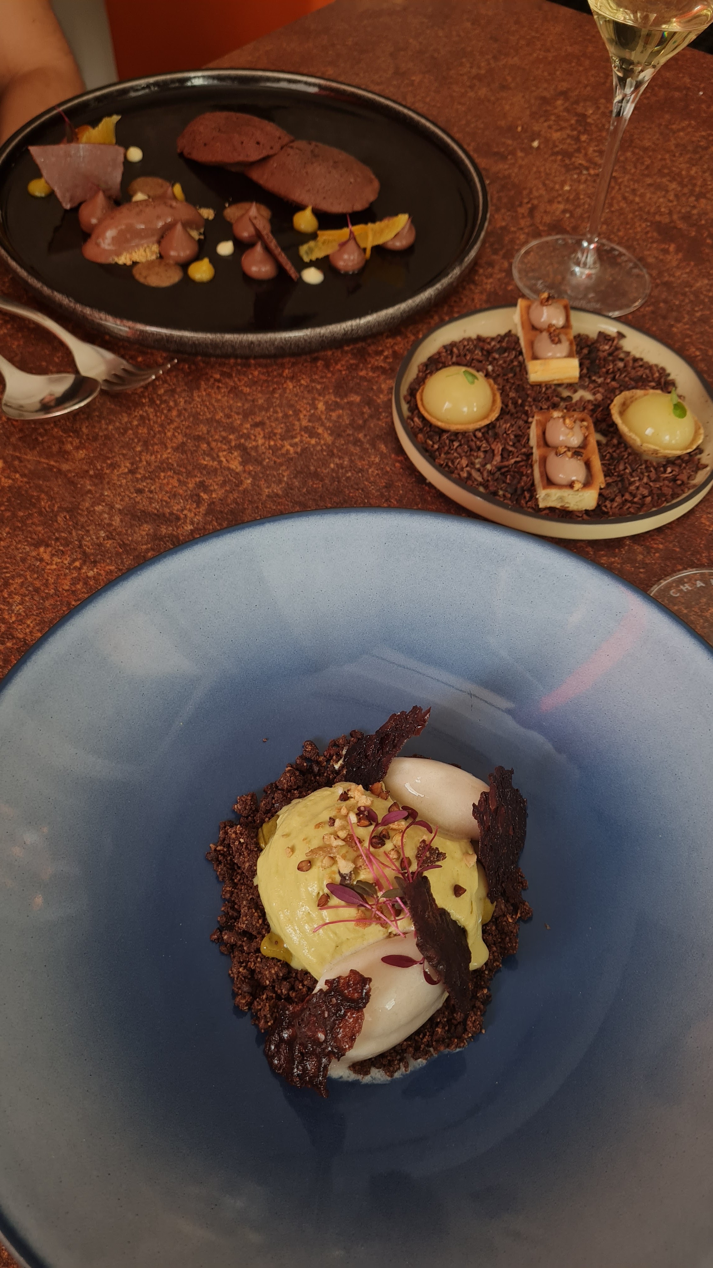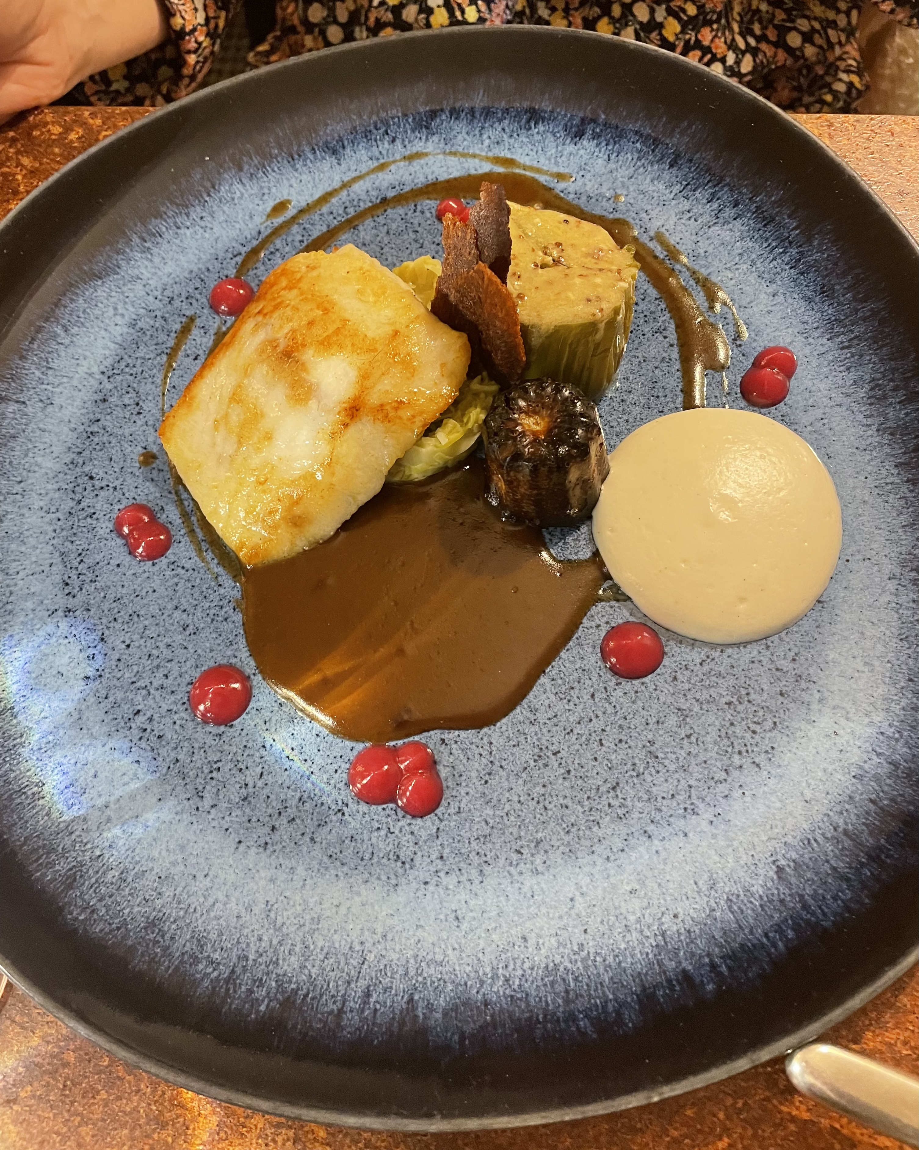 Parfait, chaleureux, fin, splendide. Pain tiède savoureux. Foie gras mi cuit et déclinaison autour de la figue parfait avec un blanc moelleux. Musique jazzy très légère. Le cèpe décliné de façon subtile comme je ne l'ai jamais vue.😀 L'omble chevalier est juste parfait. Doux avec une point d'amertume juste pour rehausser le plaisir. Le pré dessert mangue wasabi mélange saveur et textures. En désert, de la figue , du pain d'épices... un vrai bonheur. Une fin en beauté avec une très belle assiette autour du chocolat sous différentes formes, textures, températures 👍👍👍