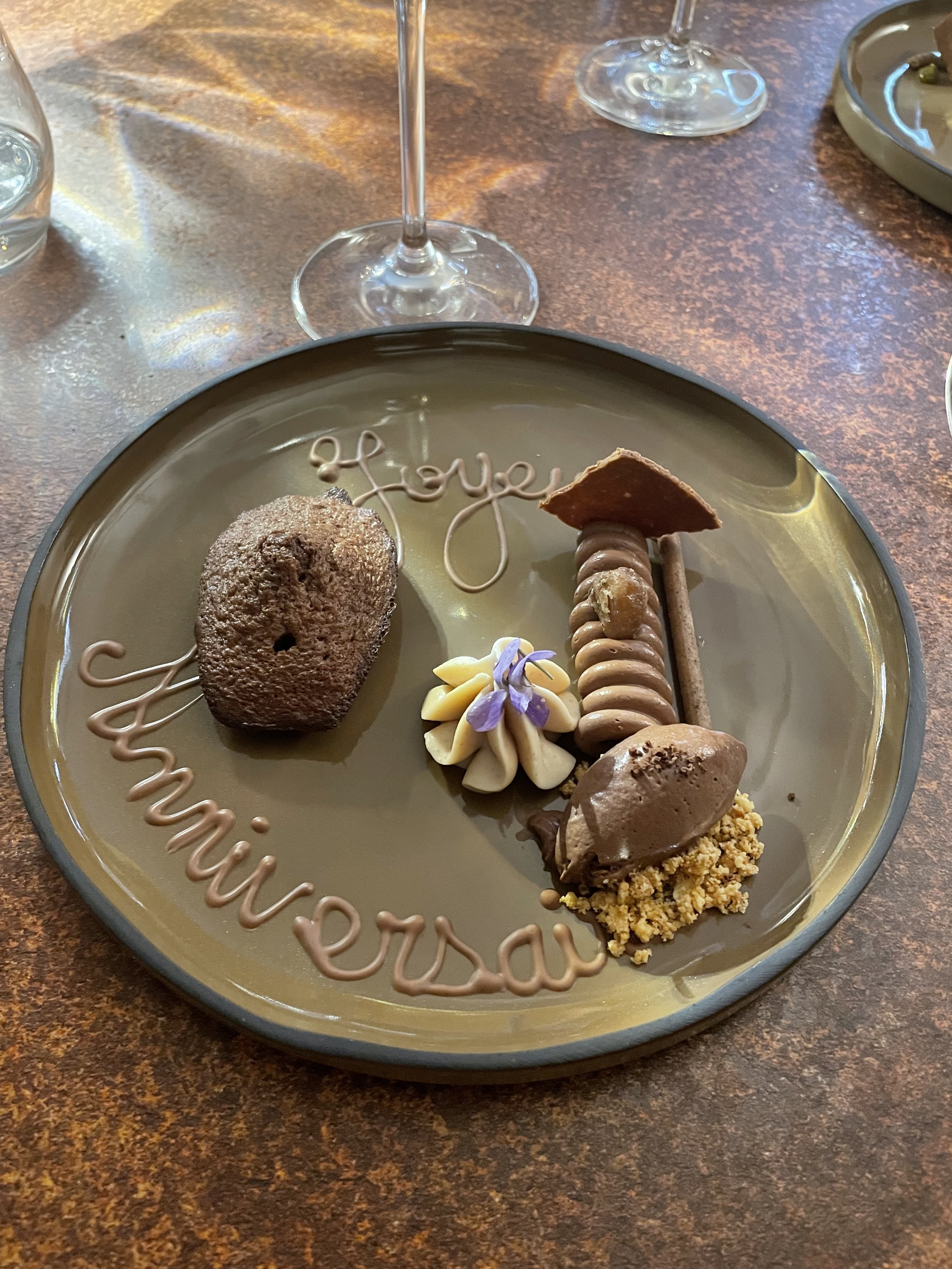 Dîner extra, n'étant pas habitué au grand restaurant, je recommande. Patron sympathique, une pointe d'humour et un très bon chef. On sait laissé conseiller sur les verres de vins et aucun regret. Mention spécial pour le beurre au poivre et agrume. La madeleine au chocolat à se damné
