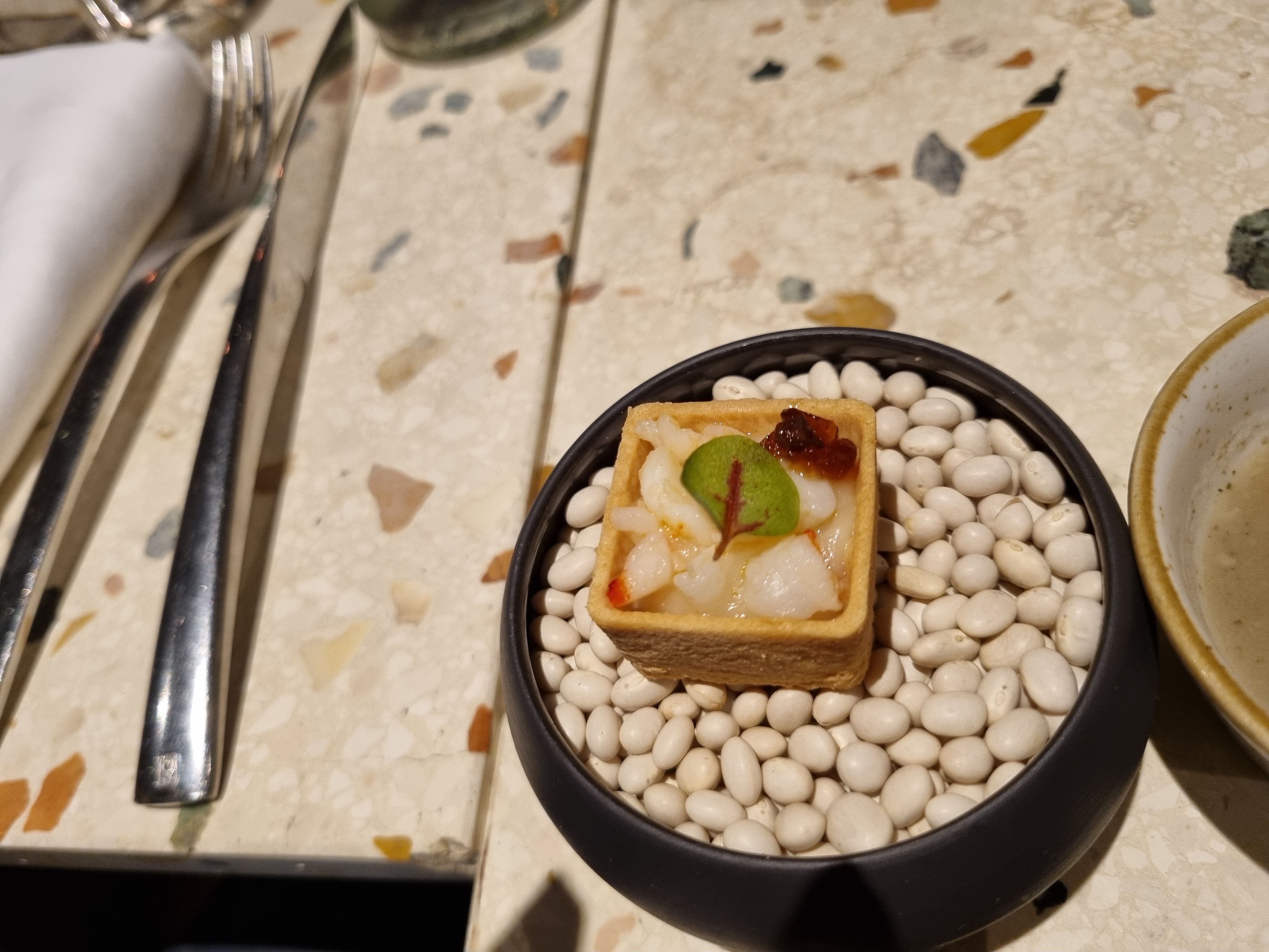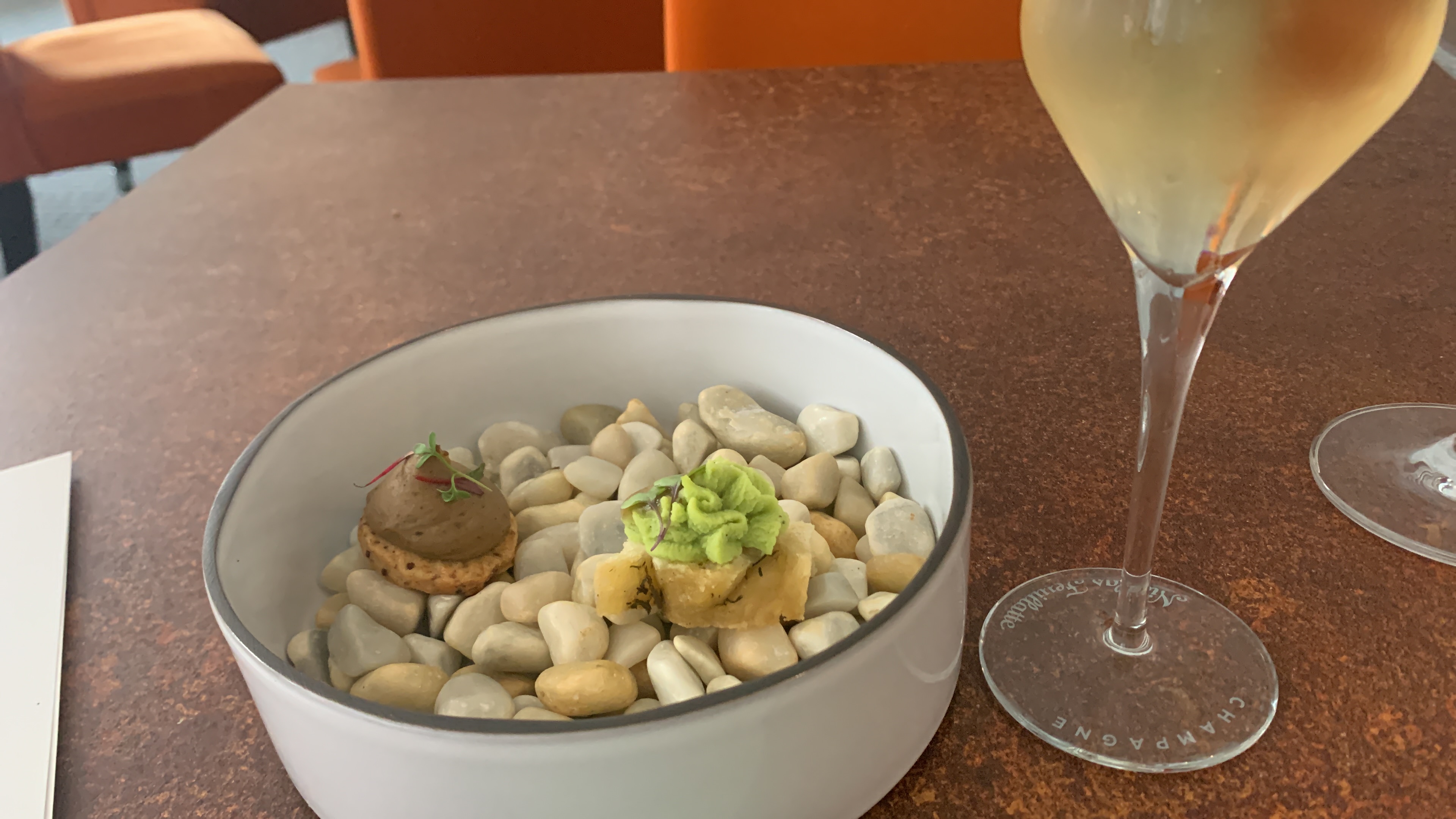 Nous avions pris le menu dégustation 8 plats et la cuisine était vraiment très bonnes. Nous nous sommes bien régalés. En revanche, côté service .. du mieux peut être fait. L’omniprésence du chef en salle nous a beaucoup dérangé tout au long des repas, et un niveau sonore élevé. Les plats se sont beaucoup enchaînés (a tel point à la fin que l’on a même eu le 1er dessert en même temps que le pré dessert) c’était franchement limite pour bien apprécier le repas. Bref, une très bonne table pour bien manger mais le service est à revoir selon moi.